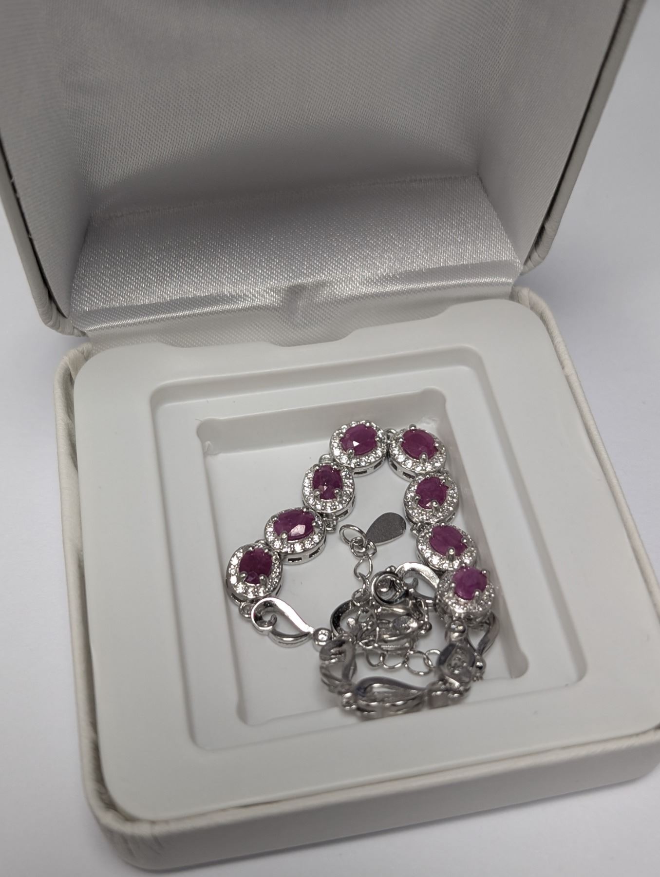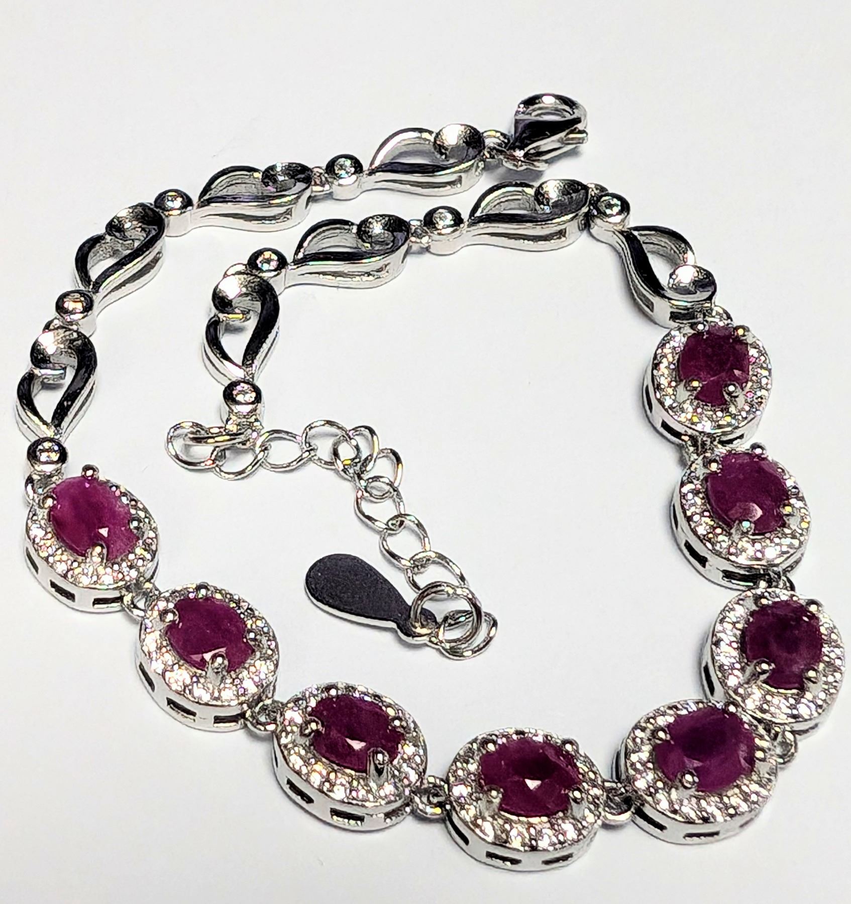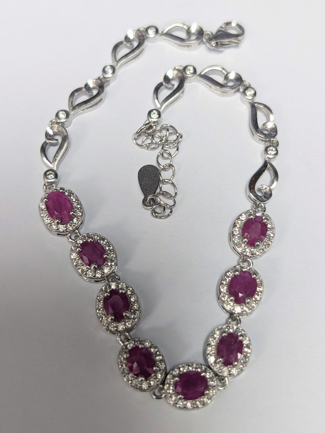 SILVER(8.88g), RUBY (3.6ct), CZ (0.4ct) BRACELET 7.5", appraised/retail value $900