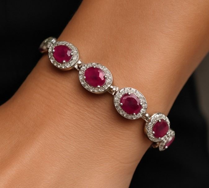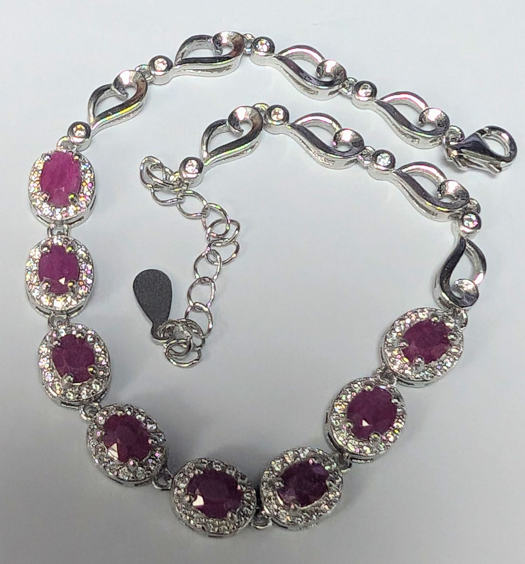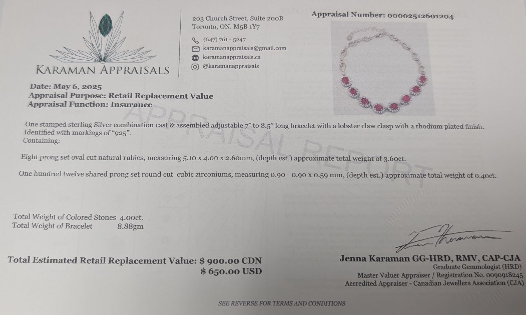 SILVER(8.88g), RUBY (3.6ct), CZ (0.4ct) BRACELET 7.5", appraised/retail value $900