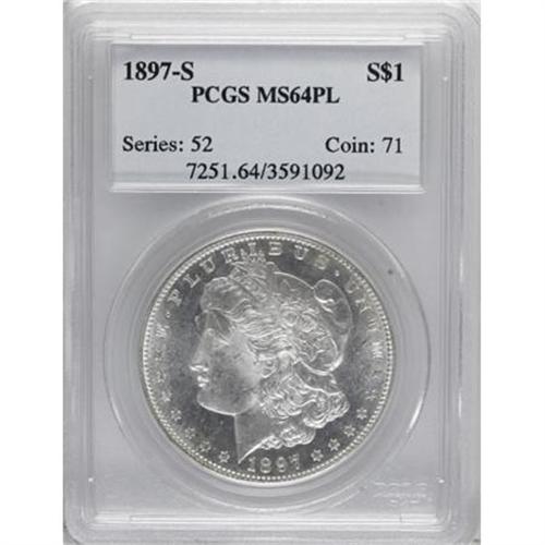 <!-- BEGIN: ICOLLECTOR - EBAY LOT HTML CODE --><style type='text/css'> #icoll_images_thumbnails, #icoll_images_mainimage, #icoll_otherlots { display: none; } div { font-family: arial, verdana, helvetica; } img { border: none; } .icoll_heading_title { background-color: #EFEFFF; color: #000; font-family: arial, verdana, helvetica; font-size: 12pt; font-style: normal; font-weight: bold; } </style><style type='text/css'>@import url(http://www.icollector.com/css/ebay/ebaylot_20070703.css);</style><script language='javascript' type='text/javascript'>function icollfunc_getelement(element_id) { var tmpelement = null; if(document.getElementById) tmpelement = document.getElementById(element_id); if(tmpelement == null) tmpelement = document[element_id]; return tmpelement; }var icollvar_mainpic = null; function icollfunc_initimages() { icollfunc_getelement('mainPicture').style.display = 'none'; icollvar_mainpic = icollfunc_getelement('icoll_images_mainimage'); var body_onload = document.body.attributes['onload']; document.body.setAttribute('onload', (body_onload ? body_onload.nodeValue : '') + 'icollfunc_fixoperaimgbug();'); }function icollfunc_changeimage(imgurl) { if(icollvar_mainpic != null) icollvar_mainpic.src = imgurl; }function icollfunc_fixoperaimgbug() { if(window.opera) { var imgobjs = icollfunc_getelement('icoll_images_thumbnails').getElementsByTagName('img'); for(var i=0; i<imgobjs.length; i++) { var w = imgobjs[i].clientWidth; if(w > 0) imgobjs[i].style.width = w + 'px'; } } }</script><script language='javascript' type='text/javascript'> var useragent = escape(navigator.userAgent); var appname = escape(navigator.appName); var dateobj = new Date(); var datetime = escape(dateobj.getFullYear()+'-'+(dateobj.getMonth()+1)+'-'+dateobj.getDate()+' '+dateobj.getHours()+':'+dateobj.getMinutes()); var referrer = ''; if(document.referrer && document.referrer != null) referrer = escape(document.referrer); new Image().src = 'http://www.icollector.com/stats/ebaylot.ashx?id=7140325&ua='+useragent+'&an='+appname+'&dt='+datetime+'&tz='+dateobj.getTimezoneOffset()+'&re='+referrer;</script><div id='icoll_images'><div id='icoll_images_prev'><a href='http://cgi.liveauctions.ebay.com/ws/eBayISAPI.dll?ViewItem&item=170135781335'><img src='http://www.ha.com/common/proxyImage.php?ebay=445-1562-1-75' alt='' /><img src='http://icollector.com/graphics/ebay_leftarrow.gif' alt='' class='arrow' /></a><div id='icoll_images_prev_info'>Prev Lot</div></div><div id='icoll_images_next'><a href='http://cgi.liveauctions.ebay.com/ws/eBayISAPI.dll?ViewItem&item=170135781357'><img src='http://www.ha.com/common/proxyImage.php?ebay=445-39061-1-75' alt='' /><img src='http://icollector.com/graphics/ebay_rightarrow.gif' alt='' class='arrow' /></a><div id='icoll_images_next_info'>Next Lot</div></div><div id='icoll_images_thumbnails'><a href='http://www.ha.com/common/proxyImage.php?ebay=445-39012-1-75' target='_blank' onmouseover="icollfunc_changeimage('http://www.ha.com/common/proxyImage.php?ebay=445-39012-1-75');"><img src='http://www.ha.com/common/proxyImage.php?ebay=445-39012-1-75' alt='' /></a><a href='http://www.ha.com/common/proxyImage.php?ebay=445-39012-2-75' target='_blank' onmouseover="icollfunc_changeimage('http://www.ha.com/common/proxyImage.php?ebay=445-39012-2-75');"><img src='http://www.ha.com/common/proxyImage.php?ebay=445-39012-2-75' alt='' /></a><div id='icoll_images_thumbnails_info'>Hover thumbnail to view large image below. Click thumbnail to view full image in new window.</div></div><div id='icoll_images_mainimage_container'><img id='icoll_images_mainimage' alt='' src='http://www.ha.com/common/proxyImage.php?ebay=445-39012-1-75'></div></div><script language='javascript' type='text/javascript'>icollfunc_initimages();</script><div id='icoll_description'><B>1897-S $1 MS64 Prooflike PCGS.</B></I> PCGS Population (261/148). NGC Census: (227/119). Numismedia Wsl. Price for NGC/PCGS coin in MS64: $160. (#7251)<BR><I>From The Diamond Head Collection.</B></I><BR><BR><B>Coin Engraver:</B> George T. Morgan<BR><BR><b>Shipping:</b> Coins & Currency (<a target="_blank" href="http://www.heritageauctions.com/common/shipping.php">view shipping information</a>\)</div><div id='icoll_notices'><div class='icoll_heading_left'></div><div class='icoll_heading'><div class='icoll_heading_title'>Notices</div></div><div class='icoll_heading_right'></div><div id='icoll_notices_info'><B>Important notice:</B> Heritage usually auctions material at the rate of 200-250 lots per hour. On some occasions eBay Live bid software or the Internet may not be able to keep up with the pace of the auction. We recommend placing a realistic absentee bid now as insurance to avoid disappointment. Occasionally the auctioneer may eliminate or reject an eBay Live bid, and the auctioneer may also reopen a lot after the close of the eBay live bidding (usually because we missed an audience bid), and may reject your bid even if it shows you as the winning bidder. By bidding via eBay Live, you agree that Heritage may award the lot to another bidder at its sole discretion under the circumstances described above or any other reasonable circumstances. Since eBay bids are not shown to us until we open the lot on the floor, we treat those bids just like floor bids. In most cases the floor responds before the eBay bid is presented to us, due to Internet lag time, so for consistency we have made it a policy that floor bids are always considered first over tie eBay live bids. Also please note that all Heritage lots purchased through eBay Live carry a 20% Buyer's Premium with a $9 minimum Buyer's Premium. Please make sure you read the Terms and Conditions before you bid. This lot is being auctioned in conjunction with a live floor auction by Heritage Auctions. All final auction and invoice information will be supplied by Heritage Auctions, and all other information should be considered preliminary. <BR><BR><B>Winning Notification and Billing:</B> After the FINAL session in this 