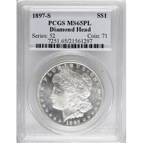 <!-- BEGIN: ICOLLECTOR - EBAY LOT HTML CODE --><style type='text/css'> #icoll_images_thumbnails, #icoll_images_mainimage, #icoll_otherlots { display: none; } div { font-family: arial, verdana, helvetica; } img { border: none; } .icoll_heading_title { background-color: #EFEFFF; color: #000; font-family: arial, verdana, helvetica; font-size: 12pt; font-style: normal; font-weight: bold; } </style><style type='text/css'>@import url(http://www.icollector.com/css/ebay/ebaylot_20070703.css);</style><script language='javascript' type='text/javascript'>function icollfunc_getelement(element_id) { var tmpelement = null; if(document.getElementById) tmpelement = document.getElementById(element_id); if(tmpelement == null) tmpelement = document[element_id]; return tmpelement; }var icollvar_mainpic = null; function icollfunc_initimages() { icollfunc_getelement('mainPicture').style.display = 'none'; icollvar_mainpic = icollfunc_getelement('icoll_images_mainimage'); var body_onload = document.body.attributes['onload']; document.body.setAttribute('onload', (body_onload ? body_onload.nodeValue : '') + 'icollfunc_fixoperaimgbug();'); }function icollfunc_changeimage(imgurl) { if(icollvar_mainpic != null) icollvar_mainpic.src = imgurl; }function icollfunc_fixoperaimgbug() { if(window.opera) { var imgobjs = icollfunc_getelement('icoll_images_thumbnails').getElementsByTagName('img'); for(var i=0; i<imgobjs.length; i++) { var w = imgobjs[i].clientWidth; if(w > 0) imgobjs[i].style.width = w + 'px'; } } }</script><script language='javascript' type='text/javascript'> var useragent = escape(navigator.userAgent); var appname = escape(navigator.appName); var dateobj = new Date(); var datetime = escape(dateobj.getFullYear()+'-'+(dateobj.getMonth()+1)+'-'+dateobj.getDate()+' '+dateobj.getHours()+':'+dateobj.getMinutes()); var referrer = ''; if(document.referrer && document.referrer != null) referrer = escape(document.referrer); new Image().src = 'http://www.icollector.com/stats/ebaylot.ashx?id=7140326&ua='+useragent+'&an='+appname+'&dt='+datetime+'&tz='+dateobj.getTimezoneOffset()+'&re='+referrer;</script><div id='icoll_images'><div id='icoll_images_prev'><a href='http://cgi.liveauctions.ebay.com/ws/eBayISAPI.dll?ViewItem&item=170135781349'><img src='http://www.ha.com/common/proxyImage.php?ebay=445-39012-1-75' alt='' /><img src='http://icollector.com/graphics/ebay_leftarrow.gif' alt='' class='arrow' /></a><div id='icoll_images_prev_info'>Prev Lot</div></div><div id='icoll_images_next'><a href='http://cgi.liveauctions.ebay.com/ws/eBayISAPI.dll?ViewItem&item=170135781370'><img src='http://www.ha.com/common/proxyImage.php?ebay=445-22011-1-75' alt='' /><img src='http://icollector.com/graphics/ebay_rightarrow.gif' alt='' class='arrow' /></a><div id='icoll_images_next_info'>Next Lot</div></div><div id='icoll_images_thumbnails'><a href='http://www.ha.com/common/proxyImage.php?ebay=445-39061-1-75' target='_blank' onmouseover="icollfunc_changeimage('http://www.ha.com/common/proxyImage.php?ebay=445-39061-1-75');"><img src='http://www.ha.com/common/proxyImage.php?ebay=445-39061-1-75' alt='' /></a><a href='http://www.ha.com/common/proxyImage.php?ebay=445-39061-2-75' target='_blank' onmouseover="icollfunc_changeimage('http://www.ha.com/common/proxyImage.php?ebay=445-39061-2-75');"><img src='http://www.ha.com/common/proxyImage.php?ebay=445-39061-2-75' alt='' /></a><div id='icoll_images_thumbnails_info'>Hover thumbnail to view large image below. Click thumbnail to view full image in new window.</div></div><div id='icoll_images_mainimage_container'><img id='icoll_images_mainimage' alt='' src='http://www.ha.com/common/proxyImage.php?ebay=445-39061-1-75'></div></div><script language='javascript' type='text/javascript'>icollfunc_initimages();</script><div id='icoll_description'><B>1897-S $1 MS65 Prooflike PCGS.</B></I> Ex: Diamond Head. PCGS Population (124/24). NGC Census: (101/18). Numismedia Wsl. Price for NGC/PCGS coin in MS65: $620. (#7251)<BR><I>From The Diamond Head Registry Set of Prooflike Dollars.</B></I><BR><BR><B>Coin Engraver:</B> George T. Morgan<BR><BR><b>Shipping:</b> Coins & Currency (<a target="_blank" href="http://www.heritageauctions.com/common/shipping.php">view shipping information</a>\)</div><div id='icoll_notices'><div class='icoll_heading_left'></div><div class='icoll_heading'><div class='icoll_heading_title'>Notices</div></div><div class='icoll_heading_right'></div><div id='icoll_notices_info'><B>Important notice:</B> Heritage usually auctions material at the rate of 200-250 lots per hour. On some occasions eBay Live bid software or the Internet may not be able to keep up with the pace of the auction. We recommend placing a realistic absentee bid now as insurance to avoid disappointment. Occasionally the auctioneer may eliminate or reject an eBay Live bid, and the auctioneer may also reopen a lot after the close of the eBay live bidding (usually because we missed an audience bid), and may reject your bid even if it shows you as the winning bidder. By bidding via eBay Live, you agree that Heritage may award the lot to another bidder at its sole discretion under the circumstances described above or any other reasonable circumstances. Since eBay bids are not shown to us until we open the lot on the floor, we treat those bids just like floor bids. In most cases the floor responds before the eBay bid is presented to us, due to Internet lag time, so for consistency we have made it a policy that floor bids are always considered first over tie eBay live bids. Also please note that all Heritage lots purchased through eBay Live carry a 20% Buyer's Premium with a $9 minimum Buyer's Premium. Please make sure you read the Terms and Conditions before you bid. This lot is being auctioned in conjunction with a live floor auction by Heritage Auctions. All final auction and invoice information will be supplied by Heritage Auctions, and all other information should be considered preliminary. <BR><BR><B>Winning Notification and Billi