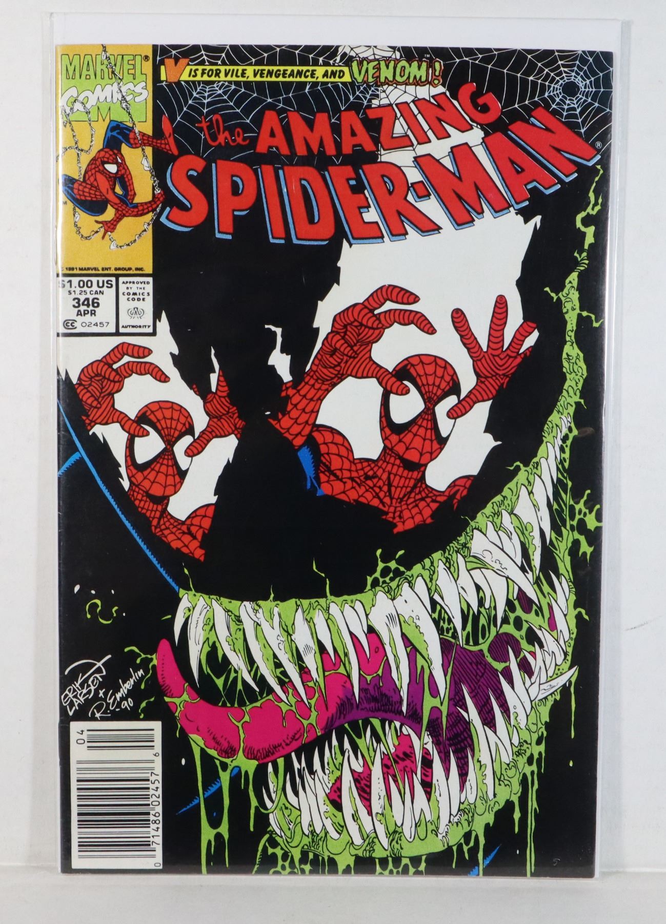 VENOM COVER APRIL 1991 AMAZING SPIDER-MAN SPIDERMAN SPIDER MAN MARVEL COMICS COMIC BOOK