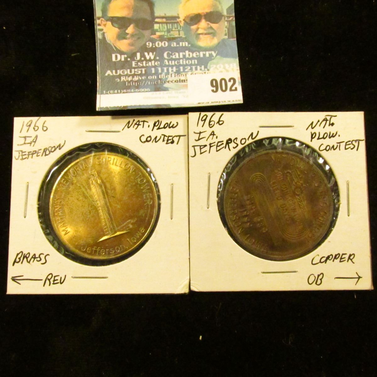 902 _ Pair of 1966 National Plowing Contest, Jefferson, Iowa Medallions. Minted in brass & copper.