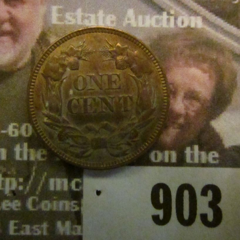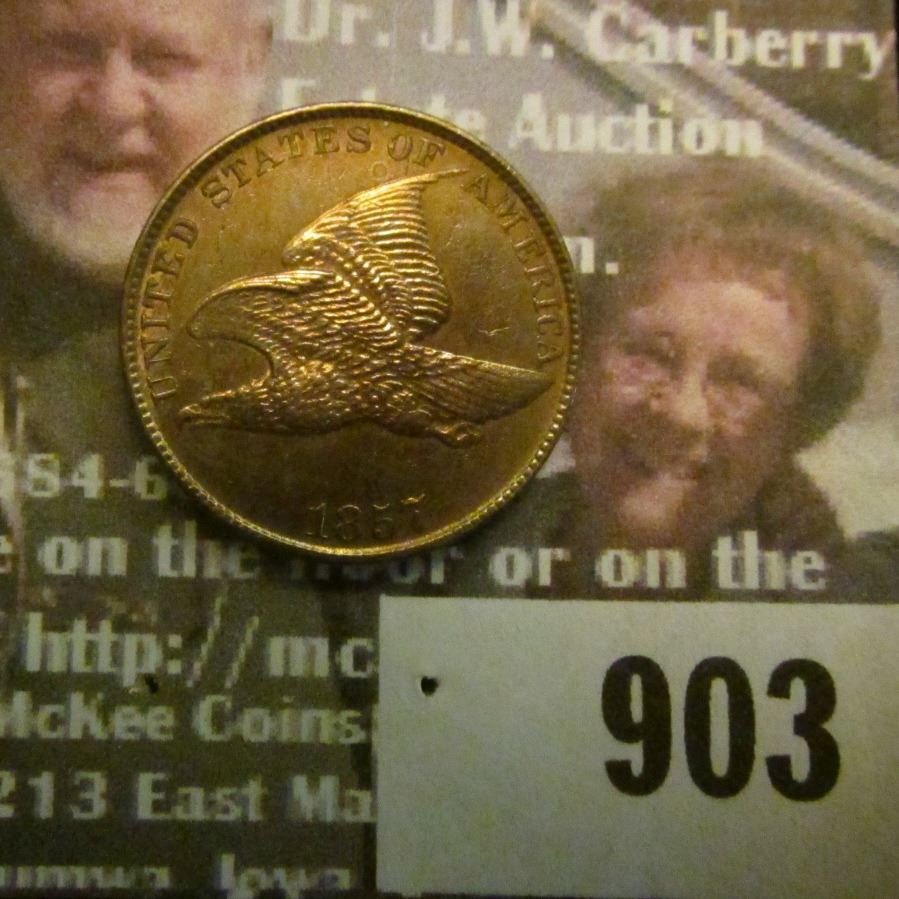 903 _ 1857 U.S. Flying Eagle Cent, AU with obverse scratches.