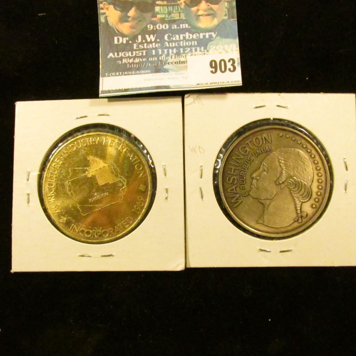 903 _ "Sesquicentennial/18391989/Washington, Iowa" Medal, silver-colored, 39mm; & 1970 Johnston, Iow