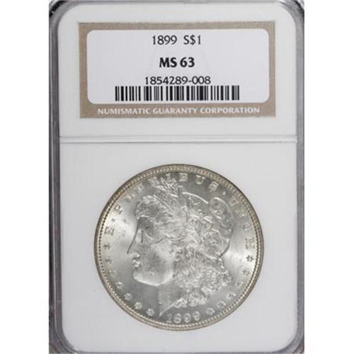 <!-- BEGIN: ICOLLECTOR - EBAY LOT HTML CODE --><style type='text/css'> #icoll_images_thumbnails, #icoll_images_mainimage, #icoll_otherlots { display: none; } div { font-family: arial, verdana, helvetica; } img { border: none; } .icoll_heading_title { background-color: #EFEFFF; color: #000; font-family: arial, verdana, helvetica; font-size: 12pt; font-style: normal; font-weight: bold; } </style><style type='text/css'>@import url(http://www.icollector.com/css/ebay/ebaylot_20070703.css);</style><script language='javascript' type='text/javascript'>function icollfunc_getelement(element_id) { var tmpelement = null; if(document.getElementById) tmpelement = document.getElementById(element_id); if(tmpelement == null) tmpelement = document[element_id]; return tmpelement; }var icollvar_mainpic = null; function icollfunc_initimages() { icollfunc_getelement('mainPicture').style.display = 'none'; icollvar_mainpic = icollfunc_getelement('icoll_images_mainimage'); var body_onload = document.body.attributes['onload']; document.body.setAttribute('onload', (body_onload ? body_onload.nodeValue : '') + 'icollfunc_fixoperaimgbug();'); }function icollfunc_changeimage(imgurl) { if(icollvar_mainpic != null) icollvar_mainpic.src = imgurl; }function icollfunc_fixoperaimgbug() { if(window.opera) { var imgobjs = icollfunc_getelement('icoll_images_thumbnails').getElementsByTagName('img'); for(var i=0; i<imgobjs.length; i++) { var w = imgobjs[i].clientWidth; if(w > 0) imgobjs[i].style.width = w + 'px'; } } }</script><script language='javascript' type='text/javascript'> var useragent = escape(navigator.userAgent); var appname = escape(navigator.appName); var dateobj = new Date(); var datetime = escape(dateobj.getFullYear()+'-'+(dateobj.getMonth()+1)+'-'+dateobj.getDate()+' '+dateobj.getHours()+':'+dateobj.getMinutes()); var referrer = ''; if(document.referrer && document.referrer != null) referrer = escape(document.referrer); new Image().src = 'http://www.icollector.com/stats/ebaylot.ashx?id=7140350&ua='+useragent+'&an='+appname+'&dt='+datetime+'&tz='+dateobj.getTimezoneOffset()+'&re='+referrer;</script><div id='icoll_images'><div id='icoll_images_prev'><a href='http://cgi.liveauctions.ebay.com/ws/eBayISAPI.dll?ViewItem&item=170135058390'><img src='http://www.ha.com/common/proxyImage.php?ebay=445-1314-1-75' alt='' /><img src='http://icollector.com/graphics/ebay_leftarrow.gif' alt='' class='arrow' /></a><div id='icoll_images_prev_info'>Prev Lot</div></div><div id='icoll_images_next'><a href='http://cgi.liveauctions.ebay.com/ws/eBayISAPI.dll?ViewItem&item=170135058399'><img src='http://www.ha.com/common/proxyImage.php?ebay=445-149009-1-75' alt='' /><img src='http://icollector.com/graphics/ebay_rightarrow.gif' alt='' class='arrow' /></a><div id='icoll_images_next_info'>Next Lot</div></div><div id='icoll_images_thumbnails'><a href='http://www.ha.com/common/proxyImage.php?ebay=445-40005-1-75' target='_blank' onmouseover="icollfunc_changeimage('http://www.ha.com/common/proxyImage.php?ebay=445-40005-1-75');"><img src='http://www.ha.com/common/proxyImage.php?ebay=445-40005-1-75' alt='' /></a><a href='http://www.ha.com/common/proxyImage.php?ebay=445-40005-2-75' target='_blank' onmouseover="icollfunc_changeimage('http://www.ha.com/common/proxyImage.php?ebay=445-40005-2-75');"><img src='http://www.ha.com/common/proxyImage.php?ebay=445-40005-2-75' alt='' /></a><div id='icoll_images_thumbnails_info'>Hover thumbnail to view large image below. Click thumbnail to view full image in new window.</div></div><div id='icoll_images_mainimage_container'><img id='icoll_images_mainimage' alt='' src='http://www.ha.com/common/proxyImage.php?ebay=445-40005-1-75'></div></div><script language='javascript' type='text/javascript'>icollfunc_initimages();</script><div id='icoll_description'><B>1899 $1 MS63 NGC.</B></I> NGC Census: (1670/2786). PCGS Population (2658/3849). Mintage: 330,846. Numismedia Wsl. Price for NGC/PCGS coin in MS63: $321. (#7258)<BR><BR><B>Coin Engraver:</B> George T. Morgan<BR><BR><b>Shipping:</b> Coins & Currency (<a target="_blank" href="http://www.heritageauctions.com/common/shipping.php">view shipping information</a>\)</div><div id='icoll_notices'><div class='icoll_heading_left'></div><div class='icoll_heading'><div class='icoll_heading_title'>Notices</div></div><div class='icoll_heading_right'></div><div id='icoll_notices_info'><B>Important notice:</B> Heritage usually auctions material at the rate of 200-250 lots per hour. On some occasions eBay Live bid software or the Internet may not be able to keep up with the pace of the auction. We recommend placing a realistic absentee bid now as insurance to avoid disappointment. Occasionally the auctioneer may eliminate or reject an eBay Live bid, and the auctioneer may also reopen a lot after the close of the eBay live bidding (usually because we missed an audience bid), and may reject your bid even if it shows you as the winning bidder. By bidding via eBay Live, you agree that Heritage may award the lot to another bidder at its sole discretion under the circumstances described above or any other reasonable circumstances. Since eBay bids are not shown to us until we open the lot on the floor, we treat those bids just like floor bids. In most cases the floor responds before the eBay bid is presented to us, due to Internet lag time, so for consistency we have made it a policy that floor bids are always considered first over tie eBay live bids. Also please note that all Heritage lots purchased through eBay Live carry a 20% Buyer's Premium with a $9 minimum Buyer's Premium. Please make sure you read the Terms and Conditions before you bid. This lot is being auctioned in conjunction with a live floor auction by Heritage Auctions. All final auction and invoice information will be supplied by Heritage Auctions, and all other information should be considered preliminary. <BR><BR><B>Winning Notification and Billing:</B> After the FINAL session in this auction is complete, Heritage will sen