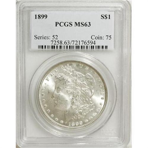 <!-- BEGIN: ICOLLECTOR - EBAY LOT HTML CODE --><style type='text/css'> #icoll_images_thumbnails, #icoll_images_mainimage, #icoll_otherlots { display: none; } div { font-family: arial, verdana, helvetica; } img { border: none; } .icoll_heading_title { background-color: #EFEFFF; color: #000; font-family: arial, verdana, helvetica; font-size: 12pt; font-style: normal; font-weight: bold; } </style><style type='text/css'>@import url(http://www.icollector.com/css/ebay/ebaylot_20070703.css);</style><script language='javascript' type='text/javascript'>function icollfunc_getelement(element_id) { var tmpelement = null; if(document.getElementById) tmpelement = document.getElementById(element_id); if(tmpelement == null) tmpelement = document[element_id]; return tmpelement; }var icollvar_mainpic = null; function icollfunc_initimages() { icollfunc_getelement('mainPicture').style.display = 'none'; icollvar_mainpic = icollfunc_getelement('icoll_images_mainimage'); var body_onload = document.body.attributes['onload']; document.body.setAttribute('onload', (body_onload ? body_onload.nodeValue : '') + 'icollfunc_fixoperaimgbug();'); }function icollfunc_changeimage(imgurl) { if(icollvar_mainpic != null) icollvar_mainpic.src = imgurl; }function icollfunc_fixoperaimgbug() { if(window.opera) { var imgobjs = icollfunc_getelement('icoll_images_thumbnails').getElementsByTagName('img'); for(var i=0; i<imgobjs.length; i++) { var w = imgobjs[i].clientWidth; if(w > 0) imgobjs[i].style.width = w + 'px'; } } }</script><script language='javascript' type='text/javascript'> var useragent = escape(navigator.userAgent); var appname = escape(navigator.appName); var dateobj = new Date(); var datetime = escape(dateobj.getFullYear()+'-'+(dateobj.getMonth()+1)+'-'+dateobj.getDate()+' '+dateobj.getHours()+':'+dateobj.getMinutes()); var referrer = ''; if(document.referrer && document.referrer != null) referrer = escape(document.referrer); new Image().src = 'http://www.icollector.com/stats/ebaylot.ashx?id=7140353&ua='+useragent+'&an='+appname+'&dt='+datetime+'&tz='+dateobj.getTimezoneOffset()+'&re='+referrer;</script><div id='icoll_images'><div id='icoll_images_prev'><a href='http://cgi.liveauctions.ebay.com/ws/eBayISAPI.dll?ViewItem&item=170135058412'><img src='http://www.ha.com/common/proxyImage.php?ebay=445-154049-1-75' alt='' /><img src='http://icollector.com/graphics/ebay_leftarrow.gif' alt='' class='arrow' /></a><div id='icoll_images_prev_info'>Prev Lot</div></div><div id='icoll_images_next'><a href='http://cgi.liveauctions.ebay.com/ws/eBayISAPI.dll?ViewItem&item=170135058426'><img src='http://www.ha.com/common/proxyImage.php?ebay=445-17035-1-75' alt='' /><img src='http://icollector.com/graphics/ebay_rightarrow.gif' alt='' class='arrow' /></a><div id='icoll_images_next_info'>Next Lot</div></div><div id='icoll_images_thumbnails'><a href='http://www.ha.com/common/proxyImage.php?ebay=445-183027-1-75' target='_blank' onmouseover="icollfunc_changeimage('http://www.ha.com/common/proxyImage.php?ebay=445-183027-1-75');"><img src='http://www.ha.com/common/proxyImage.php?ebay=445-183027-1-75' alt='' /></a><a href='http://www.ha.com/common/proxyImage.php?ebay=445-183027-2-75' target='_blank' onmouseover="icollfunc_changeimage('http://www.ha.com/common/proxyImage.php?ebay=445-183027-2-75');"><img src='http://www.ha.com/common/proxyImage.php?ebay=445-183027-2-75' alt='' /></a><div id='icoll_images_thumbnails_info'>Hover thumbnail to view large image below. Click thumbnail to view full image in new window.</div></div><div id='icoll_images_mainimage_container'><img id='icoll_images_mainimage' alt='' src='http://www.ha.com/common/proxyImage.php?ebay=445-183027-1-75'></div></div><script language='javascript' type='text/javascript'>icollfunc_initimages();</script><div id='icoll_description'><B>1899 $1 MS63 PCGS.</B></I> PCGS Population (2697/3904). NGC Census: (1678/2788). Mintage: 330,846. Numismedia Wsl. Price for NGC/PCGS coin in MS63: $321. (#7258)<BR><BR><B>Coin Engraver:</B> George T. Morgan<BR><BR><b>Shipping:</b> Coins & Currency (<a target="_blank" href="http://www.heritageauctions.com/common/shipping.php">view shipping information</a>\)</div><div id='icoll_notices'><div class='icoll_heading_left'></div><div class='icoll_heading'><div class='icoll_heading_title'>Notices</div></div><div class='icoll_heading_right'></div><div id='icoll_notices_info'><B>Important notice:</B> Heritage usually auctions material at the rate of 200-250 lots per hour. On some occasions eBay Live bid software or the Internet may not be able to keep up with the pace of the auction. We recommend placing a realistic absentee bid now as insurance to avoid disappointment. Occasionally the auctioneer may eliminate or reject an eBay Live bid, and the auctioneer may also reopen a lot after the close of the eBay live bidding (usually because we missed an audience bid), and may reject your bid even if it shows you as the winning bidder. By bidding via eBay Live, you agree that Heritage may award the lot to another bidder at its sole discretion under the circumstances described above or any other reasonable circumstances. Since eBay bids are not shown to us until we open the lot on the floor, we treat those bids just like floor bids. In most cases the floor responds before the eBay bid is presented to us, due to Internet lag time, so for consistency we have made it a policy that floor bids are always considered first over tie eBay live bids. Also please note that all Heritage lots purchased through eBay Live carry a 20% Buyer's Premium with a $9 minimum Buyer's Premium. Please make sure you read the Terms and Conditions before you bid. This lot is being auctioned in conjunction with a live floor auction by Heritage Auctions. All final auction and invoice information will be supplied by Heritage Auctions, and all other information should be considered preliminary. <BR><BR><B>Winning Notification and Billing:</B> After the FINAL session in this auction is complete, Heritage