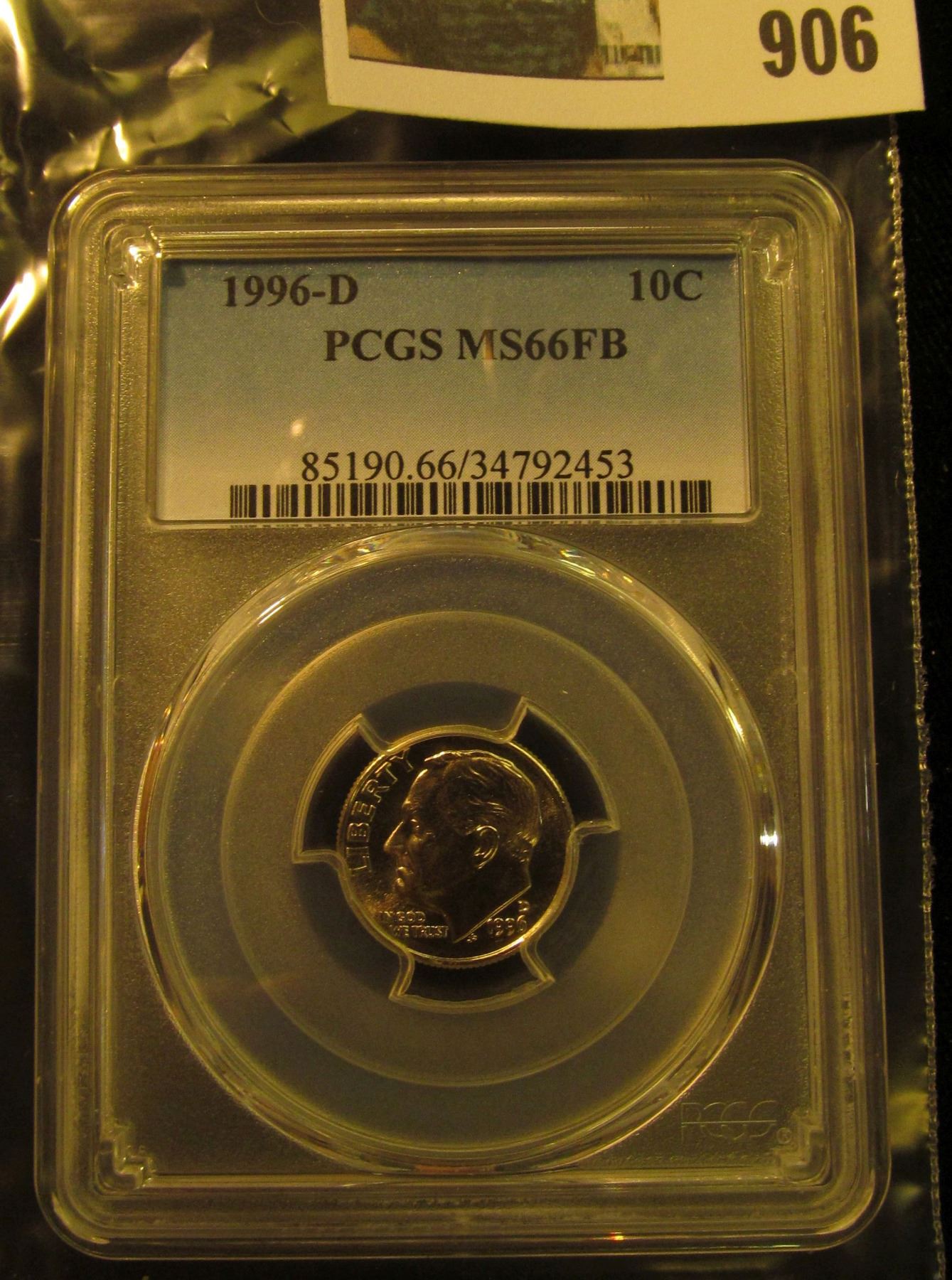 906 _ 1996 D Roosevelt Dime, PCGS slabbed MS66FB.