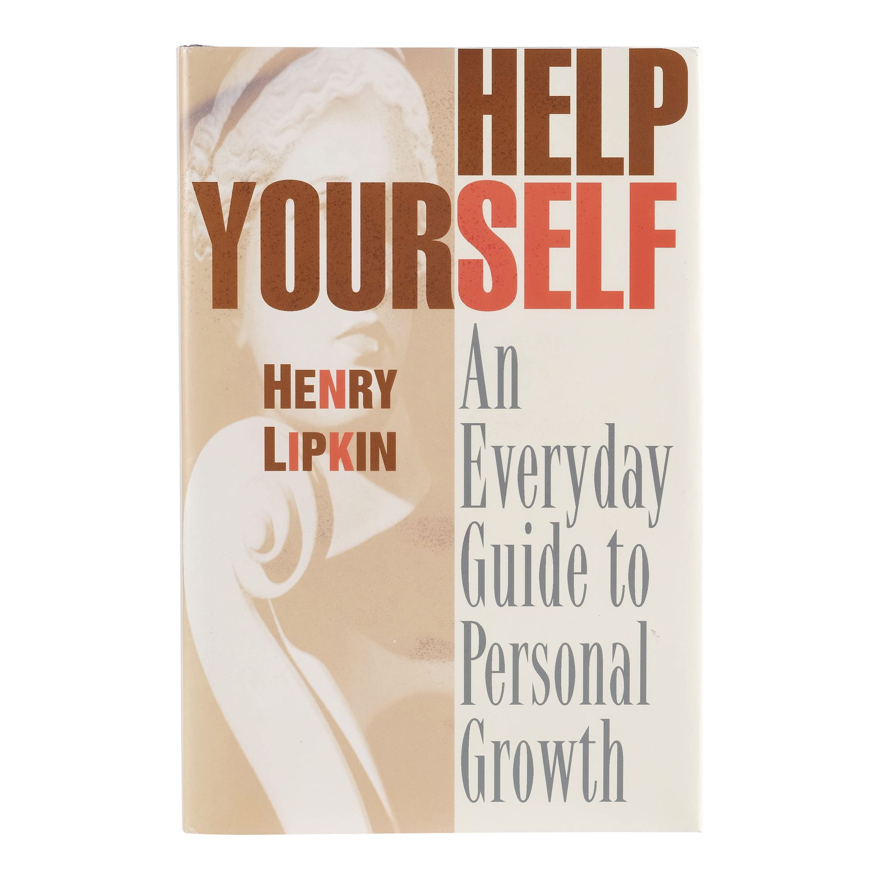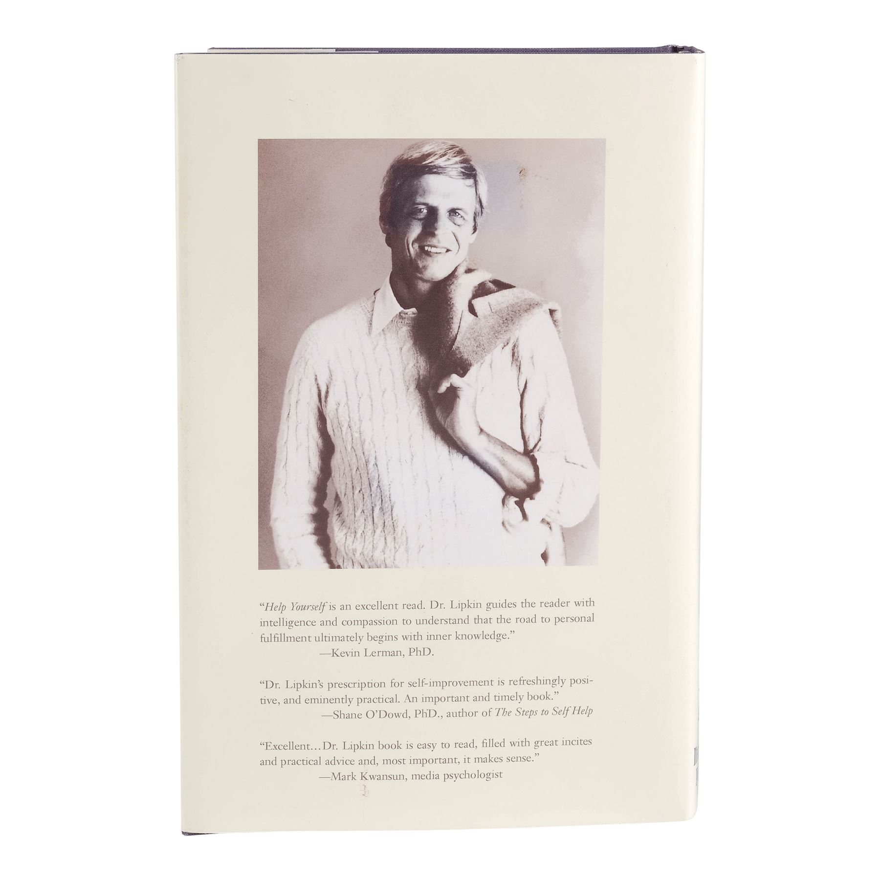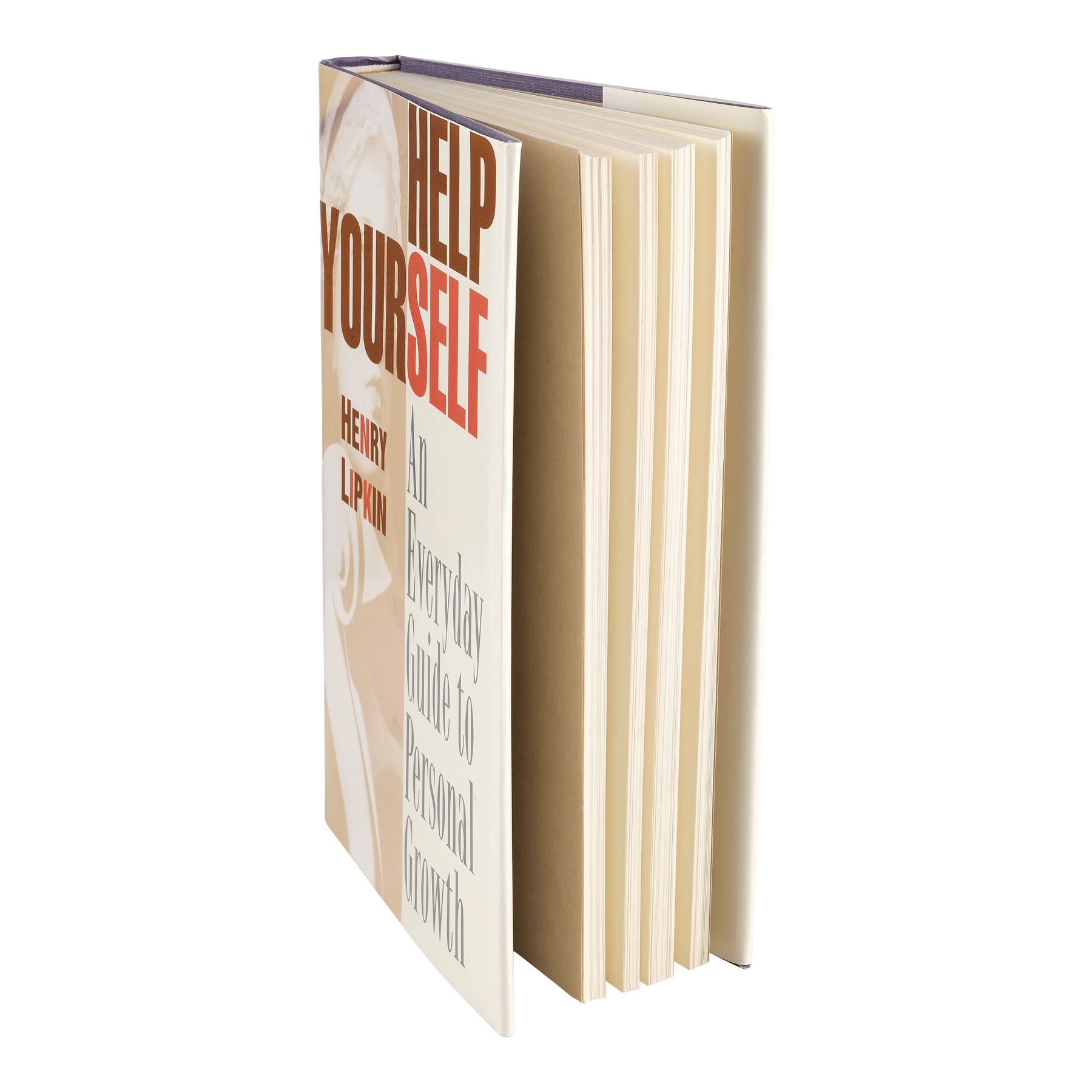 This lot consists of a folded beige and red printed, production-made book cover for Lipkin's "Help Yourself: An Everyday Guide to Personal Growth" featuring a black-and-white profile image of Lipkin printed on the back; and a hardcover book irrelevant to the film. This lot exhibits minor grime on the back. Dimensions: 6.5" x 9.5" x 1" (16.5 cm x 24.25 cm x 2.75 cm)