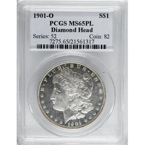 <!-- BEGIN: ICOLLECTOR - EBAY LOT HTML CODE --><style type='text/css'> #icoll_images_thumbnails, #icoll_images_mainimage, #icoll_otherlots { display: none; } div { font-family: arial, verdana, helvetica; } img { border: none; } .icoll_heading_title { background-color: #EFEFFF; color: #000; font-family: arial, verdana, helvetica; font-size: 12pt; font-style: normal; font-weight: bold; } </style><style type='text/css'>@import url(http://www.icollector.com/css/ebay/ebaylot_20070703.css);</style><script language='javascript' type='text/javascript'>function icollfunc_getelement(element_id) { var tmpelement = null; if(document.getElementById) tmpelement = document.getElementById(element_id); if(tmpelement == null) tmpelement = document[element_id]; return tmpelement; }var icollvar_mainpic = null; function icollfunc_initimages() { icollfunc_getelement('mainPicture').style.display = 'none'; icollvar_mainpic = icollfunc_getelement('icoll_images_mainimage'); var body_onload = document.body.attributes['onload']; document.body.setAttribute('onload', (body_onload ? body_onload.nodeValue : '') + 'icollfunc_fixoperaimgbug();'); }function icollfunc_changeimage(imgurl) { if(icollvar_mainpic != null) icollvar_mainpic.src = imgurl; }function icollfunc_fixoperaimgbug() { if(window.opera) { var imgobjs = icollfunc_getelement('icoll_images_thumbnails').getElementsByTagName('img'); for(var i=0; i<imgobjs.length; i++) { var w = imgobjs[i].clientWidth; if(w > 0) imgobjs[i].style.width = w + 'px'; } } }</script><script language='javascript' type='text/javascript'> var useragent = escape(navigator.userAgent); var appname = escape(navigator.appName); var dateobj = new Date(); var datetime = escape(dateobj.getFullYear()+'-'+(dateobj.getMonth()+1)+'-'+dateobj.getDate()+' '+dateobj.getHours()+':'+dateobj.getMinutes()); var referrer = ''; if(document.referrer && document.referrer != null) referrer = escape(document.referrer); new Image().src = 'http://www.icollector.com/stats/ebaylot.ashx?id=7140392&ua='+useragent+'&an='+appname+'&dt='+datetime+'&tz='+dateobj.getTimezoneOffset()+'&re='+referrer;</script><div id='icoll_images'><div id='icoll_images_prev'><a href='http://cgi.liveauctions.ebay.com/ws/eBayISAPI.dll?ViewItem&item=170135058661'><img src='http://www.ha.com/common/proxyImage.php?ebay=445-1346-1-75' alt='' /><img src='http://icollector.com/graphics/ebay_leftarrow.gif' alt='' class='arrow' /></a><div id='icoll_images_prev_info'>Prev Lot</div></div><div id='icoll_images_next'><a href='http://cgi.liveauctions.ebay.com/ws/eBayISAPI.dll?ViewItem&item=170135058687'><img src='http://www.ha.com/common/proxyImage.php?ebay=445-154061-1-75' alt='' /><img src='http://icollector.com/graphics/ebay_rightarrow.gif' alt='' class='arrow' /></a><div id='icoll_images_next_info'>Next Lot</div></div><div id='icoll_images_thumbnails'><a href='http://www.ha.com/common/proxyImage.php?ebay=445-39064-1-75' target='_blank' onmouseover="icollfunc_changeimage('http://www.ha.com/common/proxyImage.php?ebay=445-39064-1-75');"><img src='http://www.ha.com/common/proxyImage.php?ebay=445-39064-1-75' alt='' /></a><a href='http://www.ha.com/common/proxyImage.php?ebay=445-39064-2-75' target='_blank' onmouseover="icollfunc_changeimage('http://www.ha.com/common/proxyImage.php?ebay=445-39064-2-75');"><img src='http://www.ha.com/common/proxyImage.php?ebay=445-39064-2-75' alt='' /></a><div id='icoll_images_thumbnails_info'>Hover thumbnail to view large image below. Click thumbnail to view full image in new window.</div></div><div id='icoll_images_mainimage_container'><img id='icoll_images_mainimage' alt='' src='http://www.ha.com/common/proxyImage.php?ebay=445-39064-1-75'></div></div><script language='javascript' type='text/javascript'>icollfunc_initimages();</script><div id='icoll_description'><B>1901-O $1 MS65 Prooflike PCGS.</B></I> Ex: Diamond Head. PCGS Population (133/10). NGC Census: (150/14). Numismedia Wsl. Price for NGC/PCGS coin in MS65: $252. (#7275)<BR><I>From The Diamond Head Registry Set of Prooflike Dollars.</B></I><BR><BR><B>Coin Engraver:</B> George T. Morgan<BR><BR><b>Shipping:</b> Coins & Currency (<a target="_blank" href="http://www.heritageauctions.com/common/shipping.php">view shipping information</a>\)</div><div id='icoll_notices'><div class='icoll_heading_left'></div><div class='icoll_heading'><div class='icoll_heading_title'>Notices</div></div><div class='icoll_heading_right'></div><div id='icoll_notices_info'><B>Important notice:</B> Heritage usually auctions material at the rate of 200-250 lots per hour. On some occasions eBay Live bid software or the Internet may not be able to keep up with the pace of the auction. We recommend placing a realistic absentee bid now as insurance to avoid disappointment. Occasionally the auctioneer may eliminate or reject an eBay Live bid, and the auctioneer may also reopen a lot after the close of the eBay live bidding (usually because we missed an audience bid), and may reject your bid even if it shows you as the winning bidder. By bidding via eBay Live, you agree that Heritage may award the lot to another bidder at its sole discretion under the circumstances described above or any other reasonable circumstances. Since eBay bids are not shown to us until we open the lot on the floor, we treat those bids just like floor bids. In most cases the floor responds before the eBay bid is presented to us, due to Internet lag time, so for consistency we have made it a policy that floor bids are always considered first over tie eBay live bids. Also please note that all Heritage lots purchased through eBay Live carry a 20% Buyer's Premium with a $9 minimum Buyer's Premium. Please make sure you read the Terms and Conditions before you bid. This lot is being auctioned in conjunction with a live floor auction by Heritage Auctions. All final auction and invoice information will be supplied by Heritage Auctions, and all other information should be considered preliminary. <BR><BR><B>Winning Notification and Billi