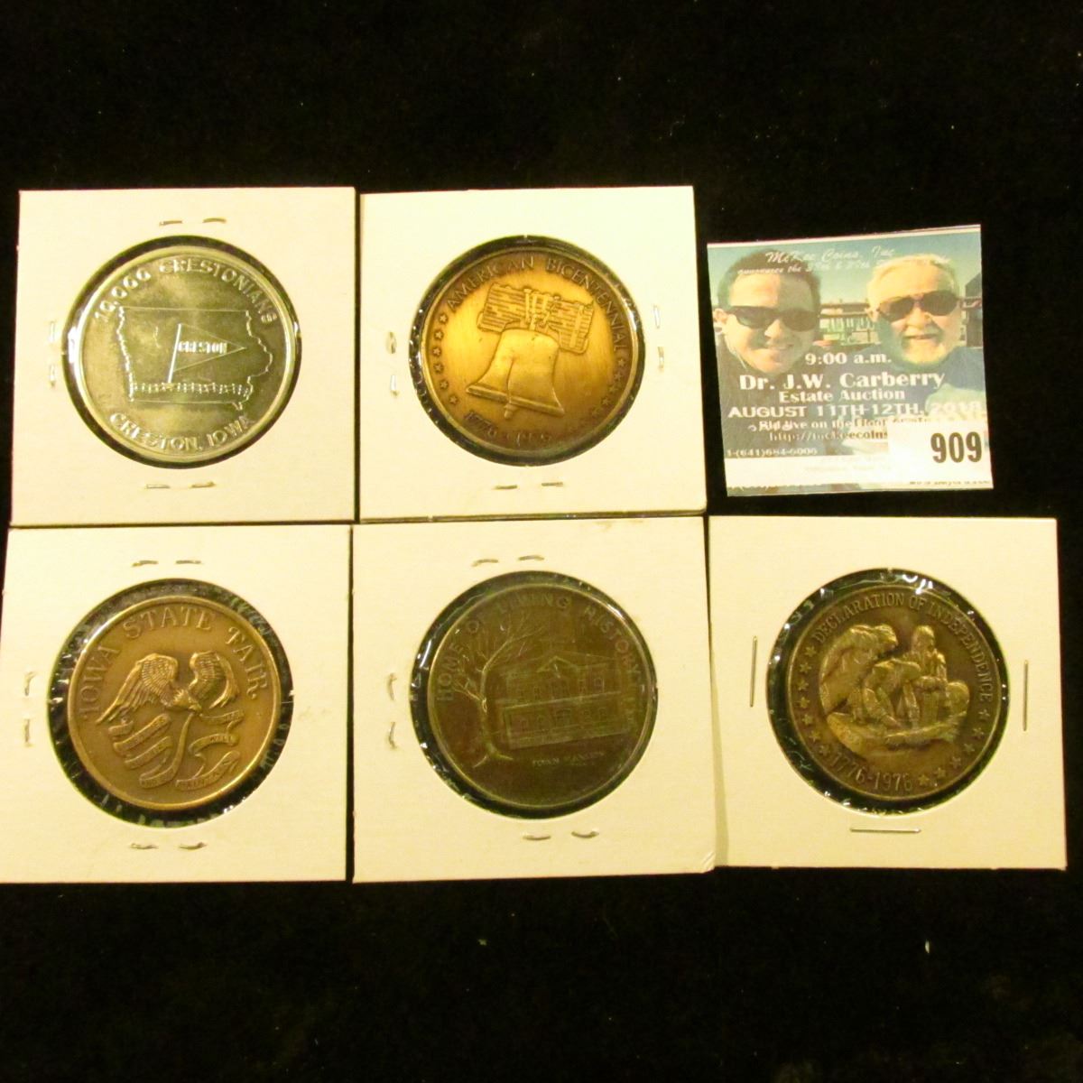 909 _ (5) Different 1976 Iowa Bicentennial Medals, includes: Shelby County, Urbandale, Iowa State Fa