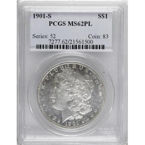 <!-- BEGIN: ICOLLECTOR - EBAY LOT HTML CODE --><style type='text/css'> #icoll_images_thumbnails, #icoll_images_mainimage, #icoll_otherlots { display: none; } div { font-family: arial, verdana, helvetica; } img { border: none; } .icoll_heading_title { background-color: #EFEFFF; color: #000; font-family: arial, verdana, helvetica; font-size: 12pt; font-style: normal; font-weight: bold; } </style><style type='text/css'>@import url(http://www.icollector.com/css/ebay/ebaylot_20070703.css);</style><script language='javascript' type='text/javascript'>function icollfunc_getelement(element_id) { var tmpelement = null; if(document.getElementById) tmpelement = document.getElementById(element_id); if(tmpelement == null) tmpelement = document[element_id]; return tmpelement; }var icollvar_mainpic = null; function icollfunc_initimages() { icollfunc_getelement('mainPicture').style.display = 'none'; icollvar_mainpic = icollfunc_getelement('icoll_images_mainimage'); var body_onload = document.body.attributes['onload']; document.body.setAttribute('onload', (body_onload ? body_onload.nodeValue : '') + 'icollfunc_fixoperaimgbug();'); }function icollfunc_changeimage(imgurl) { if(icollvar_mainpic != null) icollvar_mainpic.src = imgurl; }function icollfunc_fixoperaimgbug() { if(window.opera) { var imgobjs = icollfunc_getelement('icoll_images_thumbnails').getElementsByTagName('img'); for(var i=0; i<imgobjs.length; i++) { var w = imgobjs[i].clientWidth; if(w > 0) imgobjs[i].style.width = w + 'px'; } } }</script><script language='javascript' type='text/javascript'> var useragent = escape(navigator.userAgent); var appname = escape(navigator.appName); var dateobj = new Date(); var datetime = escape(dateobj.getFullYear()+'-'+(dateobj.getMonth()+1)+'-'+dateobj.getDate()+' '+dateobj.getHours()+':'+dateobj.getMinutes()); var referrer = ''; if(document.referrer && document.referrer != null) referrer = escape(document.referrer); new Image().src = 'http://www.icollector.com/stats/ebaylot.ashx?id=7140397&ua='+useragent+'&an='+appname+'&dt='+datetime+'&tz='+dateobj.getTimezoneOffset()+'&re='+referrer;</script><div id='icoll_images'><div id='icoll_images_prev'><a href='http://cgi.liveauctions.ebay.com/ws/eBayISAPI.dll?ViewItem&item=170135058717'><img src='http://www.ha.com/common/proxyImage.php?ebay=445-149002-1-75' alt='' /><img src='http://icollector.com/graphics/ebay_leftarrow.gif' alt='' class='arrow' /></a><div id='icoll_images_prev_info'>Prev Lot</div></div><div id='icoll_images_next'><a href='http://cgi.liveauctions.ebay.com/ws/eBayISAPI.dll?ViewItem&item=170135058733'><img src='http://www.ha.com/common/proxyImage.php?ebay=445-1518-1-75' alt='' /><img src='http://icollector.com/graphics/ebay_rightarrow.gif' alt='' class='arrow' /></a><div id='icoll_images_next_info'>Next Lot</div></div><div id='icoll_images_thumbnails'><a href='http://www.ha.com/common/proxyImage.php?ebay=445-39001-1-75' target='_blank' onmouseover="icollfunc_changeimage('http://www.ha.com/common/proxyImage.php?ebay=445-39001-1-75');"><img src='http://www.ha.com/common/proxyImage.php?ebay=445-39001-1-75' alt='' /></a><a href='http://www.ha.com/common/proxyImage.php?ebay=445-39001-2-75' target='_blank' onmouseover="icollfunc_changeimage('http://www.ha.com/common/proxyImage.php?ebay=445-39001-2-75');"><img src='http://www.ha.com/common/proxyImage.php?ebay=445-39001-2-75' alt='' /></a><div id='icoll_images_thumbnails_info'>Hover thumbnail to view large image below. Click thumbnail to view full image in new window.</div></div><div id='icoll_images_mainimage_container'><img id='icoll_images_mainimage' alt='' src='http://www.ha.com/common/proxyImage.php?ebay=445-39001-1-75'></div></div><script language='javascript' type='text/javascript'>icollfunc_initimages();</script><div id='icoll_description'><B>1901-S $1 MS62 Prooflike PCGS.</B></I> PCGS Population (6/15). NGC Census: (12/20). Numismedia Wsl. Price for NGC/PCGS coin in MS62: $442. (#7277)<BR><I>From The Diamond Head Registry Set of Prooflike Dollars.</B></I><BR><BR><B>Coin Engraver:</B> George T. Morgan<BR><BR><b>Shipping:</b> Coins & Currency (<a target="_blank" href="http://www.heritageauctions.com/common/shipping.php">view shipping information</a>\)</div><div id='icoll_notices'><div class='icoll_heading_left'></div><div class='icoll_heading'><div class='icoll_heading_title'>Notices</div></div><div class='icoll_heading_right'></div><div id='icoll_notices_info'><B>Important notice:</B> Heritage usually auctions material at the rate of 200-250 lots per hour. On some occasions eBay Live bid software or the Internet may not be able to keep up with the pace of the auction. We recommend placing a realistic absentee bid now as insurance to avoid disappointment. Occasionally the auctioneer may eliminate or reject an eBay Live bid, and the auctioneer may also reopen a lot after the close of the eBay live bidding (usually because we missed an audience bid), and may reject your bid even if it shows you as the winning bidder. By bidding via eBay Live, you agree that Heritage may award the lot to another bidder at its sole discretion under the circumstances described above or any other reasonable circumstances. Since eBay bids are not shown to us until we open the lot on the floor, we treat those bids just like floor bids. In most cases the floor responds before the eBay bid is presented to us, due to Internet lag time, so for consistency we have made it a policy that floor bids are always considered first over tie eBay live bids. Also please note that all Heritage lots purchased through eBay Live carry a 20% Buyer's Premium with a $9 minimum Buyer's Premium. Please make sure you read the Terms and Conditions before you bid. This lot is being auctioned in conjunction with a live floor auction by Heritage Auctions. All final auction and invoice information will be supplied by Heritage Auctions, and all other information should be considered preliminary. <BR><BR><B>Winning Notification and Billing:</B> After the FIN