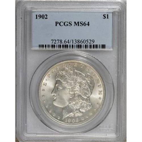 <!-- BEGIN: ICOLLECTOR - EBAY LOT HTML CODE --><style type='text/css'> #icoll_images_thumbnails, #icoll_images_mainimage, #icoll_otherlots { display: none; } div { font-family: arial, verdana, helvetica; } img { border: none; } .icoll_heading_title { background-color: #EFEFFF; color: #000; font-family: arial, verdana, helvetica; font-size: 12pt; font-style: normal; font-weight: bold; } </style><style type='text/css'>@import url(http://www.icollector.com/css/ebay/ebaylot_20070703.css);</style><script language='javascript' type='text/javascript'>function icollfunc_getelement(element_id) { var tmpelement = null; if(document.getElementById) tmpelement = document.getElementById(element_id); if(tmpelement == null) tmpelement = document[element_id]; return tmpelement; }var icollvar_mainpic = null; function icollfunc_initimages() { icollfunc_getelement('mainPicture').style.display = 'none'; icollvar_mainpic = icollfunc_getelement('icoll_images_mainimage'); var body_onload = document.body.attributes['onload']; document.body.setAttribute('onload', (body_onload ? body_onload.nodeValue : '') + 'icollfunc_fixoperaimgbug();'); }function icollfunc_changeimage(imgurl) { if(icollvar_mainpic != null) icollvar_mainpic.src = imgurl; }function icollfunc_fixoperaimgbug() { if(window.opera) { var imgobjs = icollfunc_getelement('icoll_images_thumbnails').getElementsByTagName('img'); for(var i=0; i<imgobjs.length; i++) { var w = imgobjs[i].clientWidth; if(w > 0) imgobjs[i].style.width = w + 'px'; } } }</script><script language='javascript' type='text/javascript'> var useragent = escape(navigator.userAgent); var appname = escape(navigator.appName); var dateobj = new Date(); var datetime = escape(dateobj.getFullYear()+'-'+(dateobj.getMonth()+1)+'-'+dateobj.getDate()+' '+dateobj.getHours()+':'+dateobj.getMinutes()); var referrer = ''; if(document.referrer && document.referrer != null) referrer = escape(document.referrer); new Image().src = 'http://www.icollector.com/stats/ebaylot.ashx?id=7140398&ua='+useragent+'&an='+appname+'&dt='+datetime+'&tz='+dateobj.getTimezoneOffset()+'&re='+referrer;</script><div id='icoll_images'><div id='icoll_images_prev'><a href='http://cgi.liveauctions.ebay.com/ws/eBayISAPI.dll?ViewItem&item=170135058724'><img src='http://www.ha.com/common/proxyImage.php?ebay=445-39001-1-75' alt='' /><img src='http://icollector.com/graphics/ebay_leftarrow.gif' alt='' class='arrow' /></a><div id='icoll_images_prev_info'>Prev Lot</div></div><div id='icoll_images_next'><a href='http://cgi.liveauctions.ebay.com/ws/eBayISAPI.dll?ViewItem&item=170135058742'><img src='http://www.ha.com/common/proxyImage.php?ebay=445-1162-1-75' alt='' /><img src='http://icollector.com/graphics/ebay_rightarrow.gif' alt='' class='arrow' /></a><div id='icoll_images_next_info'>Next Lot</div></div><div id='icoll_images_thumbnails'><a href='http://www.ha.com/common/proxyImage.php?ebay=445-1518-1-75' target='_blank' onmouseover="icollfunc_changeimage('http://www.ha.com/common/proxyImage.php?ebay=445-1518-1-75');"><img src='http://www.ha.com/common/proxyImage.php?ebay=445-1518-1-75' alt='' /></a><a href='http://www.ha.com/common/proxyImage.php?ebay=445-1518-2-75' target='_blank' onmouseover="icollfunc_changeimage('http://www.ha.com/common/proxyImage.php?ebay=445-1518-2-75');"><img src='http://www.ha.com/common/proxyImage.php?ebay=445-1518-2-75' alt='' /></a><div id='icoll_images_thumbnails_info'>Hover thumbnail to view large image below. Click thumbnail to view full image in new window.</div></div><div id='icoll_images_mainimage_container'><img id='icoll_images_mainimage' alt='' src='http://www.ha.com/common/proxyImage.php?ebay=445-1518-1-75'></div></div><script language='javascript' type='text/javascript'>icollfunc_initimages();</script><div id='icoll_description'><B>1902 $1 MS64 PCGS.</B></I> PCGS Population (1878/1455). NGC Census: (1839/898). Mintage: 7,994,777. Numismedia Wsl. Price for NGC/PCGS coin in MS64: $132. (#7278)<BR><BR><B>Coin Engraver:</B> George T. Morgan<BR><BR><b>Shipping:</b> Coins & Currency (<a target="_blank" href="http://www.heritageauctions.com/common/shipping.php">view shipping information</a>\)</div><div id='icoll_notices'><div class='icoll_heading_left'></div><div class='icoll_heading'><div class='icoll_heading_title'>Notices</div></div><div class='icoll_heading_right'></div><div id='icoll_notices_info'><B>Important notice:</B> Heritage usually auctions material at the rate of 200-250 lots per hour. On some occasions eBay Live bid software or the Internet may not be able to keep up with the pace of the auction. We recommend placing a realistic absentee bid now as insurance to avoid disappointment. Occasionally the auctioneer may eliminate or reject an eBay Live bid, and the auctioneer may also reopen a lot after the close of the eBay live bidding (usually because we missed an audience bid), and may reject your bid even if it shows you as the winning bidder. By bidding via eBay Live, you agree that Heritage may award the lot to another bidder at its sole discretion under the circumstances described above or any other reasonable circumstances. Since eBay bids are not shown to us until we open the lot on the floor, we treat those bids just like floor bids. In most cases the floor responds before the eBay bid is presented to us, due to Internet lag time, so for consistency we have made it a policy that floor bids are always considered first over tie eBay live bids. Also please note that all Heritage lots purchased through eBay Live carry a 20% Buyer's Premium with a $9 minimum Buyer's Premium. Please make sure you read the Terms and Conditions before you bid. This lot is being auctioned in conjunction with a live floor auction by Heritage Auctions. All final auction and invoice information will be supplied by Heritage Auctions, and all other information should be considered preliminary. <BR><BR><B>Winning Notification and Billing:</B> After the FINAL session in this auction is complete, Heritage will send e-ma