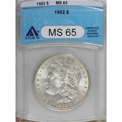 <!-- BEGIN: ICOLLECTOR - EBAY LOT HTML CODE --><style type='text/css'> #icoll_images_thumbnails, #icoll_images_mainimage, #icoll_otherlots { display: none; } div { font-family: arial, verdana, helvetica; } img { border: none; } .icoll_heading_title { background-color: #EFEFFF; color: #000; font-family: arial, verdana, helvetica; font-size: 12pt; font-style: normal; font-weight: bold; } </style><style type='text/css'>@import url(http://www.icollector.com/css/ebay/ebaylot_20070703.css);</style><script language='javascript' type='text/javascript'>function icollfunc_getelement(element_id) { var tmpelement = null; if(document.getElementById) tmpelement = document.getElementById(element_id); if(tmpelement == null) tmpelement = document[element_id]; return tmpelement; }var icollvar_mainpic = null; function icollfunc_initimages() { icollfunc_getelement('mainPicture').style.display = 'none'; icollvar_mainpic = icollfunc_getelement('icoll_images_mainimage'); var body_onload = document.body.attributes['onload']; document.body.setAttribute('onload', (body_onload ? body_onload.nodeValue : '') + 'icollfunc_fixoperaimgbug();'); }function icollfunc_changeimage(imgurl) { if(icollvar_mainpic != null) icollvar_mainpic.src = imgurl; }function icollfunc_fixoperaimgbug() { if(window.opera) { var imgobjs = icollfunc_getelement('icoll_images_thumbnails').getElementsByTagName('img'); for(var i=0; i<imgobjs.length; i++) { var w = imgobjs[i].clientWidth; if(w > 0) imgobjs[i].style.width = w + 'px'; } } }</script><script language='javascript' type='text/javascript'> var useragent = escape(navigator.userAgent); var appname = escape(navigator.appName); var dateobj = new Date(); var datetime = escape(dateobj.getFullYear()+'-'+(dateobj.getMonth()+1)+'-'+dateobj.getDate()+' '+dateobj.getHours()+':'+dateobj.getMinutes()); var referrer = ''; if(document.referrer && document.referrer != null) referrer = escape(document.referrer); new Image().src = 'http://www.icollector.com/stats/ebaylot.ashx?id=7140401&ua='+useragent+'&an='+appname+'&dt='+datetime+'&tz='+dateobj.getTimezoneOffset()+'&re='+referrer;</script><div id='icoll_images'><div id='icoll_images_prev'><a href='http://cgi.liveauctions.ebay.com/ws/eBayISAPI.dll?ViewItem&item=170135058775'><img src='http://www.ha.com/common/proxyImage.php?ebay=445-1171-1-75' alt='' /><img src='http://icollector.com/graphics/ebay_leftarrow.gif' alt='' class='arrow' /></a><div id='icoll_images_prev_info'>Prev Lot</div></div><div id='icoll_images_next'><a href='http://cgi.liveauctions.ebay.com/ws/eBayISAPI.dll?ViewItem&item=170135058819'><img src='http://www.ha.com/common/proxyImage.php?ebay=445-1255-1-75' alt='' /><img src='http://icollector.com/graphics/ebay_rightarrow.gif' alt='' class='arrow' /></a><div id='icoll_images_next_info'>Next Lot</div></div><div id='icoll_images_thumbnails'><a href='http://www.ha.com/common/proxyImage.php?ebay=445-1175-1-75' target='_blank' onmouseover="icollfunc_changeimage('http://www.ha.com/common/proxyImage.php?ebay=445-1175-1-75');"><img src='http://www.ha.com/common/proxyImage.php?ebay=445-1175-1-75' alt='' /></a><a href='http://www.ha.com/common/proxyImage.php?ebay=445-1175-2-75' target='_blank' onmouseover="icollfunc_changeimage('http://www.ha.com/common/proxyImage.php?ebay=445-1175-2-75');"><img src='http://www.ha.com/common/proxyImage.php?ebay=445-1175-2-75' alt='' /></a><div id='icoll_images_thumbnails_info'>Hover thumbnail to view large image below. Click thumbnail to view full image in new window.</div></div><div id='icoll_images_mainimage_container'><img id='icoll_images_mainimage' alt='' src='http://www.ha.com/common/proxyImage.php?ebay=445-1175-1-75'></div></div><script language='javascript' type='text/javascript'>icollfunc_initimages();</script><div id='icoll_description'><B>1902 $1 MS65 ANACS.</B></I> NGC Census: (750/146). PCGS Population (1084/343). Mintage: 7,994,777. Numismedia Wsl. Price for NGC/PCGS coin in MS65: $360. (#7278)<BR><BR><B>Coin Engraver:</B> George T. Morgan<BR><BR><b>Shipping:</b> Coins & Currency (<a target="_blank" href="http://www.heritageauctions.com/common/shipping.php">view shipping information</a>\)</div><div id='icoll_notices'><div class='icoll_heading_left'></div><div class='icoll_heading'><div class='icoll_heading_title'>Notices</div></div><div class='icoll_heading_right'></div><div id='icoll_notices_info'><B>Important notice:</B> Heritage usually auctions material at the rate of 200-250 lots per hour. On some occasions eBay Live bid software or the Internet may not be able to keep up with the pace of the auction. We recommend placing a realistic absentee bid now as insurance to avoid disappointment. Occasionally the auctioneer may eliminate or reject an eBay Live bid, and the auctioneer may also reopen a lot after the close of the eBay live bidding (usually because we missed an audience bid), and may reject your bid even if it shows you as the winning bidder. By bidding via eBay Live, you agree that Heritage may award the lot to another bidder at its sole discretion under the circumstances described above or any other reasonable circumstances. Since eBay bids are not shown to us until we open the lot on the floor, we treat those bids just like floor bids. In most cases the floor responds before the eBay bid is presented to us, due to Internet lag time, so for consistency we have made it a policy that floor bids are always considered first over tie eBay live bids. Also please note that all Heritage lots purchased through eBay Live carry a 20% Buyer's Premium with a $9 minimum Buyer's Premium. Please make sure you read the Terms and Conditions before you bid. This lot is being auctioned in conjunction with a live floor auction by Heritage Auctions. All final auction and invoice information will be supplied by Heritage Auctions, and all other information should be considered preliminary. <BR><BR><B>Winning Notification and Billing:</B> After the FINAL session in this auction is complete, Heritage will send e-mail