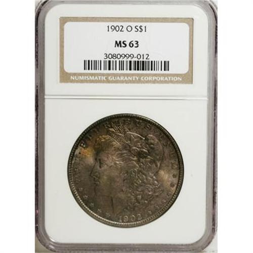 <!-- BEGIN: ICOLLECTOR - EBAY LOT HTML CODE --><style type='text/css'> #icoll_images_thumbnails, #icoll_images_mainimage, #icoll_otherlots { display: none; } div { font-family: arial, verdana, helvetica; } img { border: none; } .icoll_heading_title { background-color: #EFEFFF; color: #000; font-family: arial, verdana, helvetica; font-size: 12pt; font-style: normal; font-weight: bold; } </style><style type='text/css'>@import url(http://www.icollector.com/css/ebay/ebaylot_20070703.css);</style><script language='javascript' type='text/javascript'>function icollfunc_getelement(element_id) { var tmpelement = null; if(document.getElementById) tmpelement = document.getElementById(element_id); if(tmpelement == null) tmpelement = document[element_id]; return tmpelement; }var icollvar_mainpic = null; function icollfunc_initimages() { icollfunc_getelement('mainPicture').style.display = 'none'; icollvar_mainpic = icollfunc_getelement('icoll_images_mainimage'); var body_onload = document.body.attributes['onload']; document.body.setAttribute('onload', (body_onload ? body_onload.nodeValue : '') + 'icollfunc_fixoperaimgbug();'); }function icollfunc_changeimage(imgurl) { if(icollvar_mainpic != null) icollvar_mainpic.src = imgurl; }function icollfunc_fixoperaimgbug() { if(window.opera) { var imgobjs = icollfunc_getelement('icoll_images_thumbnails').getElementsByTagName('img'); for(var i=0; i<imgobjs.length; i++) { var w = imgobjs[i].clientWidth; if(w > 0) imgobjs[i].style.width = w + 'px'; } } }</script><script language='javascript' type='text/javascript'> var useragent = escape(navigator.userAgent); var appname = escape(navigator.appName); var dateobj = new Date(); var datetime = escape(dateobj.getFullYear()+'-'+(dateobj.getMonth()+1)+'-'+dateobj.getDate()+' '+dateobj.getHours()+':'+dateobj.getMinutes()); var referrer = ''; if(document.referrer && document.referrer != null) referrer = escape(document.referrer); new Image().src = 'http://www.icollector.com/stats/ebaylot.ashx?id=7140405&ua='+useragent+'&an='+appname+'&dt='+datetime+'&tz='+dateobj.getTimezoneOffset()+'&re='+referrer;</script><div id='icoll_images'><div id='icoll_images_prev'><a href='http://cgi.liveauctions.ebay.com/ws/eBayISAPI.dll?ViewItem&item=170135058844'><img src='http://www.ha.com/common/proxyImage.php?ebay=445-39026-1-75' alt='' /><img src='http://icollector.com/graphics/ebay_leftarrow.gif' alt='' class='arrow' /></a><div id='icoll_images_prev_info'>Prev Lot</div></div><div id='icoll_images_next'><a href='http://cgi.liveauctions.ebay.com/ws/eBayISAPI.dll?ViewItem&item=170135058859'><img src='http://www.ha.com/common/proxyImage.php?ebay=445-39042-1-75' alt='' /><img src='http://icollector.com/graphics/ebay_rightarrow.gif' alt='' class='arrow' /></a><div id='icoll_images_next_info'>Next Lot</div></div><div id='icoll_images_thumbnails'><a href='http://www.ha.com/common/proxyImage.php?ebay=445-154060-1-75' target='_blank' onmouseover="icollfunc_changeimage('http://www.ha.com/common/proxyImage.php?ebay=445-154060-1-75');"><img src='http://www.ha.com/common/proxyImage.php?ebay=445-154060-1-75' alt='' /></a><a href='http://www.ha.com/common/proxyImage.php?ebay=445-154060-2-75' target='_blank' onmouseover="icollfunc_changeimage('http://www.ha.com/common/proxyImage.php?ebay=445-154060-2-75');"><img src='http://www.ha.com/common/proxyImage.php?ebay=445-154060-2-75' alt='' /></a><div id='icoll_images_thumbnails_info'>Hover thumbnail to view large image below. Click thumbnail to view full image in new window.</div></div><div id='icoll_images_mainimage_container'><img id='icoll_images_mainimage' alt='' src='http://www.ha.com/common/proxyImage.php?ebay=445-154060-1-75'></div></div><script language='javascript' type='text/javascript'>icollfunc_initimages();</script><div id='icoll_description'><B>1902-O $1 MS63 NGC.</B></I> NGC Census: (9632/24902). PCGS Population (10456/17499). Mintage: 8,636,000. Numismedia Wsl. Price for NGC/PCGS coin in MS63: $39. (#7280)<BR><BR><B>Coin Engraver:</B> George T. Morgan<BR><BR><b>Shipping:</b> Coins & Currency (<a target="_blank" href="http://www.heritageauctions.com/common/shipping.php">view shipping information</a>\)</div><div id='icoll_notices'><div class='icoll_heading_left'></div><div class='icoll_heading'><div class='icoll_heading_title'>Notices</div></div><div class='icoll_heading_right'></div><div id='icoll_notices_info'><B>Important notice:</B> Heritage usually auctions material at the rate of 200-250 lots per hour. On some occasions eBay Live bid software or the Internet may not be able to keep up with the pace of the auction. We recommend placing a realistic absentee bid now as insurance to avoid disappointment. Occasionally the auctioneer may eliminate or reject an eBay Live bid, and the auctioneer may also reopen a lot after the close of the eBay live bidding (usually because we missed an audience bid), and may reject your bid even if it shows you as the winning bidder. By bidding via eBay Live, you agree that Heritage may award the lot to another bidder at its sole discretion under the circumstances described above or any other reasonable circumstances. Since eBay bids are not shown to us until we open the lot on the floor, we treat those bids just like floor bids. In most cases the floor responds before the eBay bid is presented to us, due to Internet lag time, so for consistency we have made it a policy that floor bids are always considered first over tie eBay live bids. Also please note that all Heritage lots purchased through eBay Live carry a 20% Buyer's Premium with a $9 minimum Buyer's Premium. Please make sure you read the Terms and Conditions before you bid. This lot is being auctioned in conjunction with a live floor auction by Heritage Auctions. All final auction and invoice information will be supplied by Heritage Auctions, and all other information should be considered preliminary. <BR><BR><B>Winning Notification and Billing:</B> After the FINAL session in this auction is complete, Heri
