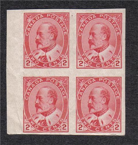 #90a VF NH IMPERF MARGIN BLOCK OF 4 C$300,00