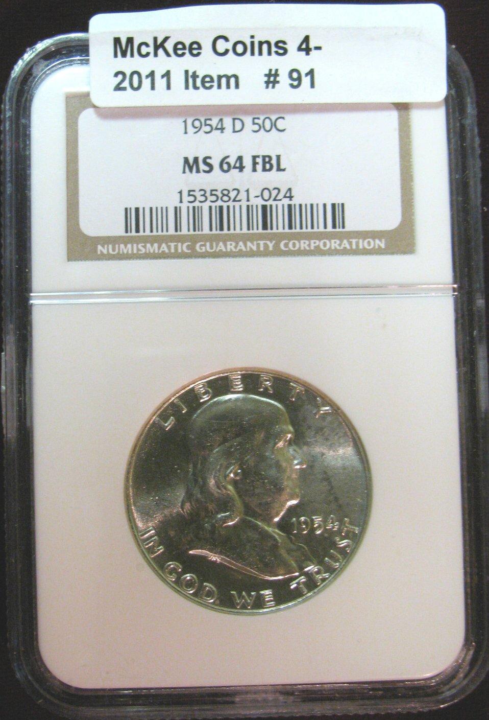 91. 1954 D Franklin Half Dollar. NGC slabbed MS 64 FBL