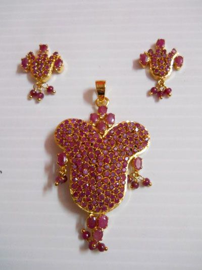 91.65 GOLD PLATED RUBY EARRING AND PENDANT SET STERLING **|**|** 91.65 GOLD PLATED RUBY EARRING AND PENDANT SET STERLING SILVER ; MSRP: $925