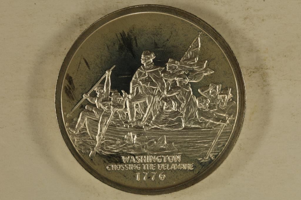 CENTENNIAL ROUND WASHINGTON CROSSING THE DELAWARE IN HARD PLASTIC CAPSULE SOME CLOUDING ON THE REVERSE