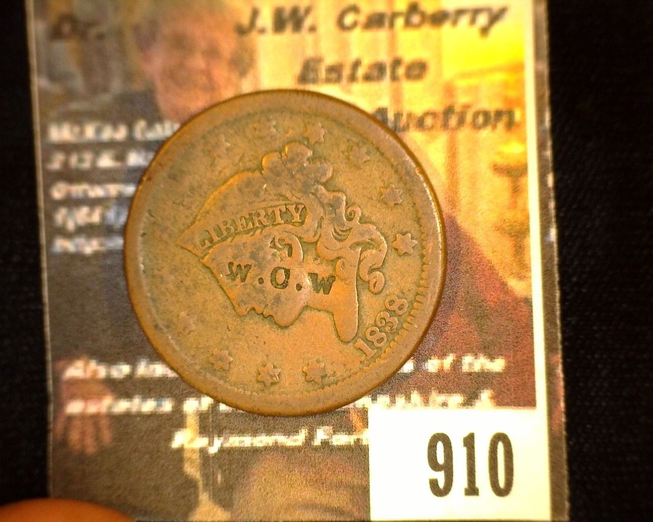 910.1838 Large Cent Counter marked "WOW".