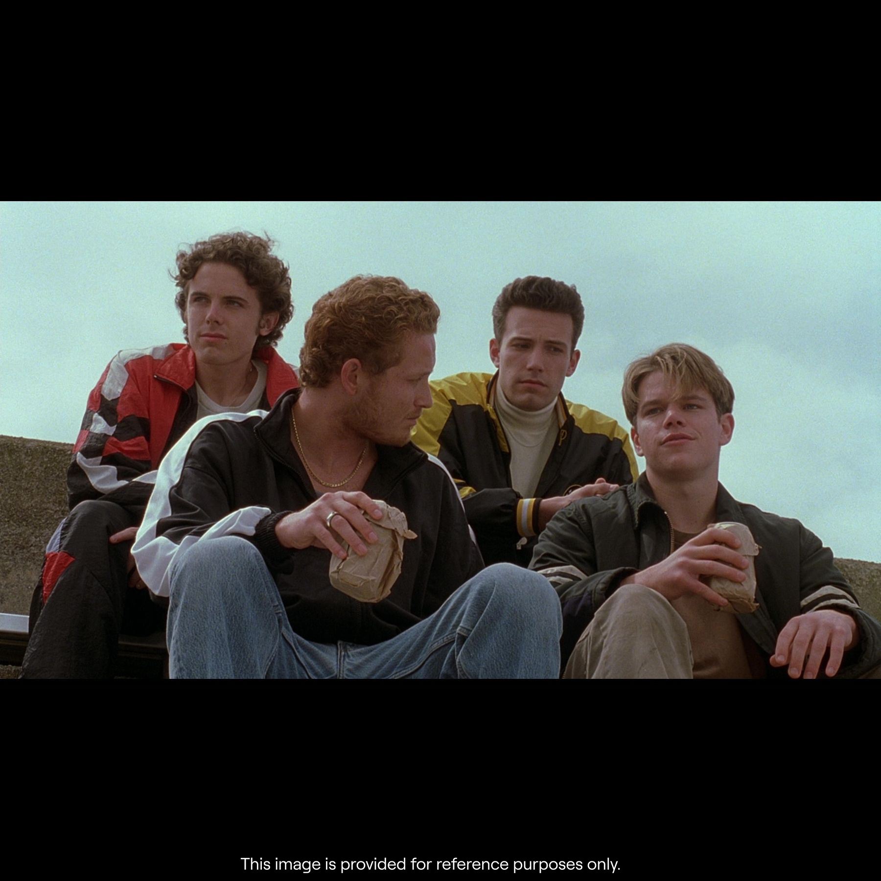 GOOD WILL HUNTING (1997) - Chuckie Sullivan's (Ben Affleck) Jacket - Chuckie Sullivan's (Ben Affleck) jacket from Gus Van Sant's Good Will Hunting. Chuckie wore his jacket as he watched a Little League baseball game in the neighborhood with Will Hunting (Matt Damon), Morgan (Casey Affleck), and Billy (Cole Hauser) before the group got into a fight with Will's childhood bully Carmine Scarpaglia (Rob Lyons).
