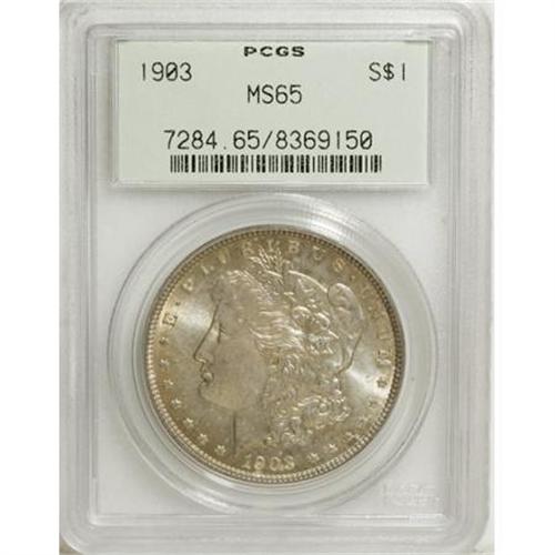 <!-- BEGIN: ICOLLECTOR - EBAY LOT HTML CODE --><style type='text/css'> #icoll_images_thumbnails, #icoll_images_mainimage, #icoll_otherlots { display: none; } div { font-family: arial, verdana, helvetica; } img { border: none; } .icoll_heading_title { background-color: #EFEFFF; color: #000; font-family: arial, verdana, helvetica; font-size: 12pt; font-style: normal; font-weight: bold; } </style><style type='text/css'>@import url(http://www.icollector.com/css/ebay/ebaylot_20070703.css);</style><script language='javascript' type='text/javascript'>function icollfunc_getelement(element_id) { var tmpelement = null; if(document.getElementById) tmpelement = document.getElementById(element_id); if(tmpelement == null) tmpelement = document[element_id]; return tmpelement; }var icollvar_mainpic = null; function icollfunc_initimages() { icollfunc_getelement('mainPicture').style.display = 'none'; icollvar_mainpic = icollfunc_getelement('icoll_images_mainimage'); var body_onload = document.body.attributes['onload']; document.body.setAttribute('onload', (body_onload ? body_onload.nodeValue : '') + 'icollfunc_fixoperaimgbug();'); }function icollfunc_changeimage(imgurl) { if(icollvar_mainpic != null) icollvar_mainpic.src = imgurl; }function icollfunc_fixoperaimgbug() { if(window.opera) { var imgobjs = icollfunc_getelement('icoll_images_thumbnails').getElementsByTagName('img'); for(var i=0; i<imgobjs.length; i++) { var w = imgobjs[i].clientWidth; if(w > 0) imgobjs[i].style.width = w + 'px'; } } }</script><script language='javascript' type='text/javascript'> var useragent = escape(navigator.userAgent); var appname = escape(navigator.appName); var dateobj = new Date(); var datetime = escape(dateobj.getFullYear()+'-'+(dateobj.getMonth()+1)+'-'+dateobj.getDate()+' '+dateobj.getHours()+':'+dateobj.getMinutes()); var referrer = ''; if(document.referrer && document.referrer != null) referrer = escape(document.referrer); new Image().src = 'http://www.icollector.com/stats/ebaylot.ashx?id=7140417&ua='+useragent+'&an='+appname+'&dt='+datetime+'&tz='+dateobj.getTimezoneOffset()+'&re='+referrer;</script><div id='icoll_images'><div id='icoll_images_prev'><a href='http://cgi.liveauctions.ebay.com/ws/eBayISAPI.dll?ViewItem&item=170135058981'><img src='http://www.ha.com/common/proxyImage.php?ebay=445-90005-1-75' alt='' /><img src='http://icollector.com/graphics/ebay_leftarrow.gif' alt='' class='arrow' /></a><div id='icoll_images_prev_info'>Prev Lot</div></div><div id='icoll_images_next'><a href='http://cgi.liveauctions.ebay.com/ws/eBayISAPI.dll?ViewItem&item=170135058994'><img src='http://www.ha.com/common/proxyImage.php?ebay=445-154066-1-75' alt='' /><img src='http://icollector.com/graphics/ebay_rightarrow.gif' alt='' class='arrow' /></a><div id='icoll_images_next_info'>Next Lot</div></div><div id='icoll_images_thumbnails'><a href='http://www.ha.com/common/proxyImage.php?ebay=445-148002-1-75' target='_blank' onmouseover="icollfunc_changeimage('http://www.ha.com/common/proxyImage.php?ebay=445-148002-1-75');"><img src='http://www.ha.com/common/proxyImage.php?ebay=445-148002-1-75' alt='' /></a><a href='http://www.ha.com/common/proxyImage.php?ebay=445-148002-2-75' target='_blank' onmouseover="icollfunc_changeimage('http://www.ha.com/common/proxyImage.php?ebay=445-148002-2-75');"><img src='http://www.ha.com/common/proxyImage.php?ebay=445-148002-2-75' alt='' /></a><div id='icoll_images_thumbnails_info'>Hover thumbnail to view large image below. Click thumbnail to view full image in new window.</div></div><div id='icoll_images_mainimage_container'><img id='icoll_images_mainimage' alt='' src='http://www.ha.com/common/proxyImage.php?ebay=445-148002-1-75'></div></div><script language='javascript' type='text/javascript'>icollfunc_initimages();</script><div id='icoll_description'><B>1903 $1 MS65 PCGS.</B></I> PCGS Population (2339/759). NGC Census: (1891/520). Mintage: 4,652,755. Numismedia Wsl. Price for NGC/PCGS coin in MS65: $228. (#7284)<BR><BR><B>Coin Engraver:</B> George T. Morgan<BR><BR><b>Shipping:</b> Coins & Currency (<a target="_blank" href="http://www.heritageauctions.com/common/shipping.php">view shipping information</a>\)</div><div id='icoll_notices'><div class='icoll_heading_left'></div><div class='icoll_heading'><div class='icoll_heading_title'>Notices</div></div><div class='icoll_heading_right'></div><div id='icoll_notices_info'><B>Important notice:</B> Heritage usually auctions material at the rate of 200-250 lots per hour. On some occasions eBay Live bid software or the Internet may not be able to keep up with the pace of the auction. We recommend placing a realistic absentee bid now as insurance to avoid disappointment. Occasionally the auctioneer may eliminate or reject an eBay Live bid, and the auctioneer may also reopen a lot after the close of the eBay live bidding (usually because we missed an audience bid), and may reject your bid even if it shows you as the winning bidder. By bidding via eBay Live, you agree that Heritage may award the lot to another bidder at its sole discretion under the circumstances described above or any other reasonable circumstances. Since eBay bids are not shown to us until we open the lot on the floor, we treat those bids just like floor bids. In most cases the floor responds before the eBay bid is presented to us, due to Internet lag time, so for consistency we have made it a policy that floor bids are always considered first over tie eBay live bids. Also please note that all Heritage lots purchased through eBay Live carry a 20% Buyer's Premium with a $9 minimum Buyer's Premium. Please make sure you read the Terms and Conditions before you bid. This lot is being auctioned in conjunction with a live floor auction by Heritage Auctions. All final auction and invoice information will be supplied by Heritage Auctions, and all other information should be considered preliminary. <BR><BR><B>Winning Notification and Billing:</B> After the FINAL session in this auction is complete, Heritage