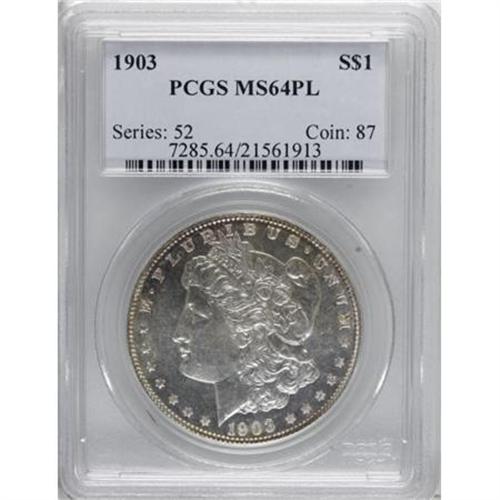 <!-- BEGIN: ICOLLECTOR - EBAY LOT HTML CODE --><style type='text/css'> #icoll_images_thumbnails, #icoll_images_mainimage, #icoll_otherlots { display: none; } div { font-family: arial, verdana, helvetica; } img { border: none; } .icoll_heading_title { background-color: #EFEFFF; color: #000; font-family: arial, verdana, helvetica; font-size: 12pt; font-style: normal; font-weight: bold; } </style><style type='text/css'>@import url(http://www.icollector.com/css/ebay/ebaylot_20070703.css);</style><script language='javascript' type='text/javascript'>function icollfunc_getelement(element_id) { var tmpelement = null; if(document.getElementById) tmpelement = document.getElementById(element_id); if(tmpelement == null) tmpelement = document[element_id]; return tmpelement; }var icollvar_mainpic = null; function icollfunc_initimages() { icollfunc_getelement('mainPicture').style.display = 'none'; icollvar_mainpic = icollfunc_getelement('icoll_images_mainimage'); var body_onload = document.body.attributes['onload']; document.body.setAttribute('onload', (body_onload ? body_onload.nodeValue : '') + 'icollfunc_fixoperaimgbug();'); }function icollfunc_changeimage(imgurl) { if(icollvar_mainpic != null) icollvar_mainpic.src = imgurl; }function icollfunc_fixoperaimgbug() { if(window.opera) { var imgobjs = icollfunc_getelement('icoll_images_thumbnails').getElementsByTagName('img'); for(var i=0; i<imgobjs.length; i++) { var w = imgobjs[i].clientWidth; if(w > 0) imgobjs[i].style.width = w + 'px'; } } }</script><script language='javascript' type='text/javascript'> var useragent = escape(navigator.userAgent); var appname = escape(navigator.appName); var dateobj = new Date(); var datetime = escape(dateobj.getFullYear()+'-'+(dateobj.getMonth()+1)+'-'+dateobj.getDate()+' '+dateobj.getHours()+':'+dateobj.getMinutes()); var referrer = ''; if(document.referrer && document.referrer != null) referrer = escape(document.referrer); new Image().src = 'http://www.icollector.com/stats/ebaylot.ashx?id=7140420&ua='+useragent+'&an='+appname+'&dt='+datetime+'&tz='+dateobj.getTimezoneOffset()+'&re='+referrer;</script><div id='icoll_images'><div id='icoll_images_prev'><a href='http://cgi.liveauctions.ebay.com/ws/eBayISAPI.dll?ViewItem&item=170135059003'><img src='http://www.ha.com/common/proxyImage.php?ebay=445-39083-1-75' alt='' /><img src='http://icollector.com/graphics/ebay_leftarrow.gif' alt='' class='arrow' /></a><div id='icoll_images_prev_info'>Prev Lot</div></div><div id='icoll_images_next'><a href='http://cgi.liveauctions.ebay.com/ws/eBayISAPI.dll?ViewItem&item=170135059012'><img src='http://www.ha.com/common/proxyImage.php?ebay=445-182026-1-75' alt='' /><img src='http://icollector.com/graphics/ebay_rightarrow.gif' alt='' class='arrow' /></a><div id='icoll_images_next_info'>Next Lot</div></div><div id='icoll_images_thumbnails'><a href='http://www.ha.com/common/proxyImage.php?ebay=445-39021-1-75' target='_blank' onmouseover="icollfunc_changeimage('http://www.ha.com/common/proxyImage.php?ebay=445-39021-1-75');"><img src='http://www.ha.com/common/proxyImage.php?ebay=445-39021-1-75' alt='' /></a><a href='http://www.ha.com/common/proxyImage.php?ebay=445-39021-2-75' target='_blank' onmouseover="icollfunc_changeimage('http://www.ha.com/common/proxyImage.php?ebay=445-39021-2-75');"><img src='http://www.ha.com/common/proxyImage.php?ebay=445-39021-2-75' alt='' /></a><div id='icoll_images_thumbnails_info'>Hover thumbnail to view large image below. Click thumbnail to view full image in new window.</div></div><div id='icoll_images_mainimage_container'><img id='icoll_images_mainimage' alt='' src='http://www.ha.com/common/proxyImage.php?ebay=445-39021-1-75'></div></div><script language='javascript' type='text/javascript'>icollfunc_initimages();</script><div id='icoll_description'><B>1903 $1 MS64 Prooflike PCGS.</B></I> PCGS Population (45/30). NGC Census: (69/36). Numismedia Wsl. Price for NGC/PCGS coin in MS64: $212. (#7285)<BR><I>From The Diamond Head Collection.</B></I><BR><BR><B>Coin Engraver:</B> George T. Morgan<BR><BR><b>Shipping:</b> Coins & Currency (<a target="_blank" href="http://www.heritageauctions.com/common/shipping.php">view shipping information</a>\)</div><div id='icoll_notices'><div class='icoll_heading_left'></div><div class='icoll_heading'><div class='icoll_heading_title'>Notices</div></div><div class='icoll_heading_right'></div><div id='icoll_notices_info'><B>Important notice:</B> Heritage usually auctions material at the rate of 200-250 lots per hour. On some occasions eBay Live bid software or the Internet may not be able to keep up with the pace of the auction. We recommend placing a realistic absentee bid now as insurance to avoid disappointment. Occasionally the auctioneer may eliminate or reject an eBay Live bid, and the auctioneer may also reopen a lot after the close of the eBay live bidding (usually because we missed an audience bid), and may reject your bid even if it shows you as the winning bidder. By bidding via eBay Live, you agree that Heritage may award the lot to another bidder at its sole discretion under the circumstances described above or any other reasonable circumstances. Since eBay bids are not shown to us until we open the lot on the floor, we treat those bids just like floor bids. In most cases the floor responds before the eBay bid is presented to us, due to Internet lag time, so for consistency we have made it a policy that floor bids are always considered first over tie eBay live bids. Also please note that all Heritage lots purchased through eBay Live carry a 20% Buyer's Premium with a $9 minimum Buyer's Premium. Please make sure you read the Terms and Conditions before you bid. This lot is being auctioned in conjunction with a live floor auction by Heritage Auctions. All final auction and invoice information will be supplied by Heritage Auctions, and all other information should be considered preliminary. <BR><BR><B>Winning Notification and Billing:</B> After the FINAL session in this auct