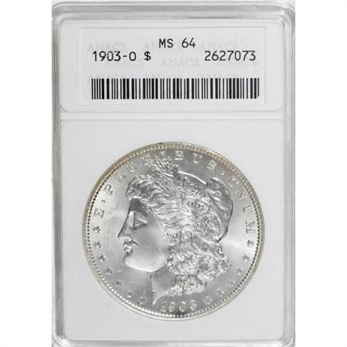 <!-- BEGIN: ICOLLECTOR - EBAY LOT HTML CODE --><style type='text/css'> #icoll_images_thumbnails, #icoll_images_mainimage, #icoll_otherlots { display: none; } div { font-family: arial, verdana, helvetica; } img { border: none; } .icoll_heading_title { background-color: #EFEFFF; color: #000; font-family: arial, verdana, helvetica; font-size: 12pt; font-style: normal; font-weight: bold; } </style><style type='text/css'>@import url(http://www.icollector.com/css/ebay/ebaylot_20070703.css);</style><script language='javascript' type='text/javascript'>function icollfunc_getelement(element_id) { var tmpelement = null; if(document.getElementById) tmpelement = document.getElementById(element_id); if(tmpelement == null) tmpelement = document[element_id]; return tmpelement; }var icollvar_mainpic = null; function icollfunc_initimages() { icollfunc_getelement('mainPicture').style.display = 'none'; icollvar_mainpic = icollfunc_getelement('icoll_images_mainimage'); var body_onload = document.body.attributes['onload']; document.body.setAttribute('onload', (body_onload ? body_onload.nodeValue : '') + 'icollfunc_fixoperaimgbug();'); }function icollfunc_changeimage(imgurl) { if(icollvar_mainpic != null) icollvar_mainpic.src = imgurl; }function icollfunc_fixoperaimgbug() { if(window.opera) { var imgobjs = icollfunc_getelement('icoll_images_thumbnails').getElementsByTagName('img'); for(var i=0; i<imgobjs.length; i++) { var w = imgobjs[i].clientWidth; if(w > 0) imgobjs[i].style.width = w + 'px'; } } }</script><script language='javascript' type='text/javascript'> var useragent = escape(navigator.userAgent); var appname = escape(navigator.appName); var dateobj = new Date(); var datetime = escape(dateobj.getFullYear()+'-'+(dateobj.getMonth()+1)+'-'+dateobj.getDate()+' '+dateobj.getHours()+':'+dateobj.getMinutes()); var referrer = ''; if(document.referrer && document.referrer != null) referrer = escape(document.referrer); new Image().src = 'http://www.icollector.com/stats/ebaylot.ashx?id=7140424&ua='+useragent+'&an='+appname+'&dt='+datetime+'&tz='+dateobj.getTimezoneOffset()+'&re='+referrer;</script><div id='icoll_images'><div id='icoll_images_prev'><a href='http://cgi.liveauctions.ebay.com/ws/eBayISAPI.dll?ViewItem&item=170135059018'><img src='http://www.ha.com/common/proxyImage.php?ebay=445-121035-1-75' alt='' /><img src='http://icollector.com/graphics/ebay_leftarrow.gif' alt='' class='arrow' /></a><div id='icoll_images_prev_info'>Prev Lot</div></div><div id='icoll_images_next'><a href='http://cgi.liveauctions.ebay.com/ws/eBayISAPI.dll?ViewItem&item=170135059027'><img src='http://www.ha.com/common/proxyImage.php?ebay=445-17138-1-75' alt='' /><img src='http://icollector.com/graphics/ebay_rightarrow.gif' alt='' class='arrow' /></a><div id='icoll_images_next_info'>Next Lot</div></div><div id='icoll_images_thumbnails'><a href='http://www.ha.com/common/proxyImage.php?ebay=445-17119-1-75' target='_blank' onmouseover="icollfunc_changeimage('http://www.ha.com/common/proxyImage.php?ebay=445-17119-1-75');"><img src='http://www.ha.com/common/proxyImage.php?ebay=445-17119-1-75' alt='' /></a><a href='http://www.ha.com/common/proxyImage.php?ebay=445-17119-2-75' target='_blank' onmouseover="icollfunc_changeimage('http://www.ha.com/common/proxyImage.php?ebay=445-17119-2-75');"><img src='http://www.ha.com/common/proxyImage.php?ebay=445-17119-2-75' alt='' /></a><div id='icoll_images_thumbnails_info'>Hover thumbnail to view large image below. Click thumbnail to view full image in new window.</div></div><div id='icoll_images_mainimage_container'><img id='icoll_images_mainimage' alt='' src='http://www.ha.com/common/proxyImage.php?ebay=445-17119-1-75'></div></div><script language='javascript' type='text/javascript'>icollfunc_initimages();</script><div id='icoll_description'><B>1903-O $1 MS64 ANACS.</B></I> NGC Census: (1852/1399). PCGS Population (3179/2202). Mintage: 4,450,000. Numismedia Wsl. Price for NGC/PCGS coin in MS64: $400. (#7286)<BR><BR><B>Coin Engraver:</B> George T. Morgan<BR><BR><b>Shipping:</b> Coins & Currency (<a target="_blank" href="http://www.heritageauctions.com/common/shipping.php">view shipping information</a>\)</div><div id='icoll_notices'><div class='icoll_heading_left'></div><div class='icoll_heading'><div class='icoll_heading_title'>Notices</div></div><div class='icoll_heading_right'></div><div id='icoll_notices_info'><B>Important notice:</B> Heritage usually auctions material at the rate of 200-250 lots per hour. On some occasions eBay Live bid software or the Internet may not be able to keep up with the pace of the auction. We recommend placing a realistic absentee bid now as insurance to avoid disappointment. Occasionally the auctioneer may eliminate or reject an eBay Live bid, and the auctioneer may also reopen a lot after the close of the eBay live bidding (usually because we missed an audience bid), and may reject your bid even if it shows you as the winning bidder. By bidding via eBay Live, you agree that Heritage may award the lot to another bidder at its sole discretion under the circumstances described above or any other reasonable circumstances. Since eBay bids are not shown to us until we open the lot on the floor, we treat those bids just like floor bids. In most cases the floor responds before the eBay bid is presented to us, due to Internet lag time, so for consistency we have made it a policy that floor bids are always considered first over tie eBay live bids. Also please note that all Heritage lots purchased through eBay Live carry a 20% Buyer's Premium with a $9 minimum Buyer's Premium. Please make sure you read the Terms and Conditions before you bid. This lot is being auctioned in conjunction with a live floor auction by Heritage Auctions. All final auction and invoice information will be supplied by Heritage Auctions, and all other information should be considered preliminary. <BR><BR><B>Winning Notification and Billing:</B> After the FINAL session in this auction is complete, Heritage w