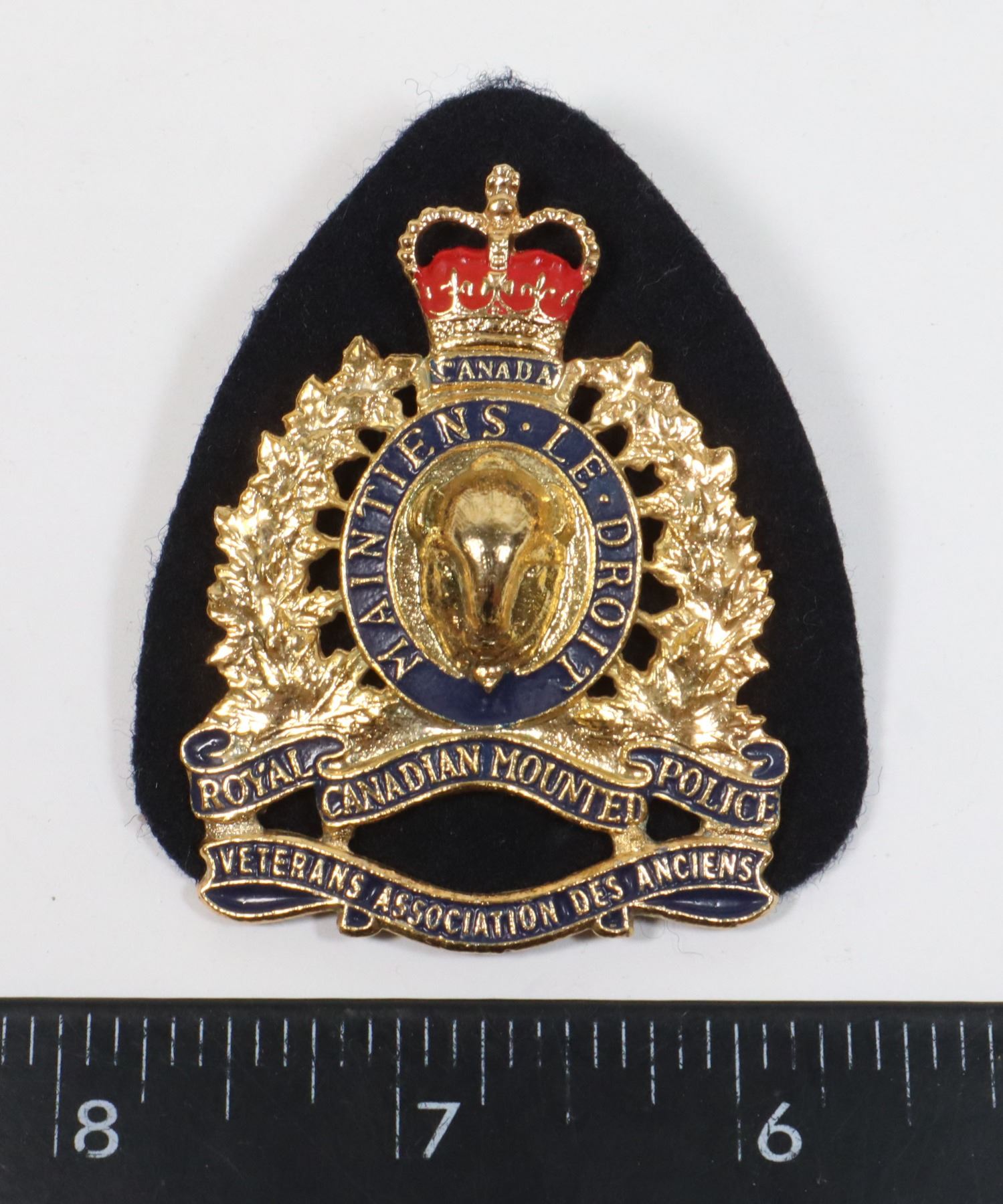 ROYAL CANADIAN MOUNTED POLICE QEII QUEEN ELIZABETH II ENAMEL AND METAL VINTAGE POLICE LAW ENFORCEMENT BADGE MOUNTIE INSIGNIA