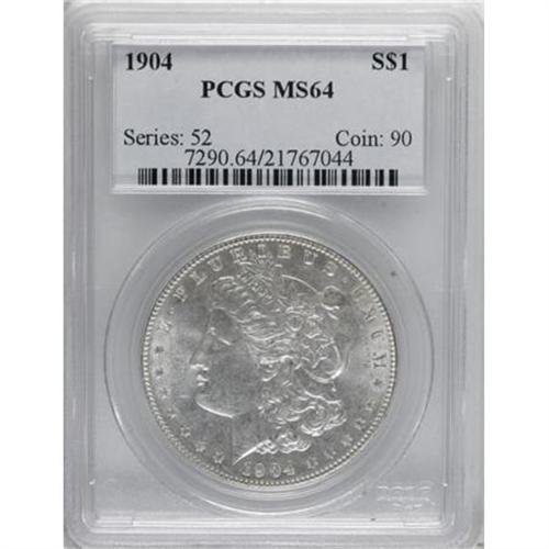 <!-- BEGIN: ICOLLECTOR - EBAY LOT HTML CODE --><style type='text/css'> #icoll_images_thumbnails, #icoll_images_mainimage, #icoll_otherlots { display: none; } div { font-family: arial, verdana, helvetica; } img { border: none; } .icoll_heading_title { background-color: #EFEFFF; color: #000; font-family: arial, verdana, helvetica; font-size: 12pt; font-style: normal; font-weight: bold; } </style><style type='text/css'>@import url(http://www.icollector.com/css/ebay/ebaylot_20070703.css);</style><script language='javascript' type='text/javascript'>function icollfunc_getelement(element_id) { var tmpelement = null; if(document.getElementById) tmpelement = document.getElementById(element_id); if(tmpelement == null) tmpelement = document[element_id]; return tmpelement; }var icollvar_mainpic = null; function icollfunc_initimages() { icollfunc_getelement('mainPicture').style.display = 'none'; icollvar_mainpic = icollfunc_getelement('icoll_images_mainimage'); var body_onload = document.body.attributes['onload']; document.body.setAttribute('onload', (body_onload ? body_onload.nodeValue : '') + 'icollfunc_fixoperaimgbug();'); }function icollfunc_changeimage(imgurl) { if(icollvar_mainpic != null) icollvar_mainpic.src = imgurl; }function icollfunc_fixoperaimgbug() { if(window.opera) { var imgobjs = icollfunc_getelement('icoll_images_thumbnails').getElementsByTagName('img'); for(var i=0; i<imgobjs.length; i++) { var w = imgobjs[i].clientWidth; if(w > 0) imgobjs[i].style.width = w + 'px'; } } }</script><script language='javascript' type='text/javascript'> var useragent = escape(navigator.userAgent); var appname = escape(navigator.appName); var dateobj = new Date(); var datetime = escape(dateobj.getFullYear()+'-'+(dateobj.getMonth()+1)+'-'+dateobj.getDate()+' '+dateobj.getHours()+':'+dateobj.getMinutes()); var referrer = ''; if(document.referrer && document.referrer != null) referrer = escape(document.referrer); new Image().src = 'http://www.icollector.com/stats/ebaylot.ashx?id=7140442&ua='+useragent+'&an='+appname+'&dt='+datetime+'&tz='+dateobj.getTimezoneOffset()+'&re='+referrer;</script><div id='icoll_images'><div id='icoll_images_prev'><a href='http://cgi.liveauctions.ebay.com/ws/eBayISAPI.dll?ViewItem&item=170135059122'><img src='http://www.ha.com/common/proxyImage.php?ebay=445-39023-1-75' alt='' /><img src='http://icollector.com/graphics/ebay_leftarrow.gif' alt='' class='arrow' /></a><div id='icoll_images_prev_info'>Prev Lot</div></div><div id='icoll_images_next'><a href='http://cgi.liveauctions.ebay.com/ws/eBayISAPI.dll?ViewItem&item=170135059131'><img src='http://www.ha.com/common/proxyImage.php?ebay=445-39022-1-75' alt='' /><img src='http://icollector.com/graphics/ebay_rightarrow.gif' alt='' class='arrow' /></a><div id='icoll_images_next_info'>Next Lot</div></div><div id='icoll_images_thumbnails'><a href='http://www.ha.com/common/proxyImage.php?ebay=445-39024-1-75' target='_blank' onmouseover="icollfunc_changeimage('http://www.ha.com/common/proxyImage.php?ebay=445-39024-1-75');"><img src='http://www.ha.com/common/proxyImage.php?ebay=445-39024-1-75' alt='' /></a><a href='http://www.ha.com/common/proxyImage.php?ebay=445-39024-2-75' target='_blank' onmouseover="icollfunc_changeimage('http://www.ha.com/common/proxyImage.php?ebay=445-39024-2-75');"><img src='http://www.ha.com/common/proxyImage.php?ebay=445-39024-2-75' alt='' /></a><div id='icoll_images_thumbnails_info'>Hover thumbnail to view large image below. Click thumbnail to view full image in new window.</div></div><div id='icoll_images_mainimage_container'><img id='icoll_images_mainimage' alt='' src='http://www.ha.com/common/proxyImage.php?ebay=445-39024-1-75'></div></div><script language='javascript' type='text/javascript'>icollfunc_initimages();</script><div id='icoll_description'><B>1904 $1 MS64 PCGS.</B></I> PCGS Population (919/169). NGC Census: (767/82). Mintage: 2,788,650. Numismedia Wsl. Price for NGC/PCGS coin in MS64: $550. (#7290)<BR><I>From The Diamond Head Collection.</B></I><BR><BR><B>Coin Engraver:</B> George T. Morgan<BR><BR><b>Shipping:</b> Coins & Currency (<a target="_blank" href="http://www.heritageauctions.com/common/shipping.php">view shipping information</a>\)</div><div id='icoll_notices'><div class='icoll_heading_left'></div><div class='icoll_heading'><div class='icoll_heading_title'>Notices</div></div><div class='icoll_heading_right'></div><div id='icoll_notices_info'><B>Important notice:</B> Heritage usually auctions material at the rate of 200-250 lots per hour. On some occasions eBay Live bid software or the Internet may not be able to keep up with the pace of the auction. We recommend placing a realistic absentee bid now as insurance to avoid disappointment. Occasionally the auctioneer may eliminate or reject an eBay Live bid, and the auctioneer may also reopen a lot after the close of the eBay live bidding (usually because we missed an audience bid), and may reject your bid even if it shows you as the winning bidder. By bidding via eBay Live, you agree that Heritage may award the lot to another bidder at its sole discretion under the circumstances described above or any other reasonable circumstances. Since eBay bids are not shown to us until we open the lot on the floor, we treat those bids just like floor bids. In most cases the floor responds before the eBay bid is presented to us, due to Internet lag time, so for consistency we have made it a policy that floor bids are always considered first over tie eBay live bids. Also please note that all Heritage lots purchased through eBay Live carry a 20% Buyer's Premium with a $9 minimum Buyer's Premium. Please make sure you read the Terms and Conditions before you bid. This lot is being auctioned in conjunction with a live floor auction by Heritage Auctions. All final auction and invoice information will be supplied by Heritage Auctions, and all other information should be considered preliminary. <BR><BR><B>Winning Notification and Billing:</B> After the FINAL session 