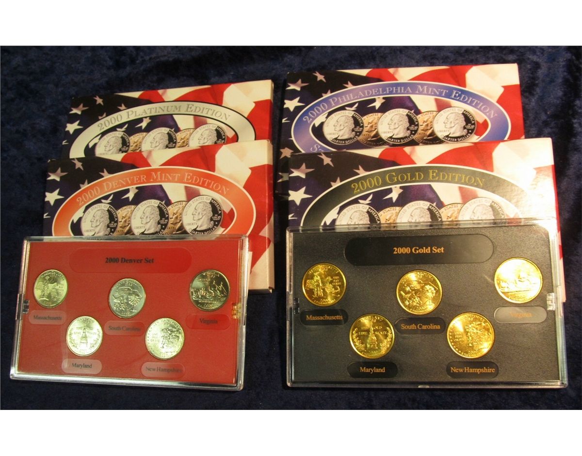 914. 2000 Philadelphia, Denver. Gold & Platinum State Hood Quarter Sets. In Display Cases.