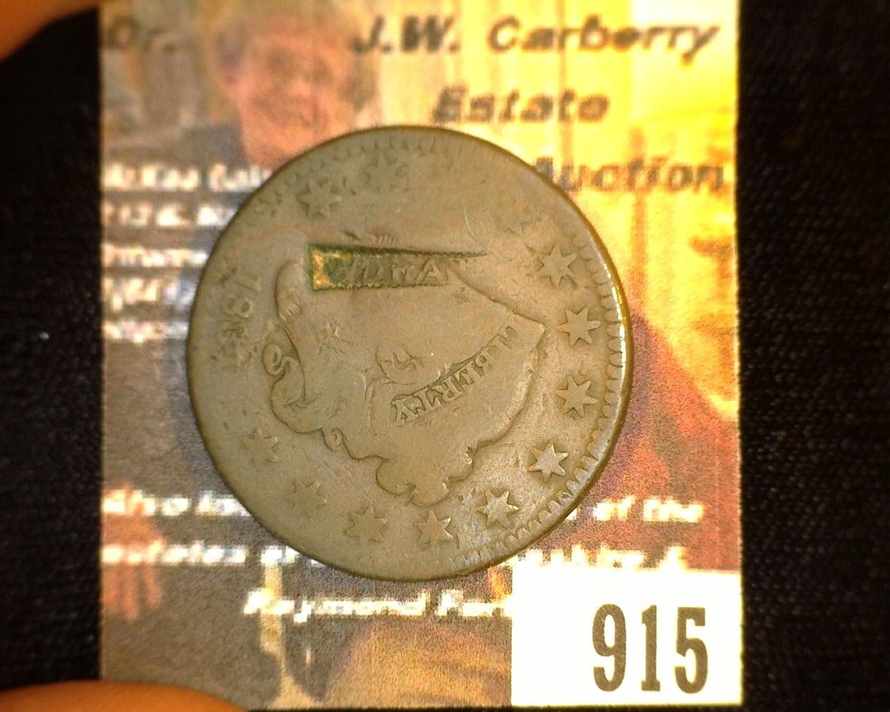 915.1831 US Large Cent Counter marked "W. Drake".