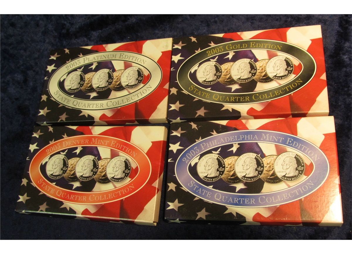 917. 2003 Philadelphia, Denver. Gold & Platinum State Hood Quarter Sets. In Display Cases.