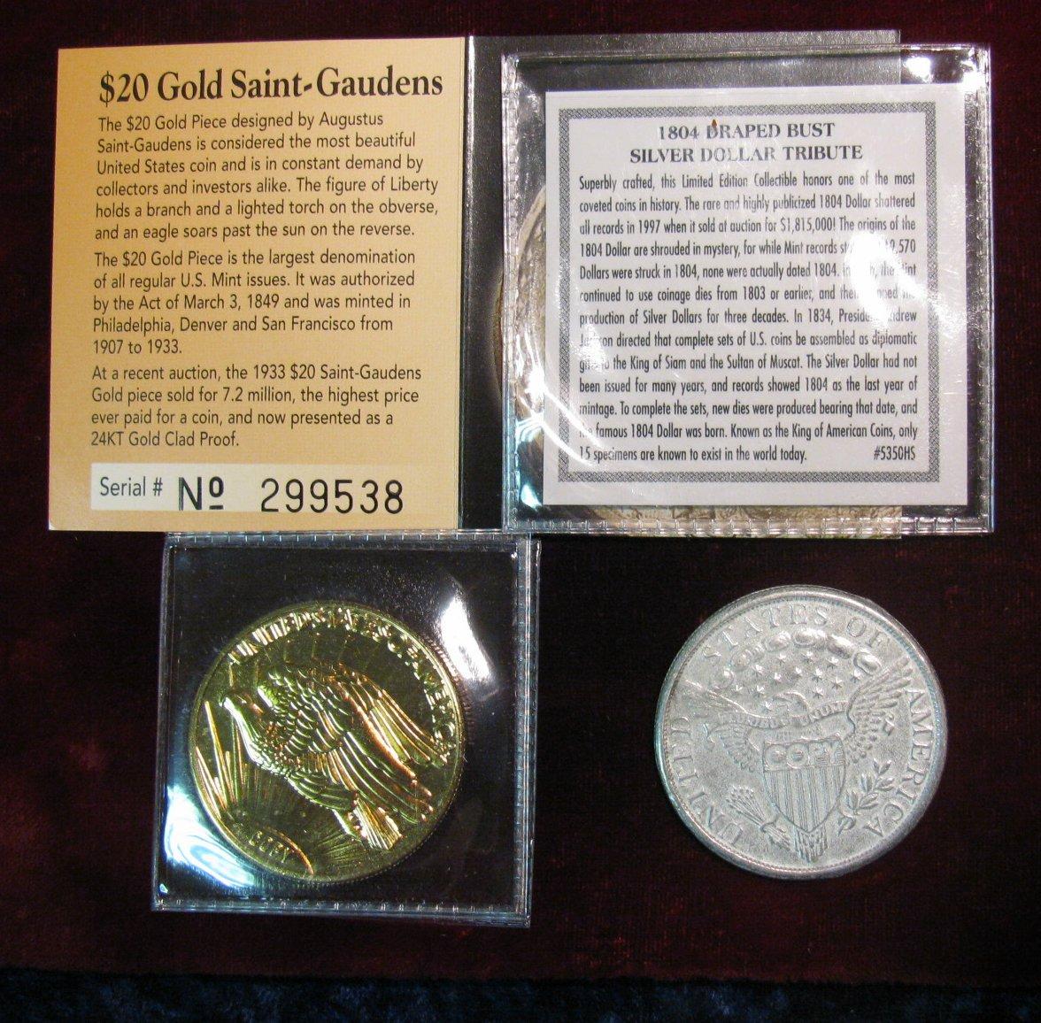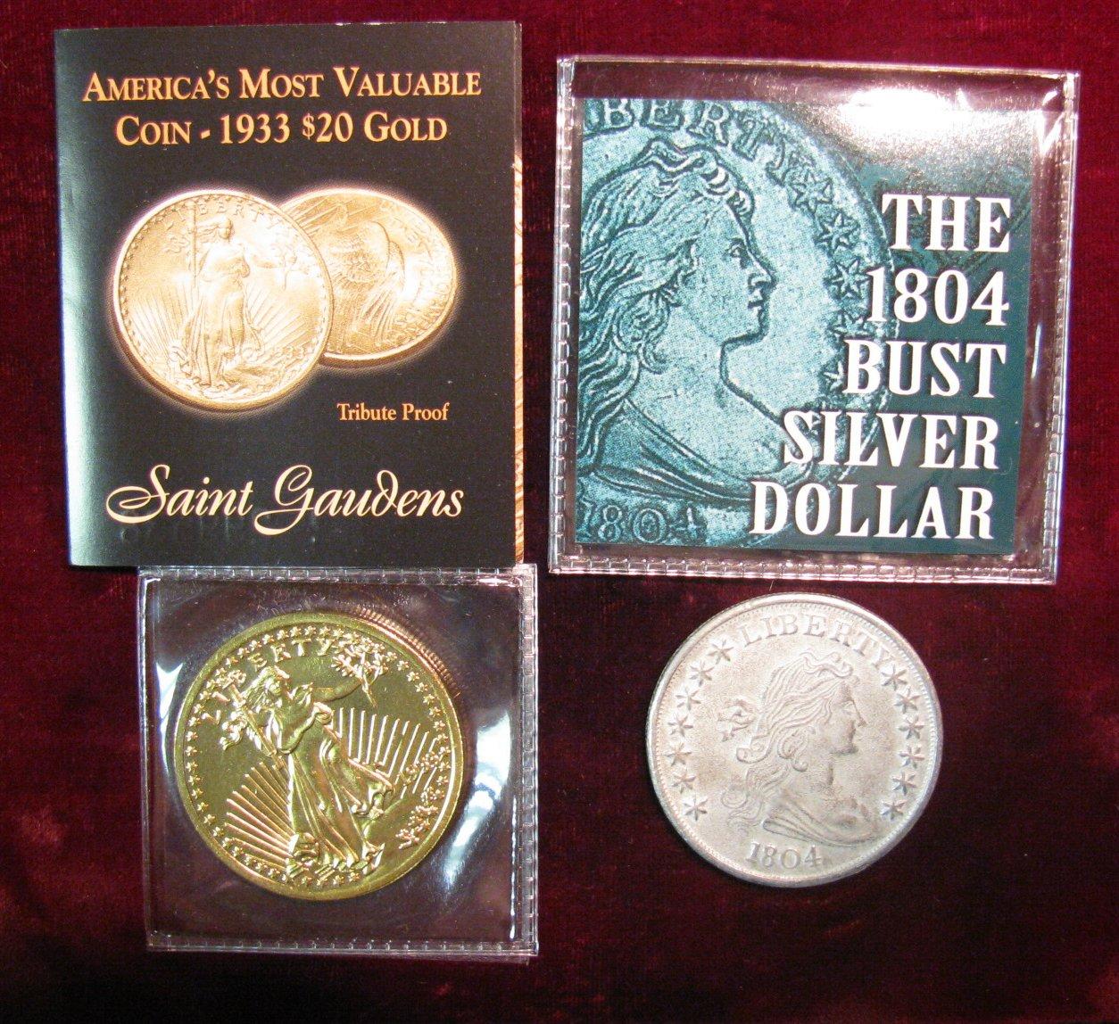 917. Copy 1933 $20 Gold & 1804 Dollar.