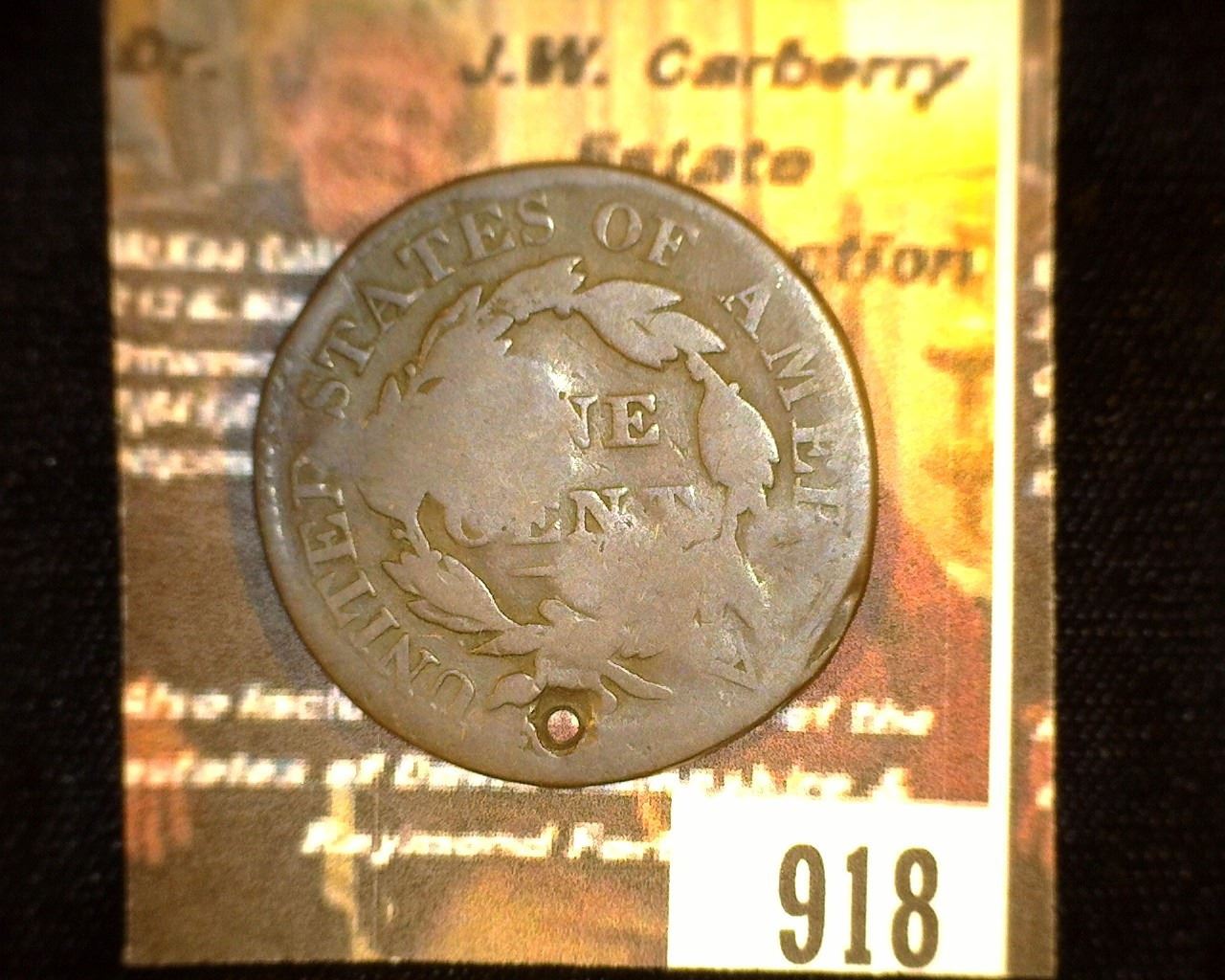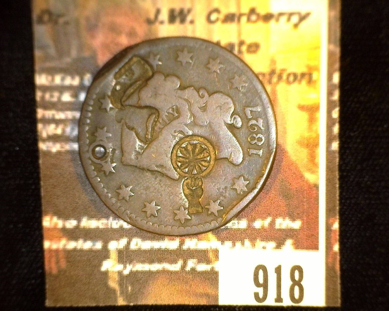 918.1827 US Large Cent Counter marked "Eagel Head, Cap, Hand & Wheel"