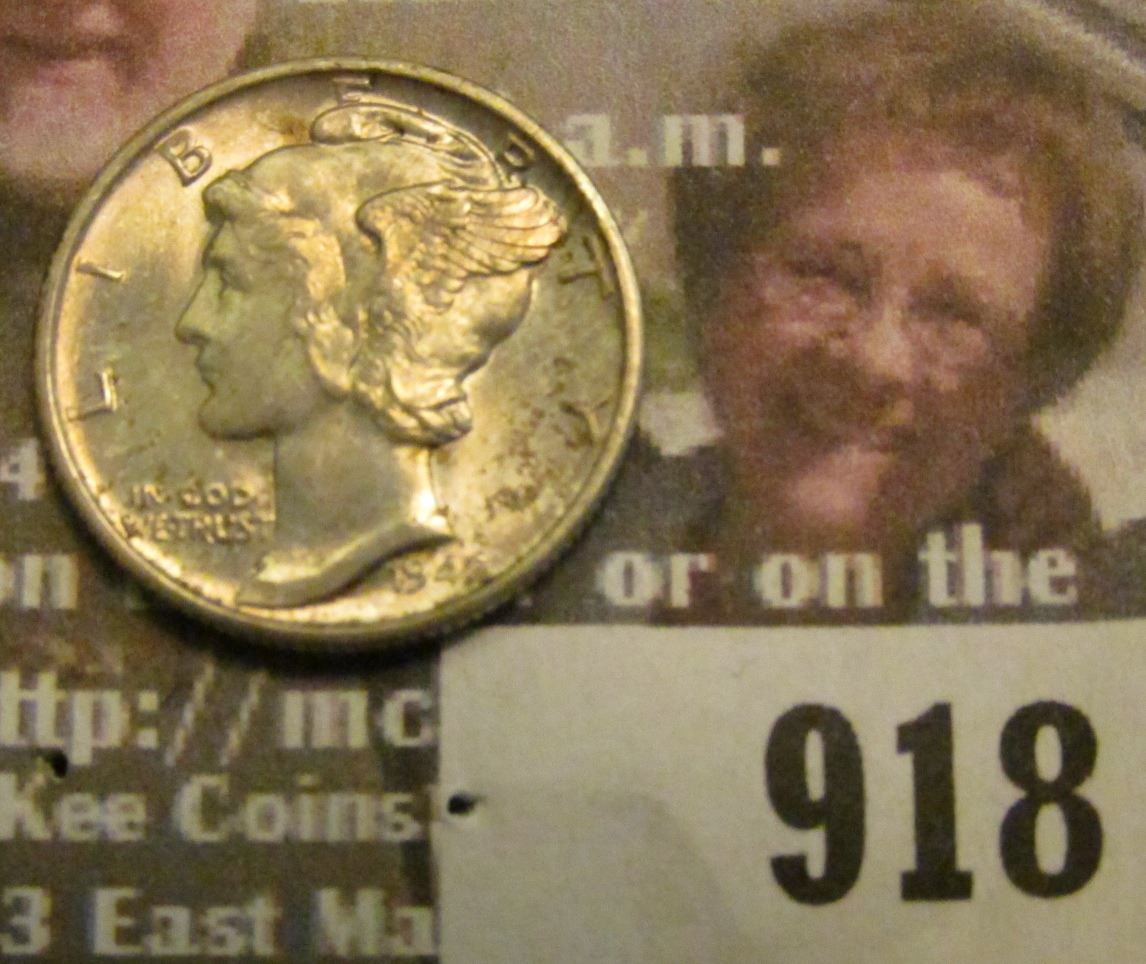 918 _ 1942 S Mercury Dime, Lightly toned GEM BU 65.