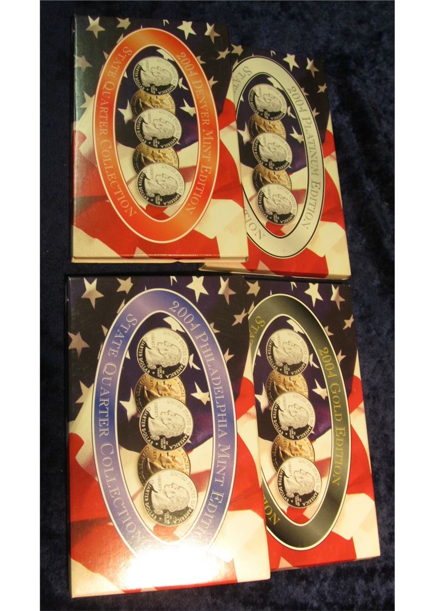 918. 2004 Philadelphia, Denver. Gold & Platinum State Hood Quarter Sets. In Display Cases.