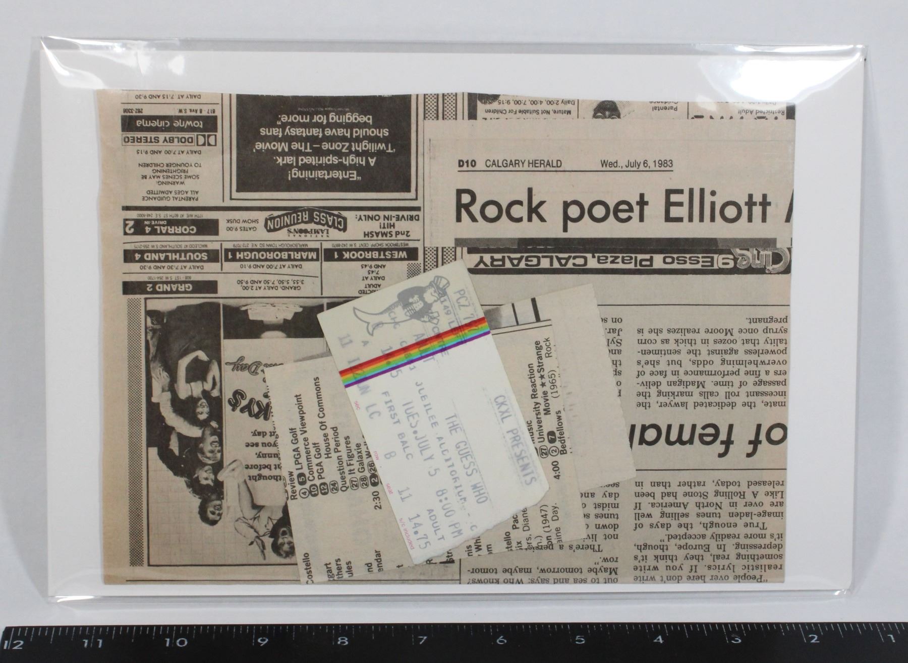 INCLUDES 1983 CALGARY HERALD ALBERTA NEWSPAPER CLIPPINGS 1900'S 20TH CENTURY ROCK MUSIC MEMORABILIA