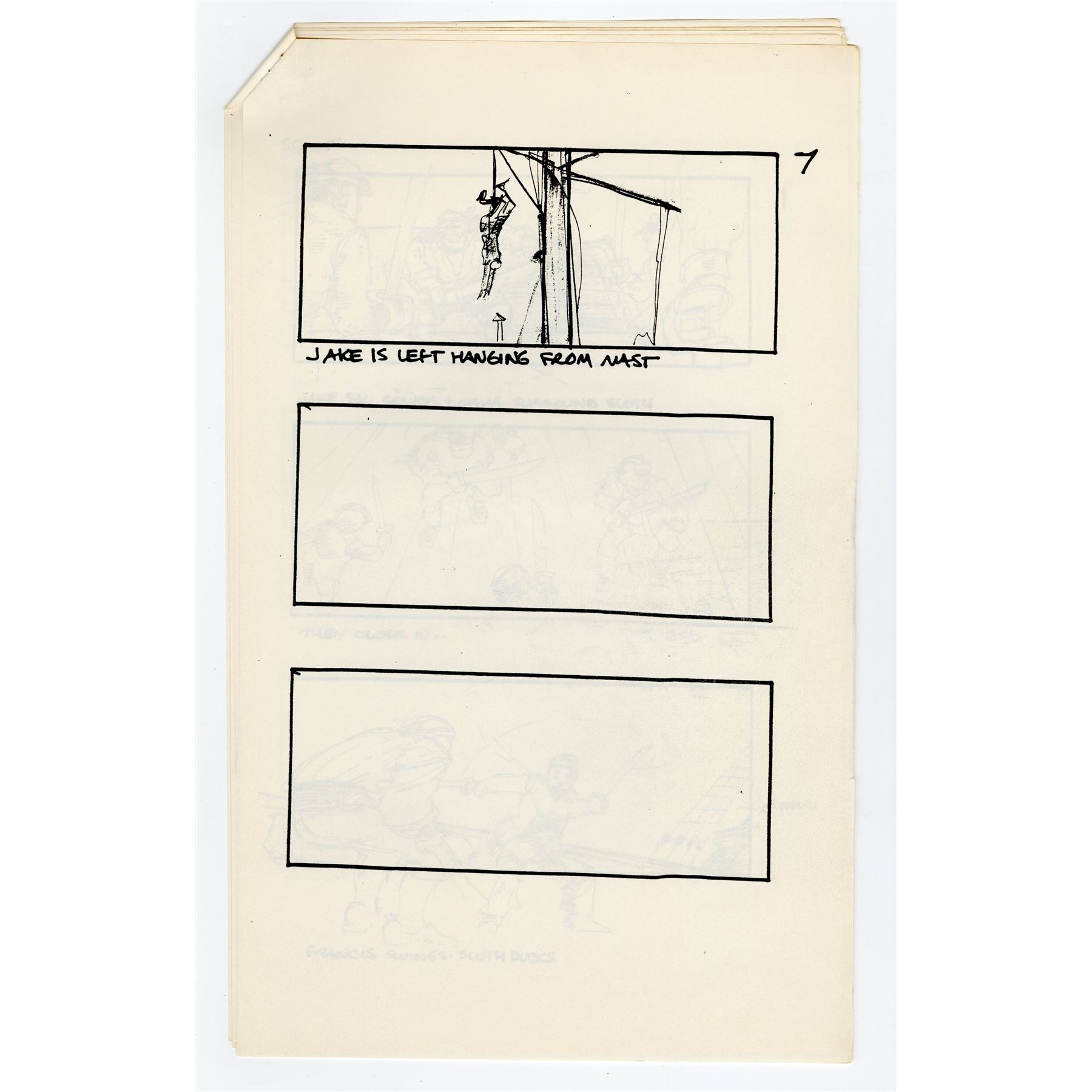 THE GOONIES (1985) - Collection of Printed Jack Johnson Storyboards - A collection of printed Jack Johnson storyboards from Richard Donner's The Goonies. A group of misfit children discovered a map to the long-lost treasure of the legendary local pirate, One-Eyed Willie.