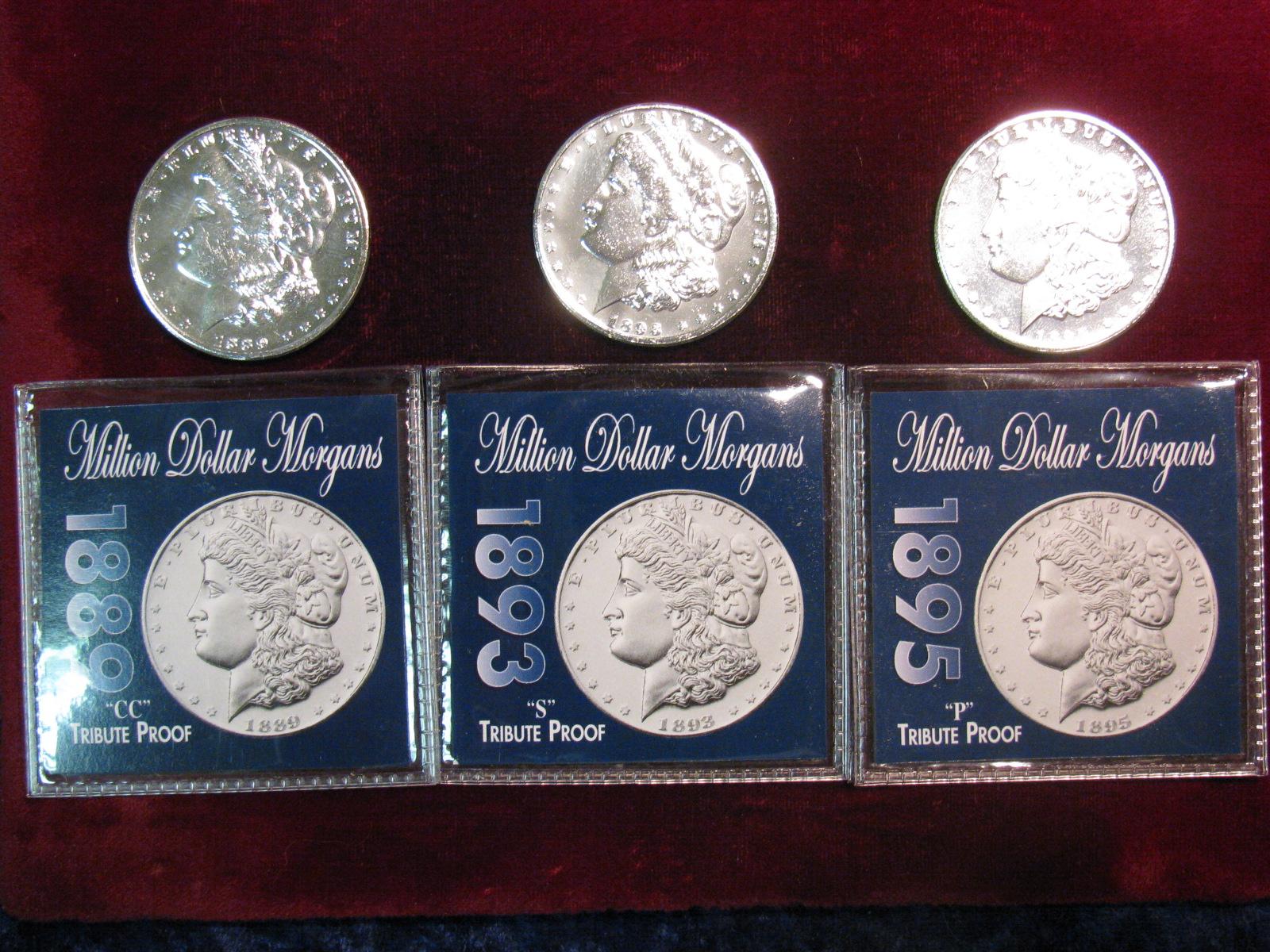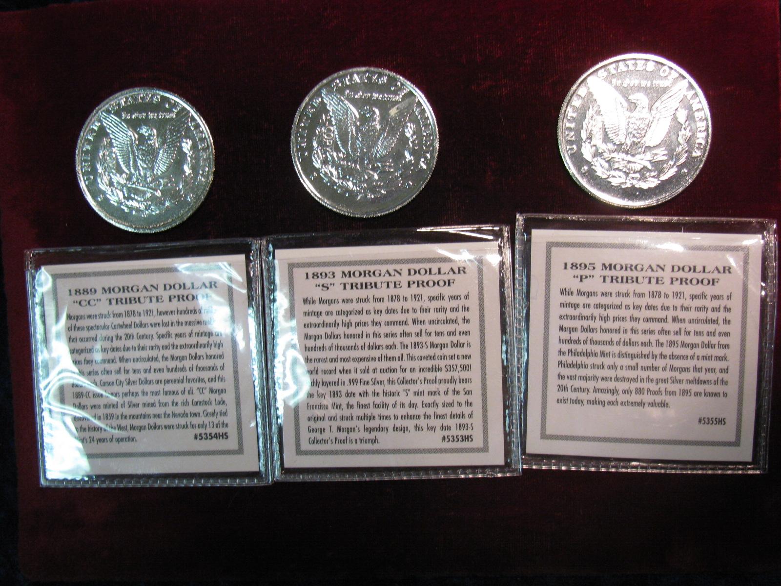 919. Copy 1889CC, 1893S & 1895P Morgan Dollars. Proof Like.