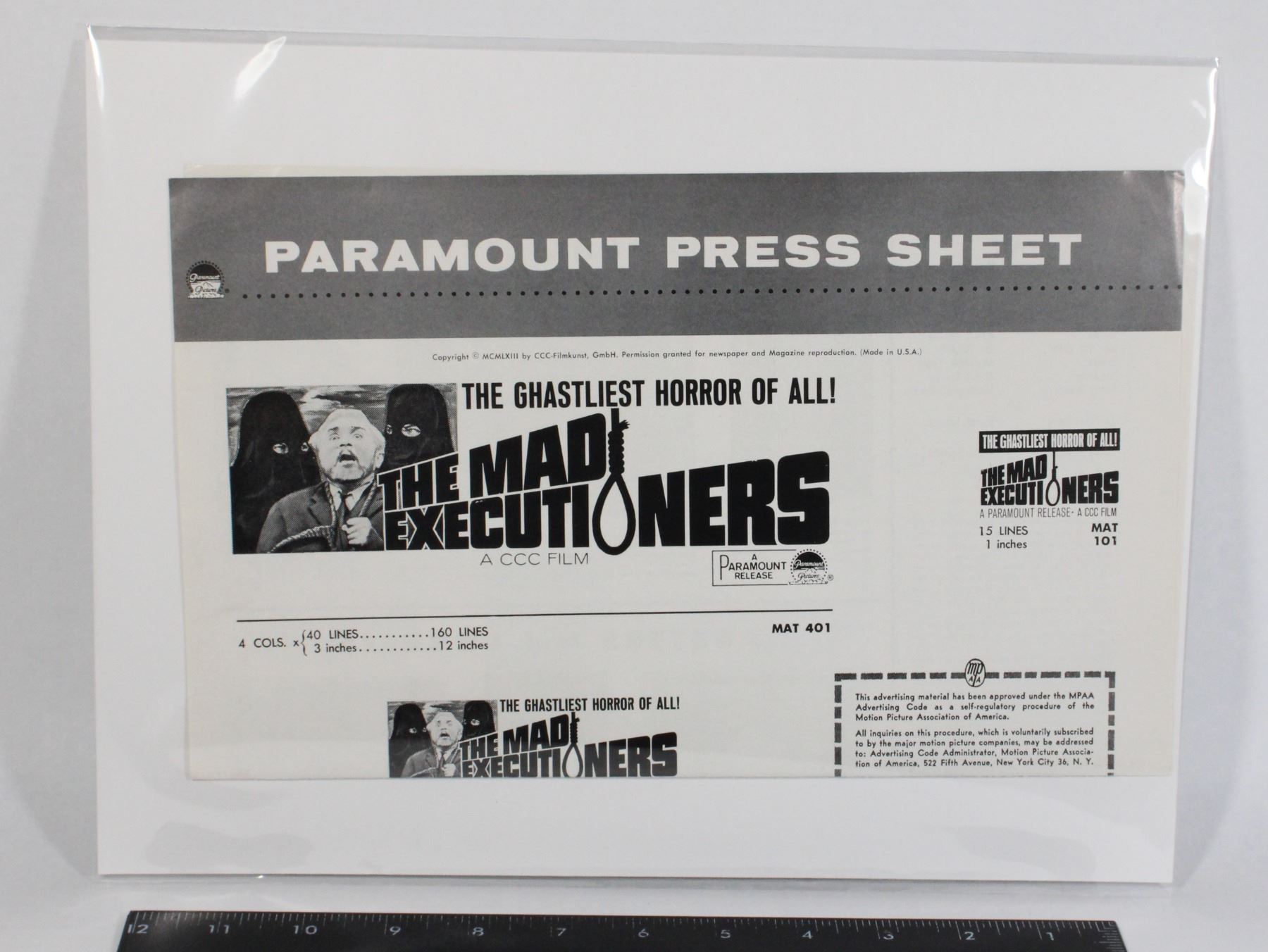 1900'S 20TH CENTURY HORROR PROMOTIONAL POSTER, THE MAD EXECUTIONERS A CCC FILM 1963 PROMOTIONAL POSTER