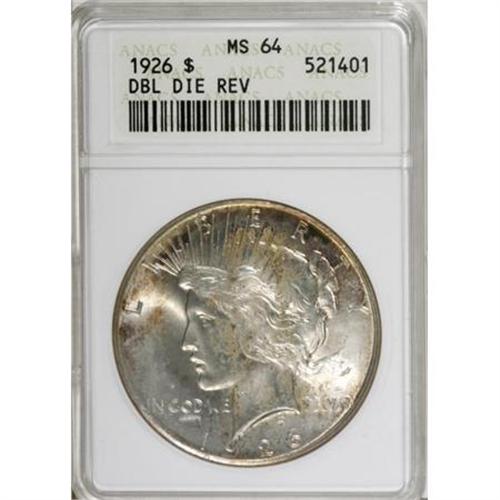 <!-- BEGIN: ICOLLECTOR - EBAY LOT HTML CODE --><style type='text/css'> #icoll_images_thumbnails, #icoll_images_mainimage, #icoll_otherlots { display: none; } div { font-family: arial, verdana, helvetica; } img { border: none; } .icoll_heading_title { background-color: #EFEFFF; color: #000; font-family: arial, verdana, helvetica; font-size: 12pt; font-style: normal; font-weight: bold; } </style><style type='text/css'>@import url(http://www.icollector.com/css/ebay/ebaylot_20070703.css);</style><script language='javascript' type='text/javascript'>function icollfunc_getelement(element_id) { var tmpelement = null; if(document.getElementById) tmpelement = document.getElementById(element_id); if(tmpelement == null) tmpelement = document[element_id]; return tmpelement; }var icollvar_mainpic = null; function icollfunc_initimages() { icollfunc_getelement('mainPicture').style.display = 'none'; icollvar_mainpic = icollfunc_getelement('icoll_images_mainimage'); var body_onload = document.body.attributes['onload']; document.body.setAttribute('onload', (body_onload ? body_onload.nodeValue : '') + 'icollfunc_fixoperaimgbug();'); }function icollfunc_changeimage(imgurl) { if(icollvar_mainpic != null) icollvar_mainpic.src = imgurl; }function icollfunc_fixoperaimgbug() { if(window.opera) { var imgobjs = icollfunc_getelement('icoll_images_thumbnails').getElementsByTagName('img'); for(var i=0; i<imgobjs.length; i++) { var w = imgobjs[i].clientWidth; if(w > 0) imgobjs[i].style.width = w + 'px'; } } }</script><script language='javascript' type='text/javascript'> var useragent = escape(navigator.userAgent); var appname = escape(navigator.appName); var dateobj = new Date(); var datetime = escape(dateobj.getFullYear()+'-'+(dateobj.getMonth()+1)+'-'+dateobj.getDate()+' '+dateobj.getHours()+':'+dateobj.getMinutes()); var referrer = ''; if(document.referrer && document.referrer != null) referrer = escape(document.referrer); new Image().src = 'http://www.icollector.com/stats/ebaylot.ashx?id=7140499&ua='+useragent+'&an='+appname+'&dt='+datetime+'&tz='+dateobj.getTimezoneOffset()+'&re='+referrer;</script><div id='icoll_images'><div id='icoll_images_prev'><a href='http://cgi.liveauctions.ebay.com/ws/eBayISAPI.dll?ViewItem&item=170135059521'><img src='http://www.ha.com/common/proxyImage.php?ebay=445-9010-1-75' alt='' /><img src='http://icollector.com/graphics/ebay_leftarrow.gif' alt='' class='arrow' /></a><div id='icoll_images_prev_info'>Prev Lot</div></div><div id='icoll_images_next'><a href='http://cgi.liveauctions.ebay.com/ws/eBayISAPI.dll?ViewItem&item=170135059535'><img src='http://www.ha.com/common/proxyImage.php?ebay=445-1525-1-75' alt='' /><img src='http://icollector.com/graphics/ebay_rightarrow.gif' alt='' class='arrow' /></a><div id='icoll_images_next_info'>Next Lot</div></div><div id='icoll_images_thumbnails'><a href='http://www.ha.com/common/proxyImage.php?ebay=445-154046-1-75' target='_blank' onmouseover="icollfunc_changeimage('http://www.ha.com/common/proxyImage.php?ebay=445-154046-1-75');"><img src='http://www.ha.com/common/proxyImage.php?ebay=445-154046-1-75' alt='' /></a><a href='http://www.ha.com/common/proxyImage.php?ebay=445-154046-2-75' target='_blank' onmouseover="icollfunc_changeimage('http://www.ha.com/common/proxyImage.php?ebay=445-154046-2-75');"><img src='http://www.ha.com/common/proxyImage.php?ebay=445-154046-2-75' alt='' /></a><div id='icoll_images_thumbnails_info'>Hover thumbnail to view large image below. Click thumbnail to view full image in new window.</div></div><div id='icoll_images_mainimage_container'><img id='icoll_images_mainimage' alt='' src='http://www.ha.com/common/proxyImage.php?ebay=445-154046-1-75'></div></div><script language='javascript' type='text/javascript'>icollfunc_initimages();</script><div id='icoll_description'><B>1926 $1 MS64 ANACS.</B></I> Double Die Reverse. NGC Census: (2366/577). PCGS Population (2655/1168). Mintage: 1,939,000. Numismedia Wsl. Price for NGC/PCGS coin in MS64: $100. (#7367)<BR><BR><B>Coin Engraver:</B> Anthony de Francisci<BR><BR><b>Shipping:</b> Coins & Currency (<a target="_blank" href="http://www.heritageauctions.com/common/shipping.php">view shipping information</a>\)</div><div id='icoll_notices'><div class='icoll_heading_left'></div><div class='icoll_heading'><div class='icoll_heading_title'>Notices</div></div><div class='icoll_heading_right'></div><div id='icoll_notices_info'><B>Important notice:</B> Heritage usually auctions material at the rate of 200-250 lots per hour. On some occasions eBay Live bid software or the Internet may not be able to keep up with the pace of the auction. We recommend placing a realistic absentee bid now as insurance to avoid disappointment. Occasionally the auctioneer may eliminate or reject an eBay Live bid, and the auctioneer may also reopen a lot after the close of the eBay live bidding (usually because we missed an audience bid), and may reject your bid even if it shows you as the winning bidder. By bidding via eBay Live, you agree that Heritage may award the lot to another bidder at its sole discretion under the circumstances described above or any other reasonable circumstances. Since eBay bids are not shown to us until we open the lot on the floor, we treat those bids just like floor bids. In most cases the floor responds before the eBay bid is presented to us, due to Internet lag time, so for consistency we have made it a policy that floor bids are always considered first over tie eBay live bids. Also please note that all Heritage lots purchased through eBay Live carry a 20% Buyer's Premium with a $9 minimum Buyer's Premium. Please make sure you read the Terms and Conditions before you bid. This lot is being auctioned in conjunction with a live floor auction by Heritage Auctions. All final auction and invoice information will be supplied by Heritage Auctions, and all other information should be considered preliminary. <BR><BR><B>Winning Notification and Billing:</B> After the FINAL session in this auctio