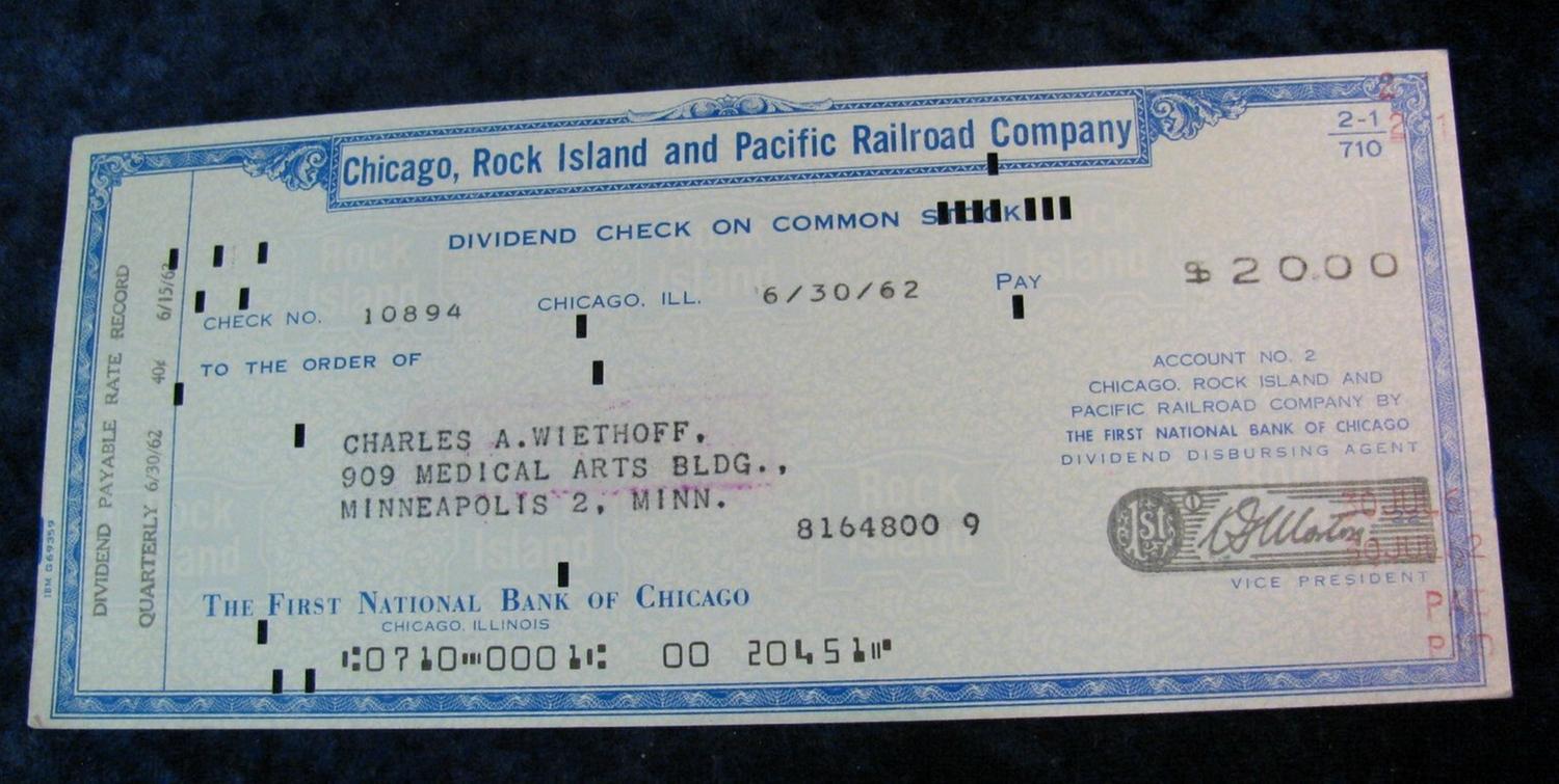 92. 1962 Cancelled Check drawn on the Chicago, Rock Island and Pacific Railroad Company.