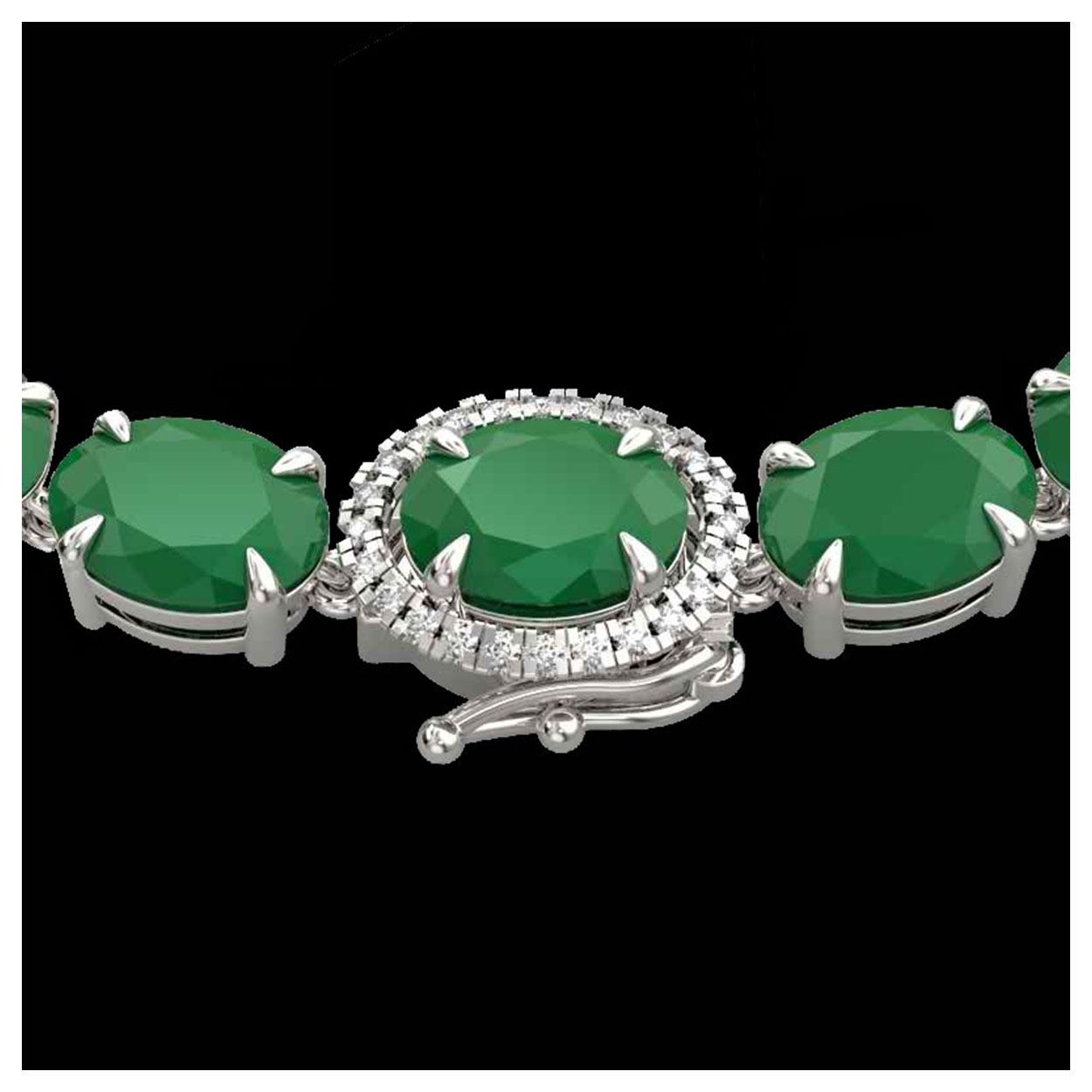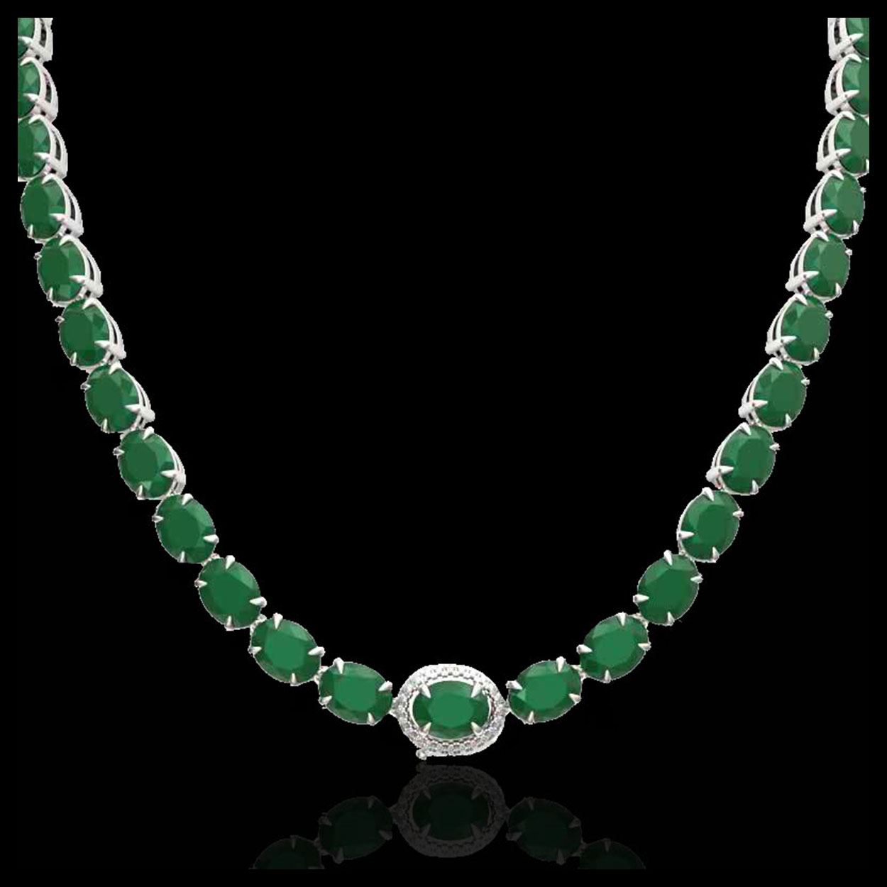 92 ctw Emerald & VS/SI Diamond Necklace 14K White Gold