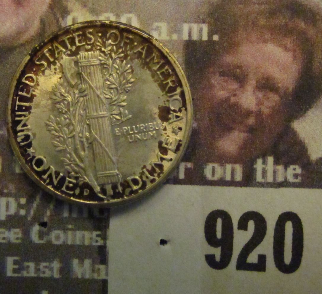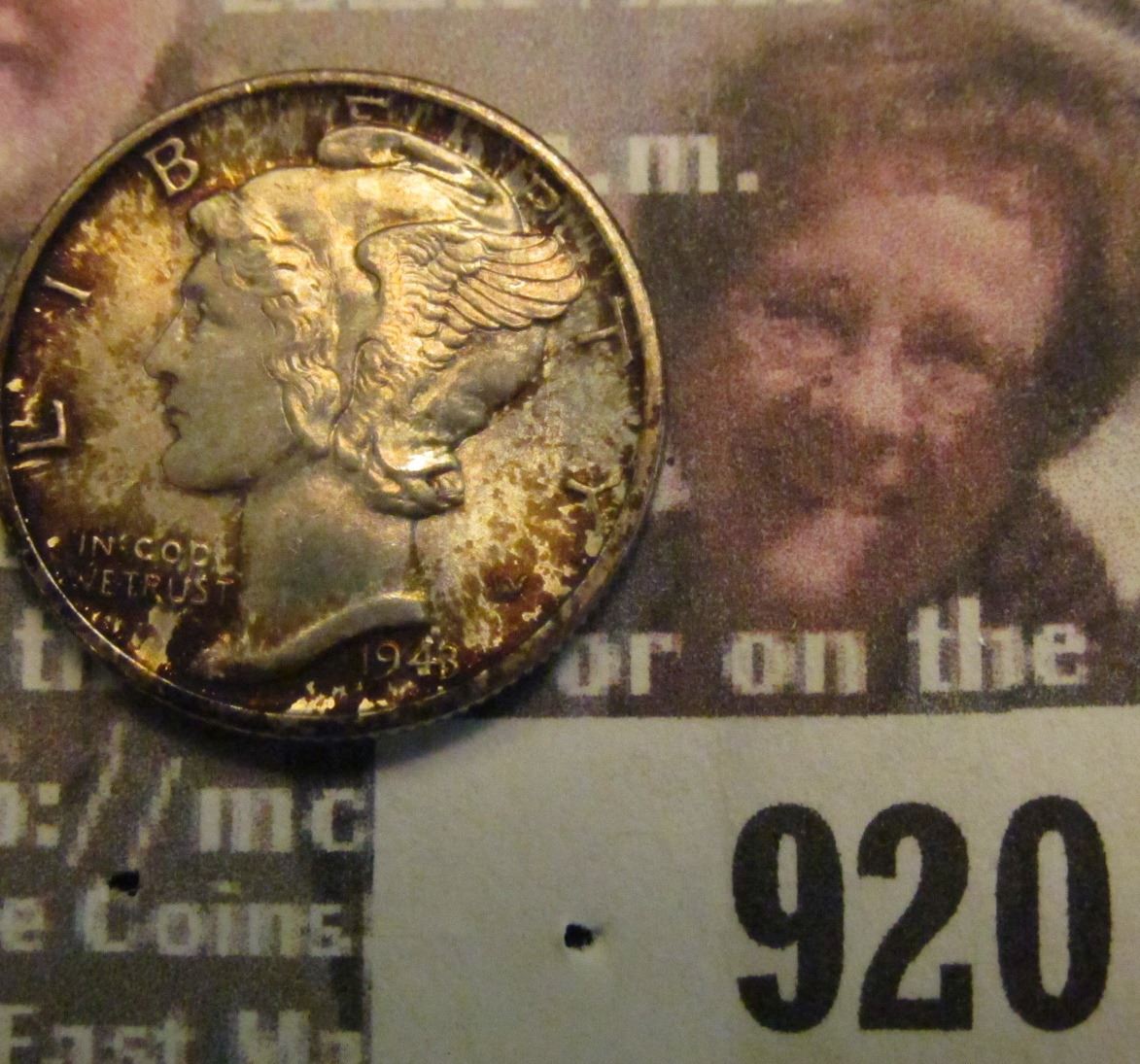 920 _ 1943 P Mercury Dime, attractively toned GEM BU 65. FSB.