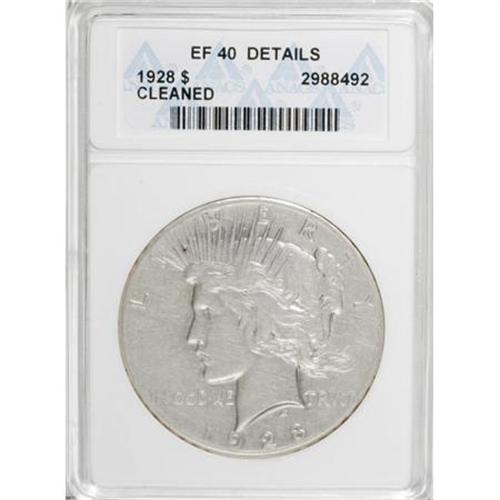 <!-- BEGIN: ICOLLECTOR - EBAY LOT HTML CODE --><style type='text/css'> #icoll_images_thumbnails, #icoll_images_mainimage, #icoll_otherlots { display: none; } div { font-family: arial, verdana, helvetica; } img { border: none; } .icoll_heading_title { background-color: #EFEFFF; color: #000; font-family: arial, verdana, helvetica; font-size: 12pt; font-style: normal; font-weight: bold; } </style><style type='text/css'>@import url(http://www.icollector.com/css/ebay/ebaylot_20070703.css);</style><script language='javascript' type='text/javascript'>function icollfunc_getelement(element_id) { var tmpelement = null; if(document.getElementById) tmpelement = document.getElementById(element_id); if(tmpelement == null) tmpelement = document[element_id]; return tmpelement; }var icollvar_mainpic = null; function icollfunc_initimages() { icollfunc_getelement('mainPicture').style.display = 'none'; icollvar_mainpic = icollfunc_getelement('icoll_images_mainimage'); var body_onload = document.body.attributes['onload']; document.body.setAttribute('onload', (body_onload ? body_onload.nodeValue : '') + 'icollfunc_fixoperaimgbug();'); }function icollfunc_changeimage(imgurl) { if(icollvar_mainpic != null) icollvar_mainpic.src = imgurl; }function icollfunc_fixoperaimgbug() { if(window.opera) { var imgobjs = icollfunc_getelement('icoll_images_thumbnails').getElementsByTagName('img'); for(var i=0; i<imgobjs.length; i++) { var w = imgobjs[i].clientWidth; if(w > 0) imgobjs[i].style.width = w + 'px'; } } }</script><script language='javascript' type='text/javascript'> var useragent = escape(navigator.userAgent); var appname = escape(navigator.appName); var dateobj = new Date(); var datetime = escape(dateobj.getFullYear()+'-'+(dateobj.getMonth()+1)+'-'+dateobj.getDate()+' '+dateobj.getHours()+':'+dateobj.getMinutes()); var referrer = ''; if(document.referrer && document.referrer != null) referrer = escape(document.referrer); new Image().src = 'http://www.icollector.com/stats/ebaylot.ashx?id=7140508&ua='+useragent+'&an='+appname+'&dt='+datetime+'&tz='+dateobj.getTimezoneOffset()+'&re='+referrer;</script><div id='icoll_images'><div id='icoll_images_prev'><a href='http://cgi.liveauctions.ebay.com/ws/eBayISAPI.dll?ViewItem&item=170135059594'><img src='http://www.ha.com/common/proxyImage.php?ebay=445-36007-1-75' alt='' /><img src='http://icollector.com/graphics/ebay_leftarrow.gif' alt='' class='arrow' /></a><div id='icoll_images_prev_info'>Prev Lot</div></div><div id='icoll_images_next'><a href='http://cgi.liveauctions.ebay.com/ws/eBayISAPI.dll?ViewItem&item=170135059624'><img src='http://www.ha.com/common/proxyImage.php?ebay=445-19019-1-75' alt='' /><img src='http://icollector.com/graphics/ebay_rightarrow.gif' alt='' class='arrow' /></a><div id='icoll_images_next_info'>Next Lot</div></div><div id='icoll_images_thumbnails'><a href='http://www.ha.com/common/proxyImage.php?ebay=445-54001-1-75' target='_blank' onmouseover="icollfunc_changeimage('http://www.ha.com/common/proxyImage.php?ebay=445-54001-1-75');"><img src='http://www.ha.com/common/proxyImage.php?ebay=445-54001-1-75' alt='' /></a><a href='http://www.ha.com/common/proxyImage.php?ebay=445-54001-2-75' target='_blank' onmouseover="icollfunc_changeimage('http://www.ha.com/common/proxyImage.php?ebay=445-54001-2-75');"><img src='http://www.ha.com/common/proxyImage.php?ebay=445-54001-2-75' alt='' /></a><div id='icoll_images_thumbnails_info'>Hover thumbnail to view large image below. Click thumbnail to view full image in new window.</div></div><div id='icoll_images_mainimage_container'><img id='icoll_images_mainimage' alt='' src='http://www.ha.com/common/proxyImage.php?ebay=445-54001-1-75'></div></div><script language='javascript' type='text/javascript'>icollfunc_initimages();</script><div id='icoll_description'><B>1928 $1 --Cleaned--ANACS. XF40 Details.</B></I> NGC Census: (7/3635). PCGS Population (28/5570). Mintage: 360,649. Numismedia Wsl. Price for NGC/PCGS coin in XF40: $383. (#7373)<BR><BR><B>Coin Engraver:</B> Anthony de Francisci<BR><BR><b>Shipping:</b> Coins & Currency (<a target="_blank" href="http://www.heritageauctions.com/common/shipping.php">view shipping information</a>\)</div><div id='icoll_notices'><div class='icoll_heading_left'></div><div class='icoll_heading'><div class='icoll_heading_title'>Notices</div></div><div class='icoll_heading_right'></div><div id='icoll_notices_info'><B>Important notice:</B> Heritage usually auctions material at the rate of 200-250 lots per hour. On some occasions eBay Live bid software or the Internet may not be able to keep up with the pace of the auction. We recommend placing a realistic absentee bid now as insurance to avoid disappointment. Occasionally the auctioneer may eliminate or reject an eBay Live bid, and the auctioneer may also reopen a lot after the close of the eBay live bidding (usually because we missed an audience bid), and may reject your bid even if it shows you as the winning bidder. By bidding via eBay Live, you agree that Heritage may award the lot to another bidder at its sole discretion under the circumstances described above or any other reasonable circumstances. Since eBay bids are not shown to us until we open the lot on the floor, we treat those bids just like floor bids. In most cases the floor responds before the eBay bid is presented to us, due to Internet lag time, so for consistency we have made it a policy that floor bids are always considered first over tie eBay live bids. Also please note that all Heritage lots purchased through eBay Live carry a 20% Buyer's Premium with a $9 minimum Buyer's Premium. Please make sure you read the Terms and Conditions before you bid. This lot is being auctioned in conjunction with a live floor auction by Heritage Auctions. All final auction and invoice information will be supplied by Heritage Auctions, and all other information should be considered preliminary. <BR><BR><B>Winning Notification and Billing:</B> After the FINAL session in this auction is comple