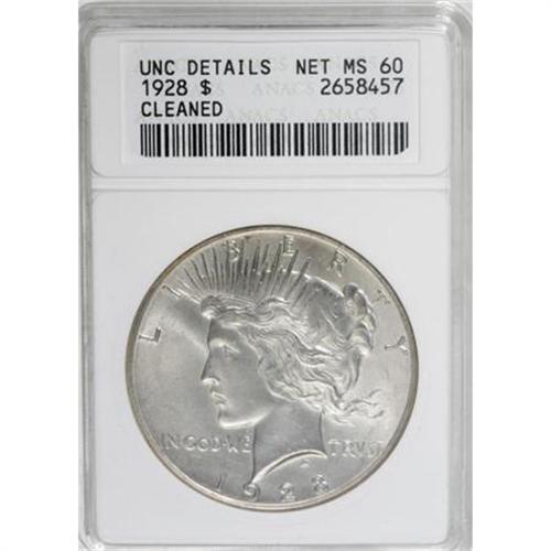 <!-- BEGIN: ICOLLECTOR - EBAY LOT HTML CODE --><style type='text/css'> #icoll_images_thumbnails, #icoll_images_mainimage, #icoll_otherlots { display: none; } div { font-family: arial, verdana, helvetica; } img { border: none; } .icoll_heading_title { background-color: #EFEFFF; color: #000; font-family: arial, verdana, helvetica; font-size: 12pt; font-style: normal; font-weight: bold; } </style><style type='text/css'>@import url(http://www.icollector.com/css/ebay/ebaylot_20070703.css);</style><script language='javascript' type='text/javascript'>function icollfunc_getelement(element_id) { var tmpelement = null; if(document.getElementById) tmpelement = document.getElementById(element_id); if(tmpelement == null) tmpelement = document[element_id]; return tmpelement; }var icollvar_mainpic = null; function icollfunc_initimages() { icollfunc_getelement('mainPicture').style.display = 'none'; icollvar_mainpic = icollfunc_getelement('icoll_images_mainimage'); var body_onload = document.body.attributes['onload']; document.body.setAttribute('onload', (body_onload ? body_onload.nodeValue : '') + 'icollfunc_fixoperaimgbug();'); }function icollfunc_changeimage(imgurl) { if(icollvar_mainpic != null) icollvar_mainpic.src = imgurl; }function icollfunc_fixoperaimgbug() { if(window.opera) { var imgobjs = icollfunc_getelement('icoll_images_thumbnails').getElementsByTagName('img'); for(var i=0; i<imgobjs.length; i++) { var w = imgobjs[i].clientWidth; if(w > 0) imgobjs[i].style.width = w + 'px'; } } }</script><script language='javascript' type='text/javascript'> var useragent = escape(navigator.userAgent); var appname = escape(navigator.appName); var dateobj = new Date(); var datetime = escape(dateobj.getFullYear()+'-'+(dateobj.getMonth()+1)+'-'+dateobj.getDate()+' '+dateobj.getHours()+':'+dateobj.getMinutes()); var referrer = ''; if(document.referrer && document.referrer != null) referrer = escape(document.referrer); new Image().src = 'http://www.icollector.com/stats/ebaylot.ashx?id=7140512&ua='+useragent+'&an='+appname+'&dt='+datetime+'&tz='+dateobj.getTimezoneOffset()+'&re='+referrer;</script><div id='icoll_images'><div id='icoll_images_prev'><a href='http://cgi.liveauctions.ebay.com/ws/eBayISAPI.dll?ViewItem&item=170135059637'><img src='http://www.ha.com/common/proxyImage.php?ebay=445-120021-1-75' alt='' /><img src='http://icollector.com/graphics/ebay_leftarrow.gif' alt='' class='arrow' /></a><div id='icoll_images_prev_info'>Prev Lot</div></div><div id='icoll_images_next'><a href='http://cgi.liveauctions.ebay.com/ws/eBayISAPI.dll?ViewItem&item=170135059656'><img src='http://www.ha.com/common/proxyImage.php?ebay=445-40014-1-75' alt='' /><img src='http://icollector.com/graphics/ebay_rightarrow.gif' alt='' class='arrow' /></a><div id='icoll_images_next_info'>Next Lot</div></div><div id='icoll_images_thumbnails'><a href='http://www.ha.com/common/proxyImage.php?ebay=445-17164-1-75' target='_blank' onmouseover="icollfunc_changeimage('http://www.ha.com/common/proxyImage.php?ebay=445-17164-1-75');"><img src='http://www.ha.com/common/proxyImage.php?ebay=445-17164-1-75' alt='' /></a><a href='http://www.ha.com/common/proxyImage.php?ebay=445-17164-2-75' target='_blank' onmouseover="icollfunc_changeimage('http://www.ha.com/common/proxyImage.php?ebay=445-17164-2-75');"><img src='http://www.ha.com/common/proxyImage.php?ebay=445-17164-2-75' alt='' /></a><div id='icoll_images_thumbnails_info'>Hover thumbnail to view large image below. Click thumbnail to view full image in new window.</div></div><div id='icoll_images_mainimage_container'><img id='icoll_images_mainimage' alt='' src='http://www.ha.com/common/proxyImage.php?ebay=445-17164-1-75'></div></div><script language='javascript' type='text/javascript'>icollfunc_initimages();</script><div id='icoll_description'><B>1928 $1 --Cleaned--ANACS. UNC Details Net MS60.</B></I> NGC Census: (52/2990). PCGS Population (76/4483). Mintage: 360,649. Numismedia Wsl. Price for NGC/PCGS coin in MS60: $460. (#7373)<BR><BR><B>Coin Engraver:</B> Anthony de Francisci<BR><BR><b>Shipping:</b> Coins & Currency (<a target="_blank" href="http://www.heritageauctions.com/common/shipping.php">view shipping information</a>\)</div><div id='icoll_notices'><div class='icoll_heading_left'></div><div class='icoll_heading'><div class='icoll_heading_title'>Notices</div></div><div class='icoll_heading_right'></div><div id='icoll_notices_info'><B>Important notice:</B> Heritage usually auctions material at the rate of 200-250 lots per hour. On some occasions eBay Live bid software or the Internet may not be able to keep up with the pace of the auction. We recommend placing a realistic absentee bid now as insurance to avoid disappointment. Occasionally the auctioneer may eliminate or reject an eBay Live bid, and the auctioneer may also reopen a lot after the close of the eBay live bidding (usually because we missed an audience bid), and may reject your bid even if it shows you as the winning bidder. By bidding via eBay Live, you agree that Heritage may award the lot to another bidder at its sole discretion under the circumstances described above or any other reasonable circumstances. Since eBay bids are not shown to us until we open the lot on the floor, we treat those bids just like floor bids. In most cases the floor responds before the eBay bid is presented to us, due to Internet lag time, so for consistency we have made it a policy that floor bids are always considered first over tie eBay live bids. Also please note that all Heritage lots purchased through eBay Live carry a 20% Buyer's Premium with a $9 minimum Buyer's Premium. Please make sure you read the Terms and Conditions before you bid. This lot is being auctioned in conjunction with a live floor auction by Heritage Auctions. All final auction and invoice information will be supplied by Heritage Auctions, and all other information should be considered preliminary. <BR><BR><B>Winning Notification and Billing:</B> After the FINAL session in this auction