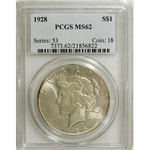 <!-- BEGIN: ICOLLECTOR - EBAY LOT HTML CODE --><style type='text/css'> #icoll_images_thumbnails, #icoll_images_mainimage, #icoll_otherlots { display: none; } div { font-family: arial, verdana, helvetica; } img { border: none; } .icoll_heading_title { background-color: #EFEFFF; color: #000; font-family: arial, verdana, helvetica; font-size: 12pt; font-style: normal; font-weight: bold; } </style><style type='text/css'>@import url(http://www.icollector.com/css/ebay/ebaylot_20070703.css);</style><script language='javascript' type='text/javascript'>function icollfunc_getelement(element_id) { var tmpelement = null; if(document.getElementById) tmpelement = document.getElementById(element_id); if(tmpelement == null) tmpelement = document[element_id]; return tmpelement; }var icollvar_mainpic = null; function icollfunc_initimages() { icollfunc_getelement('mainPicture').style.display = 'none'; icollvar_mainpic = icollfunc_getelement('icoll_images_mainimage'); var body_onload = document.body.attributes['onload']; document.body.setAttribute('onload', (body_onload ? body_onload.nodeValue : '') + 'icollfunc_fixoperaimgbug();'); }function icollfunc_changeimage(imgurl) { if(icollvar_mainpic != null) icollvar_mainpic.src = imgurl; }function icollfunc_fixoperaimgbug() { if(window.opera) { var imgobjs = icollfunc_getelement('icoll_images_thumbnails').getElementsByTagName('img'); for(var i=0; i<imgobjs.length; i++) { var w = imgobjs[i].clientWidth; if(w > 0) imgobjs[i].style.width = w + 'px'; } } }</script><script language='javascript' type='text/javascript'> var useragent = escape(navigator.userAgent); var appname = escape(navigator.appName); var dateobj = new Date(); var datetime = escape(dateobj.getFullYear()+'-'+(dateobj.getMonth()+1)+'-'+dateobj.getDate()+' '+dateobj.getHours()+':'+dateobj.getMinutes()); var referrer = ''; if(document.referrer && document.referrer != null) referrer = escape(document.referrer); new Image().src = 'http://www.icollector.com/stats/ebaylot.ashx?id=7140514&ua='+useragent+'&an='+appname+'&dt='+datetime+'&tz='+dateobj.getTimezoneOffset()+'&re='+referrer;</script><div id='icoll_images'><div id='icoll_images_prev'><a href='http://cgi.liveauctions.ebay.com/ws/eBayISAPI.dll?ViewItem&item=170135059656'><img src='http://www.ha.com/common/proxyImage.php?ebay=445-40014-1-75' alt='' /><img src='http://icollector.com/graphics/ebay_leftarrow.gif' alt='' class='arrow' /></a><div id='icoll_images_prev_info'>Prev Lot</div></div><div id='icoll_images_next'><a href='http://cgi.liveauctions.ebay.com/ws/eBayISAPI.dll?ViewItem&item=170135059666'><img src='http://www.ha.com/common/proxyImage.php?ebay=445-189001-1-75' alt='' /><img src='http://icollector.com/graphics/ebay_rightarrow.gif' alt='' class='arrow' /></a><div id='icoll_images_next_info'>Next Lot</div></div><div id='icoll_images_thumbnails'><a href='http://www.ha.com/common/proxyImage.php?ebay=445-115004-1-75' target='_blank' onmouseover="icollfunc_changeimage('http://www.ha.com/common/proxyImage.php?ebay=445-115004-1-75');"><img src='http://www.ha.com/common/proxyImage.php?ebay=445-115004-1-75' alt='' /></a><a href='http://www.ha.com/common/proxyImage.php?ebay=445-115004-2-75' target='_blank' onmouseover="icollfunc_changeimage('http://www.ha.com/common/proxyImage.php?ebay=445-115004-2-75');"><img src='http://www.ha.com/common/proxyImage.php?ebay=445-115004-2-75' alt='' /></a><div id='icoll_images_thumbnails_info'>Hover thumbnail to view large image below. Click thumbnail to view full image in new window.</div></div><div id='icoll_images_mainimage_container'><img id='icoll_images_mainimage' alt='' src='http://www.ha.com/common/proxyImage.php?ebay=445-115004-1-75'></div></div><script language='javascript' type='text/javascript'>icollfunc_initimages();</script><div id='icoll_description'><B>1928 $1 MS62 PCGS.</B></I> PCGS Population (1070/3317). NGC Census: (811/1935). Mintage: 360,649. Numismedia Wsl. Price for NGC/PCGS coin in MS62: $492. (#7373)<BR><BR><B>Coin Engraver:</B> Anthony de Francisci<BR><BR><b>Shipping:</b> Coins & Currency (<a target="_blank" href="http://www.heritageauctions.com/common/shipping.php">view shipping information</a>\)</div><div id='icoll_notices'><div class='icoll_heading_left'></div><div class='icoll_heading'><div class='icoll_heading_title'>Notices</div></div><div class='icoll_heading_right'></div><div id='icoll_notices_info'><B>Important notice:</B> Heritage usually auctions material at the rate of 200-250 lots per hour. On some occasions eBay Live bid software or the Internet may not be able to keep up with the pace of the auction. We recommend placing a realistic absentee bid now as insurance to avoid disappointment. Occasionally the auctioneer may eliminate or reject an eBay Live bid, and the auctioneer may also reopen a lot after the close of the eBay live bidding (usually because we missed an audience bid), and may reject your bid even if it shows you as the winning bidder. By bidding via eBay Live, you agree that Heritage may award the lot to another bidder at its sole discretion under the circumstances described above or any other reasonable circumstances. Since eBay bids are not shown to us until we open the lot on the floor, we treat those bids just like floor bids. In most cases the floor responds before the eBay bid is presented to us, due to Internet lag time, so for consistency we have made it a policy that floor bids are always considered first over tie eBay live bids. Also please note that all Heritage lots purchased through eBay Live carry a 20% Buyer's Premium with a $9 minimum Buyer's Premium. Please make sure you read the Terms and Conditions before you bid. This lot is being auctioned in conjunction with a live floor auction by Heritage Auctions. All final auction and invoice information will be supplied by Heritage Auctions, and all other information should be considered preliminary. <BR><BR><B>Winning Notification and Billing:</B> After the FINAL session in this auction is complete, Herit