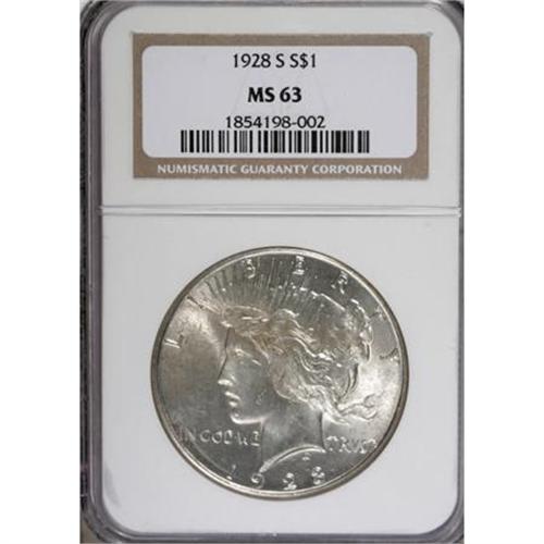<!-- BEGIN: ICOLLECTOR - EBAY LOT HTML CODE --><style type='text/css'> #icoll_images_thumbnails, #icoll_images_mainimage, #icoll_otherlots { display: none; } div { font-family: arial, verdana, helvetica; } img { border: none; } .icoll_heading_title { background-color: #EFEFFF; color: #000; font-family: arial, verdana, helvetica; font-size: 12pt; font-style: normal; font-weight: bold; } </style><style type='text/css'>@import url(http://www.icollector.com/css/ebay/ebaylot_20070703.css);</style><script language='javascript' type='text/javascript'>function icollfunc_getelement(element_id) { var tmpelement = null; if(document.getElementById) tmpelement = document.getElementById(element_id); if(tmpelement == null) tmpelement = document[element_id]; return tmpelement; }var icollvar_mainpic = null; function icollfunc_initimages() { icollfunc_getelement('mainPicture').style.display = 'none'; icollvar_mainpic = icollfunc_getelement('icoll_images_mainimage'); var body_onload = document.body.attributes['onload']; document.body.setAttribute('onload', (body_onload ? body_onload.nodeValue : '') + 'icollfunc_fixoperaimgbug();'); }function icollfunc_changeimage(imgurl) { if(icollvar_mainpic != null) icollvar_mainpic.src = imgurl; }function icollfunc_fixoperaimgbug() { if(window.opera) { var imgobjs = icollfunc_getelement('icoll_images_thumbnails').getElementsByTagName('img'); for(var i=0; i<imgobjs.length; i++) { var w = imgobjs[i].clientWidth; if(w > 0) imgobjs[i].style.width = w + 'px'; } } }</script><script language='javascript' type='text/javascript'> var useragent = escape(navigator.userAgent); var appname = escape(navigator.appName); var dateobj = new Date(); var datetime = escape(dateobj.getFullYear()+'-'+(dateobj.getMonth()+1)+'-'+dateobj.getDate()+' '+dateobj.getHours()+':'+dateobj.getMinutes()); var referrer = ''; if(document.referrer && document.referrer != null) referrer = escape(document.referrer); new Image().src = 'http://www.icollector.com/stats/ebaylot.ashx?id=7140517&ua='+useragent+'&an='+appname+'&dt='+datetime+'&tz='+dateobj.getTimezoneOffset()+'&re='+referrer;</script><div id='icoll_images'><div id='icoll_images_prev'><a href='http://cgi.liveauctions.ebay.com/ws/eBayISAPI.dll?ViewItem&item=170135059670'><img src='http://www.ha.com/common/proxyImage.php?ebay=445-22010-1-75' alt='' /><img src='http://icollector.com/graphics/ebay_leftarrow.gif' alt='' class='arrow' /></a><div id='icoll_images_prev_info'>Prev Lot</div></div><div id='icoll_images_next'><a href='http://cgi.liveauctions.ebay.com/ws/eBayISAPI.dll?ViewItem&item=170135059695'><img src='http://www.ha.com/common/proxyImage.php?ebay=445-190002-1-75' alt='' /><img src='http://icollector.com/graphics/ebay_rightarrow.gif' alt='' class='arrow' /></a><div id='icoll_images_next_info'>Next Lot</div></div><div id='icoll_images_thumbnails'><a href='http://www.ha.com/common/proxyImage.php?ebay=445-34005-1-75' target='_blank' onmouseover="icollfunc_changeimage('http://www.ha.com/common/proxyImage.php?ebay=445-34005-1-75');"><img src='http://www.ha.com/common/proxyImage.php?ebay=445-34005-1-75' alt='' /></a><a href='http://www.ha.com/common/proxyImage.php?ebay=445-34005-2-75' target='_blank' onmouseover="icollfunc_changeimage('http://www.ha.com/common/proxyImage.php?ebay=445-34005-2-75');"><img src='http://www.ha.com/common/proxyImage.php?ebay=445-34005-2-75' alt='' /></a><div id='icoll_images_thumbnails_info'>Hover thumbnail to view large image below. Click thumbnail to view full image in new window.</div></div><div id='icoll_images_mainimage_container'><img id='icoll_images_mainimage' alt='' src='http://www.ha.com/common/proxyImage.php?ebay=445-34005-1-75'></div></div><script language='javascript' type='text/javascript'>icollfunc_initimages();</script><div id='icoll_description'><B>1928-S $1 MS63 NGC.</B></I> NGC Census: (1103/1126). PCGS Population (1444/1350). Mintage: 1,632,000. Numismedia Wsl. Price for NGC/PCGS coin in MS63: $480. (#7374)<BR><BR><B>Coin Engraver:</B> Anthony de Francisci<BR><BR><b>Shipping:</b> Coins & Currency (<a target="_blank" href="http://www.heritageauctions.com/common/shipping.php">view shipping information</a>\)</div><div id='icoll_notices'><div class='icoll_heading_left'></div><div class='icoll_heading'><div class='icoll_heading_title'>Notices</div></div><div class='icoll_heading_right'></div><div id='icoll_notices_info'><B>Important notice:</B> Heritage usually auctions material at the rate of 200-250 lots per hour. On some occasions eBay Live bid software or the Internet may not be able to keep up with the pace of the auction. We recommend placing a realistic absentee bid now as insurance to avoid disappointment. Occasionally the auctioneer may eliminate or reject an eBay Live bid, and the auctioneer may also reopen a lot after the close of the eBay live bidding (usually because we missed an audience bid), and may reject your bid even if it shows you as the winning bidder. By bidding via eBay Live, you agree that Heritage may award the lot to another bidder at its sole discretion under the circumstances described above or any other reasonable circumstances. Since eBay bids are not shown to us until we open the lot on the floor, we treat those bids just like floor bids. In most cases the floor responds before the eBay bid is presented to us, due to Internet lag time, so for consistency we have made it a policy that floor bids are always considered first over tie eBay live bids. Also please note that all Heritage lots purchased through eBay Live carry a 20% Buyer's Premium with a $9 minimum Buyer's Premium. Please make sure you read the Terms and Conditions before you bid. This lot is being auctioned in conjunction with a live floor auction by Heritage Auctions. All final auction and invoice information will be supplied by Heritage Auctions, and all other information should be considered preliminary. <BR><BR><B>Winning Notification and Billing:</B> After the FINAL session in this auction is complete, Heritage
