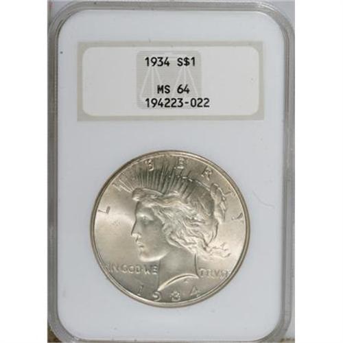 <!-- BEGIN: ICOLLECTOR - EBAY LOT HTML CODE --><style type='text/css'> #icoll_images_thumbnails, #icoll_images_mainimage, #icoll_otherlots { display: none; } div { font-family: arial, verdana, helvetica; } img { border: none; } .icoll_heading_title { background-color: #EFEFFF; color: #000; font-family: arial, verdana, helvetica; font-size: 12pt; font-style: normal; font-weight: bold; } </style><style type='text/css'>@import url(http://www.icollector.com/css/ebay/ebaylot_20070703.css);</style><script language='javascript' type='text/javascript'>function icollfunc_getelement(element_id) { var tmpelement = null; if(document.getElementById) tmpelement = document.getElementById(element_id); if(tmpelement == null) tmpelement = document[element_id]; return tmpelement; }var icollvar_mainpic = null; function icollfunc_initimages() { icollfunc_getelement('mainPicture').style.display = 'none'; icollvar_mainpic = icollfunc_getelement('icoll_images_mainimage'); var body_onload = document.body.attributes['onload']; document.body.setAttribute('onload', (body_onload ? body_onload.nodeValue : '') + 'icollfunc_fixoperaimgbug();'); }function icollfunc_changeimage(imgurl) { if(icollvar_mainpic != null) icollvar_mainpic.src = imgurl; }function icollfunc_fixoperaimgbug() { if(window.opera) { var imgobjs = icollfunc_getelement('icoll_images_thumbnails').getElementsByTagName('img'); for(var i=0; i<imgobjs.length; i++) { var w = imgobjs[i].clientWidth; if(w > 0) imgobjs[i].style.width = w + 'px'; } } }</script><script language='javascript' type='text/javascript'> var useragent = escape(navigator.userAgent); var appname = escape(navigator.appName); var dateobj = new Date(); var datetime = escape(dateobj.getFullYear()+'-'+(dateobj.getMonth()+1)+'-'+dateobj.getDate()+' '+dateobj.getHours()+':'+dateobj.getMinutes()); var referrer = ''; if(document.referrer && document.referrer != null) referrer = escape(document.referrer); new Image().src = 'http://www.icollector.com/stats/ebaylot.ashx?id=7140520&ua='+useragent+'&an='+appname+'&dt='+datetime+'&tz='+dateobj.getTimezoneOffset()+'&re='+referrer;</script><div id='icoll_images'><div id='icoll_images_prev'><a href='http://cgi.liveauctions.ebay.com/ws/eBayISAPI.dll?ViewItem&item=170135059699'><img src='http://www.ha.com/common/proxyImage.php?ebay=445-1202-1-75' alt='' /><img src='http://icollector.com/graphics/ebay_leftarrow.gif' alt='' class='arrow' /></a><div id='icoll_images_prev_info'>Prev Lot</div></div><div id='icoll_images_next'><a href='http://cgi.liveauctions.ebay.com/ws/eBayISAPI.dll?ViewItem&item=170135059717'><img src='http://www.ha.com/common/proxyImage.php?ebay=445-3008-1-75' alt='' /><img src='http://icollector.com/graphics/ebay_rightarrow.gif' alt='' class='arrow' /></a><div id='icoll_images_next_info'>Next Lot</div></div><div id='icoll_images_thumbnails'><a href='http://www.ha.com/common/proxyImage.php?ebay=445-1378-1-75' target='_blank' onmouseover="icollfunc_changeimage('http://www.ha.com/common/proxyImage.php?ebay=445-1378-1-75');"><img src='http://www.ha.com/common/proxyImage.php?ebay=445-1378-1-75' alt='' /></a><a href='http://www.ha.com/common/proxyImage.php?ebay=445-1378-2-75' target='_blank' onmouseover="icollfunc_changeimage('http://www.ha.com/common/proxyImage.php?ebay=445-1378-2-75');"><img src='http://www.ha.com/common/proxyImage.php?ebay=445-1378-2-75' alt='' /></a><div id='icoll_images_thumbnails_info'>Hover thumbnail to view large image below. Click thumbnail to view full image in new window.</div></div><div id='icoll_images_mainimage_container'><img id='icoll_images_mainimage' alt='' src='http://www.ha.com/common/proxyImage.php?ebay=445-1378-1-75'></div></div><script language='javascript' type='text/javascript'>icollfunc_initimages();</script><div id='icoll_description'><B>1934 $1 MS64 NGC.</B></I> NGC Census: (1118/330). PCGS Population (1229/587). Mintage: 954,057. Numismedia Wsl. Price for NGC/PCGS coin in MS64: $360. (#7375)<BR><BR><B>Coin Engraver:</B> Anthony de Francisci<BR><BR><b>Shipping:</b> Coins & Currency (<a target="_blank" href="http://www.heritageauctions.com/common/shipping.php">view shipping information</a>\)</div><div id='icoll_notices'><div class='icoll_heading_left'></div><div class='icoll_heading'><div class='icoll_heading_title'>Notices</div></div><div class='icoll_heading_right'></div><div id='icoll_notices_info'><B>Important notice:</B> Heritage usually auctions material at the rate of 200-250 lots per hour. On some occasions eBay Live bid software or the Internet may not be able to keep up with the pace of the auction. We recommend placing a realistic absentee bid now as insurance to avoid disappointment. Occasionally the auctioneer may eliminate or reject an eBay Live bid, and the auctioneer may also reopen a lot after the close of the eBay live bidding (usually because we missed an audience bid), and may reject your bid even if it shows you as the winning bidder. By bidding via eBay Live, you agree that Heritage may award the lot to another bidder at its sole discretion under the circumstances described above or any other reasonable circumstances. Since eBay bids are not shown to us until we open the lot on the floor, we treat those bids just like floor bids. In most cases the floor responds before the eBay bid is presented to us, due to Internet lag time, so for consistency we have made it a policy that floor bids are always considered first over tie eBay live bids. Also please note that all Heritage lots purchased through eBay Live carry a 20% Buyer's Premium with a $9 minimum Buyer's Premium. Please make sure you read the Terms and Conditions before you bid. This lot is being auctioned in conjunction with a live floor auction by Heritage Auctions. All final auction and invoice information will be supplied by Heritage Auctions, and all other information should be considered preliminary. <BR><BR><B>Winning Notification and Billing:</B> After the FINAL session in this auction is complete, Heritage will send e-mai