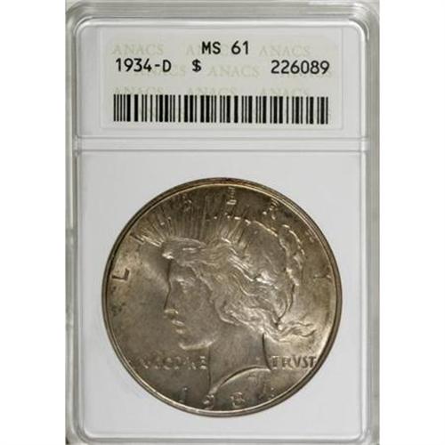 <!-- BEGIN: ICOLLECTOR - EBAY LOT HTML CODE --><style type='text/css'> #icoll_images_thumbnails, #icoll_images_mainimage, #icoll_otherlots { display: none; } div { font-family: arial, verdana, helvetica; } img { border: none; } .icoll_heading_title { background-color: #EFEFFF; color: #000; font-family: arial, verdana, helvetica; font-size: 12pt; font-style: normal; font-weight: bold; } </style><style type='text/css'>@import url(http://www.icollector.com/css/ebay/ebaylot_20070703.css);</style><script language='javascript' type='text/javascript'>function icollfunc_getelement(element_id) { var tmpelement = null; if(document.getElementById) tmpelement = document.getElementById(element_id); if(tmpelement == null) tmpelement = document[element_id]; return tmpelement; }var icollvar_mainpic = null; function icollfunc_initimages() { icollfunc_getelement('mainPicture').style.display = 'none'; icollvar_mainpic = icollfunc_getelement('icoll_images_mainimage'); var body_onload = document.body.attributes['onload']; document.body.setAttribute('onload', (body_onload ? body_onload.nodeValue : '') + 'icollfunc_fixoperaimgbug();'); }function icollfunc_changeimage(imgurl) { if(icollvar_mainpic != null) icollvar_mainpic.src = imgurl; }function icollfunc_fixoperaimgbug() { if(window.opera) { var imgobjs = icollfunc_getelement('icoll_images_thumbnails').getElementsByTagName('img'); for(var i=0; i<imgobjs.length; i++) { var w = imgobjs[i].clientWidth; if(w > 0) imgobjs[i].style.width = w + 'px'; } } }</script><script language='javascript' type='text/javascript'> var useragent = escape(navigator.userAgent); var appname = escape(navigator.appName); var dateobj = new Date(); var datetime = escape(dateobj.getFullYear()+'-'+(dateobj.getMonth()+1)+'-'+dateobj.getDate()+' '+dateobj.getHours()+':'+dateobj.getMinutes()); var referrer = ''; if(document.referrer && document.referrer != null) referrer = escape(document.referrer); new Image().src = 'http://www.icollector.com/stats/ebaylot.ashx?id=7140522&ua='+useragent+'&an='+appname+'&dt='+datetime+'&tz='+dateobj.getTimezoneOffset()+'&re='+referrer;</script><div id='icoll_images'><div id='icoll_images_prev'><a href='http://cgi.liveauctions.ebay.com/ws/eBayISAPI.dll?ViewItem&item=170135059717'><img src='http://www.ha.com/common/proxyImage.php?ebay=445-3008-1-75' alt='' /><img src='http://icollector.com/graphics/ebay_leftarrow.gif' alt='' class='arrow' /></a><div id='icoll_images_prev_info'>Prev Lot</div></div><div id='icoll_images_next'><a href='http://cgi.liveauctions.ebay.com/ws/eBayISAPI.dll?ViewItem&item=170135059729'><img src='http://www.ha.com/common/proxyImage.php?ebay=445-154022-1-75' alt='' /><img src='http://icollector.com/graphics/ebay_rightarrow.gif' alt='' class='arrow' /></a><div id='icoll_images_next_info'>Next Lot</div></div><div id='icoll_images_thumbnails'><a href='http://www.ha.com/common/proxyImage.php?ebay=445-154035-1-75' target='_blank' onmouseover="icollfunc_changeimage('http://www.ha.com/common/proxyImage.php?ebay=445-154035-1-75');"><img src='http://www.ha.com/common/proxyImage.php?ebay=445-154035-1-75' alt='' /></a><a href='http://www.ha.com/common/proxyImage.php?ebay=445-154035-2-75' target='_blank' onmouseover="icollfunc_changeimage('http://www.ha.com/common/proxyImage.php?ebay=445-154035-2-75');"><img src='http://www.ha.com/common/proxyImage.php?ebay=445-154035-2-75' alt='' /></a><div id='icoll_images_thumbnails_info'>Hover thumbnail to view large image below. Click thumbnail to view full image in new window.</div></div><div id='icoll_images_mainimage_container'><img id='icoll_images_mainimage' alt='' src='http://www.ha.com/common/proxyImage.php?ebay=445-154035-1-75'></div></div><script language='javascript' type='text/javascript'>icollfunc_initimages();</script><div id='icoll_description'><B>1934-D $1 MS61 ANACS.</B></I> NGC Census: (215/2355). PCGS Population (144/3142). Mintage: 1,569,500. Numismedia Wsl. Price for NGC/PCGS coin in MS61: $96. (#7376)<BR><BR><B>Coin Engraver:</B> Anthony de Francisci<BR><BR><b>Shipping:</b> Coins & Currency (<a target="_blank" href="http://www.heritageauctions.com/common/shipping.php">view shipping information</a>\)</div><div id='icoll_notices'><div class='icoll_heading_left'></div><div class='icoll_heading'><div class='icoll_heading_title'>Notices</div></div><div class='icoll_heading_right'></div><div id='icoll_notices_info'><B>Important notice:</B> Heritage usually auctions material at the rate of 200-250 lots per hour. On some occasions eBay Live bid software or the Internet may not be able to keep up with the pace of the auction. We recommend placing a realistic absentee bid now as insurance to avoid disappointment. Occasionally the auctioneer may eliminate or reject an eBay Live bid, and the auctioneer may also reopen a lot after the close of the eBay live bidding (usually because we missed an audience bid), and may reject your bid even if it shows you as the winning bidder. By bidding via eBay Live, you agree that Heritage may award the lot to another bidder at its sole discretion under the circumstances described above or any other reasonable circumstances. Since eBay bids are not shown to us until we open the lot on the floor, we treat those bids just like floor bids. In most cases the floor responds before the eBay bid is presented to us, due to Internet lag time, so for consistency we have made it a policy that floor bids are always considered first over tie eBay live bids. Also please note that all Heritage lots purchased through eBay Live carry a 20% Buyer's Premium with a $9 minimum Buyer's Premium. Please make sure you read the Terms and Conditions before you bid. This lot is being auctioned in conjunction with a live floor auction by Heritage Auctions. All final auction and invoice information will be supplied by Heritage Auctions, and all other information should be considered preliminary. <BR><BR><B>Winning Notification and Billing:</B> After the FINAL session in this auction is complete, Her